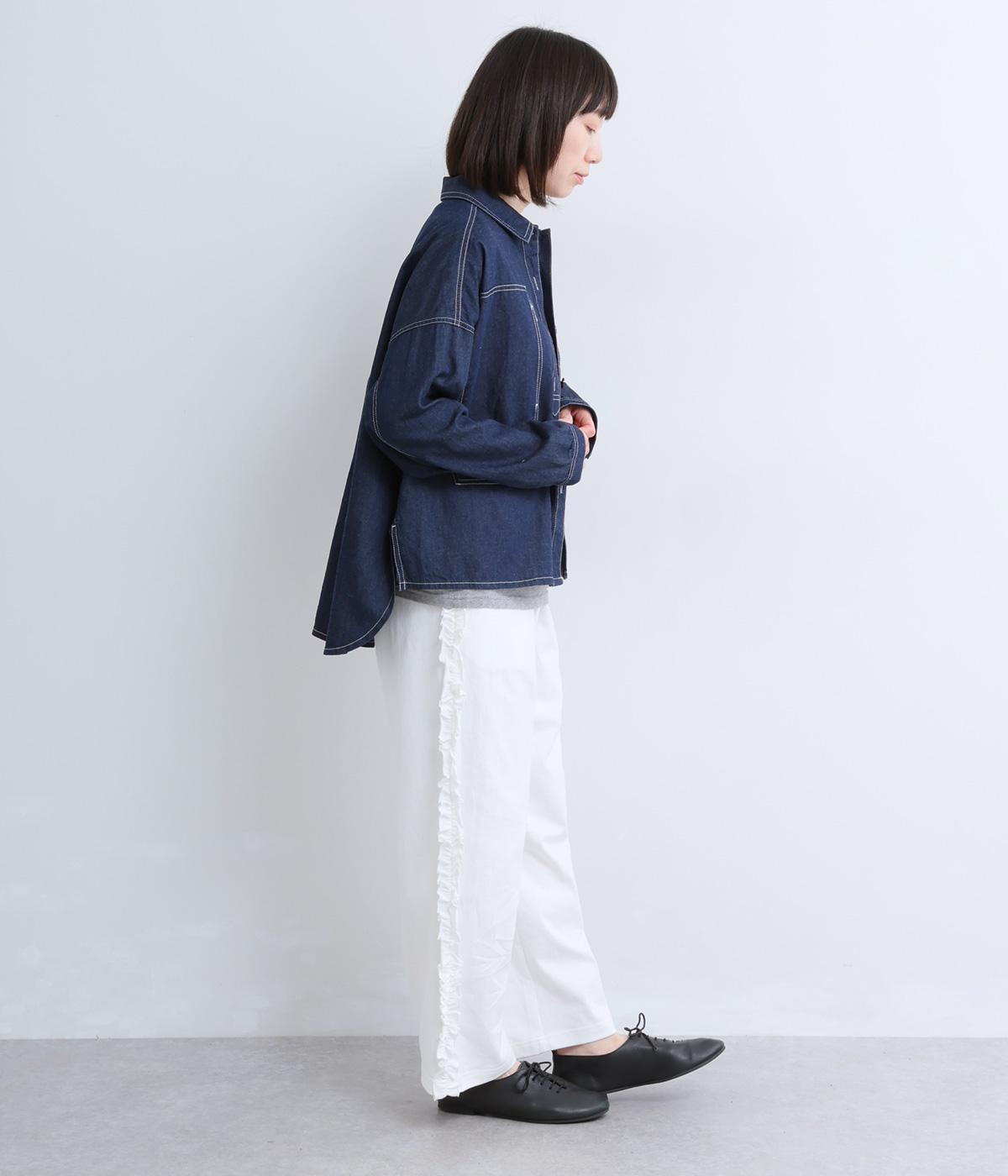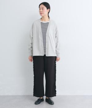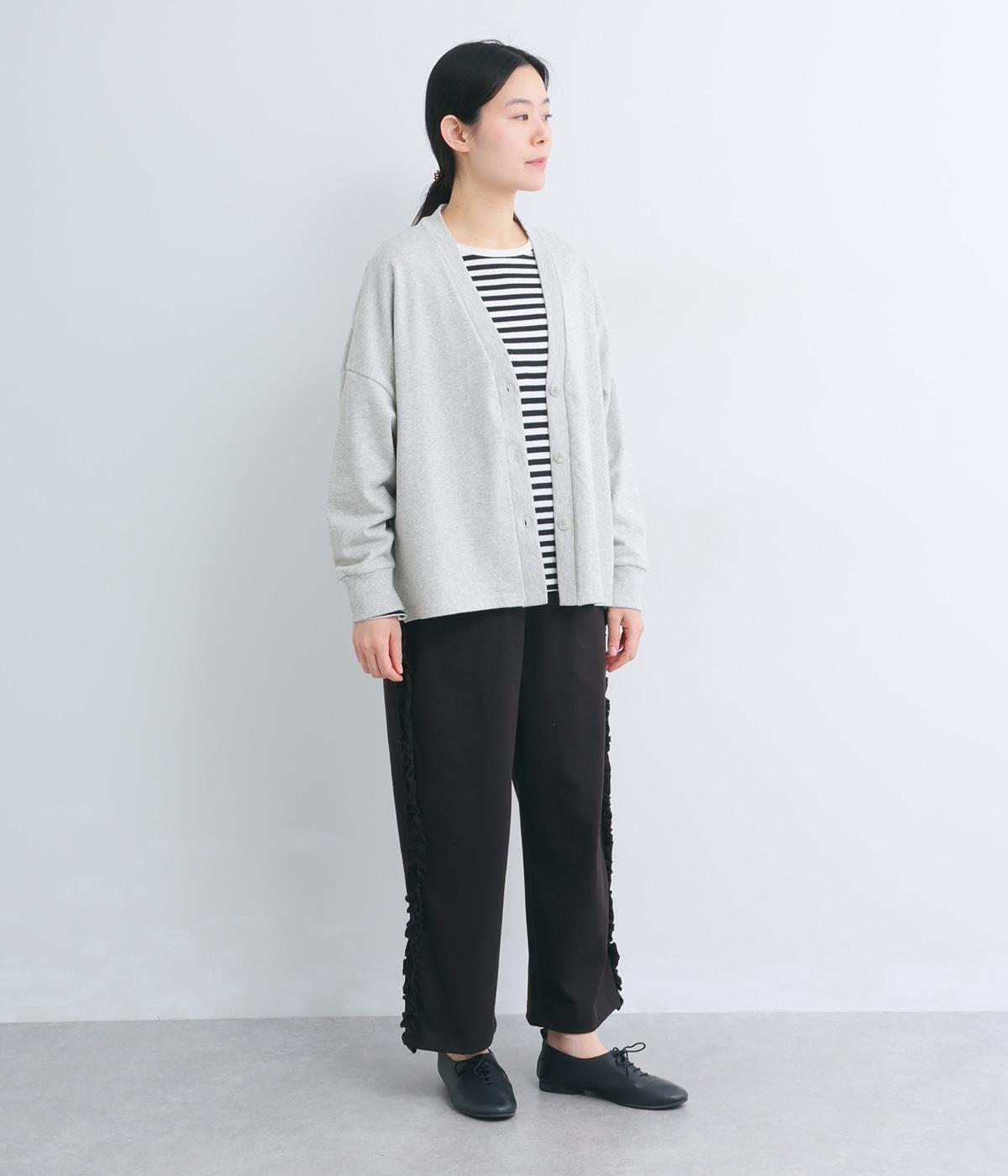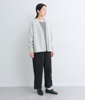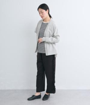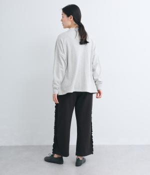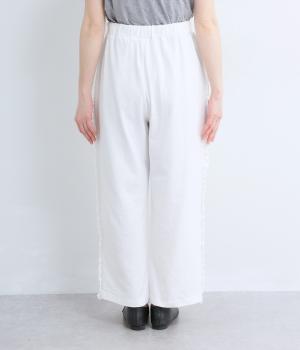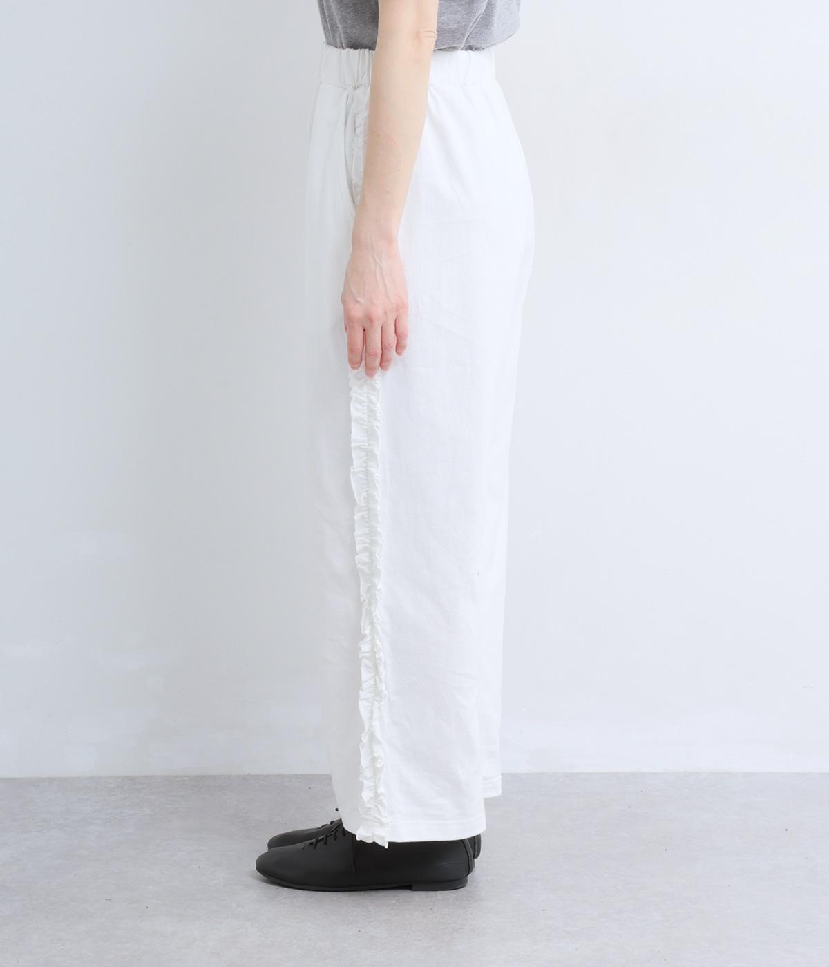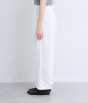 リラックスムード漂うカットソーパンツのサイドにフリルをあしらって華やかなアイテムにアップデート。甘さとカジュアルさのバランスがちょうどよく取り入れやすい仕上がり。ウエストはフィット感のいい総平ゴムに内紐入り。