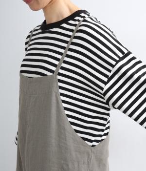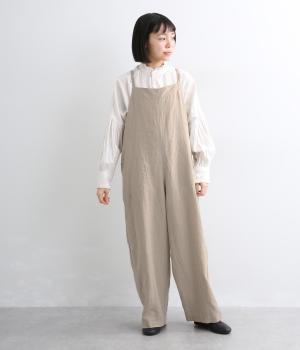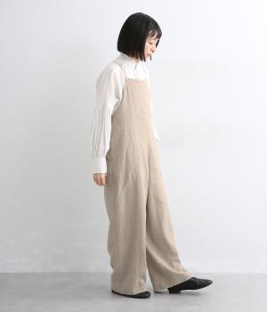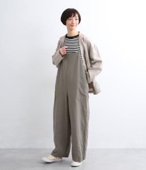 フレンチリネンならではのドライタッチな清涼感があじわえます。ナチュラルなシワ感がこなれた印象で、着るほどになじみ深みも増していく素材です。