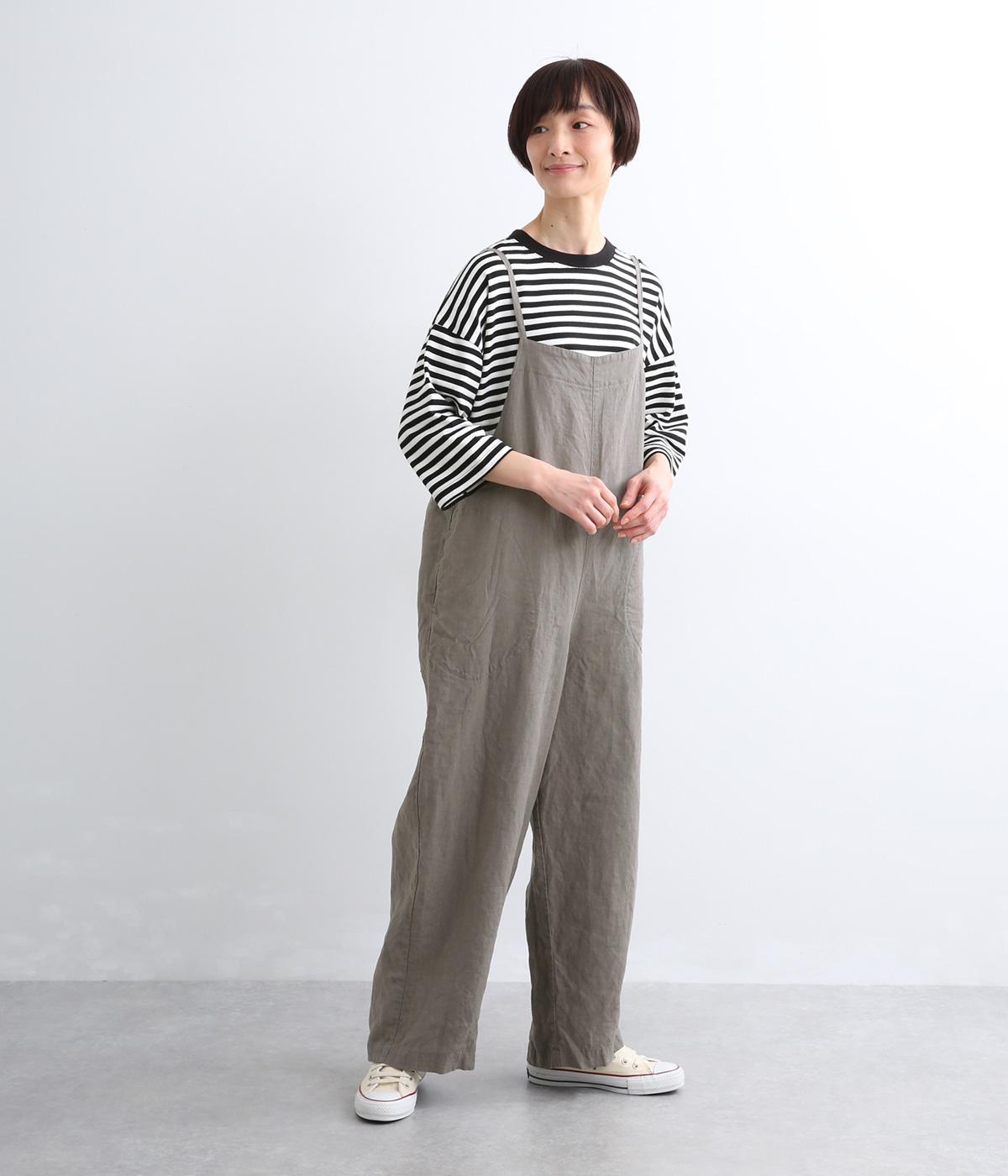 長さ調整もきく後ろリボンがさり気なく女性らしさを足したサロペットパンツ。ゆったりとしていてあきも広いので、さまざまなトップス合わせがたのしめます。素材感や細ストラップがルーズな印象にならず、大人のこなれスタイルに。
