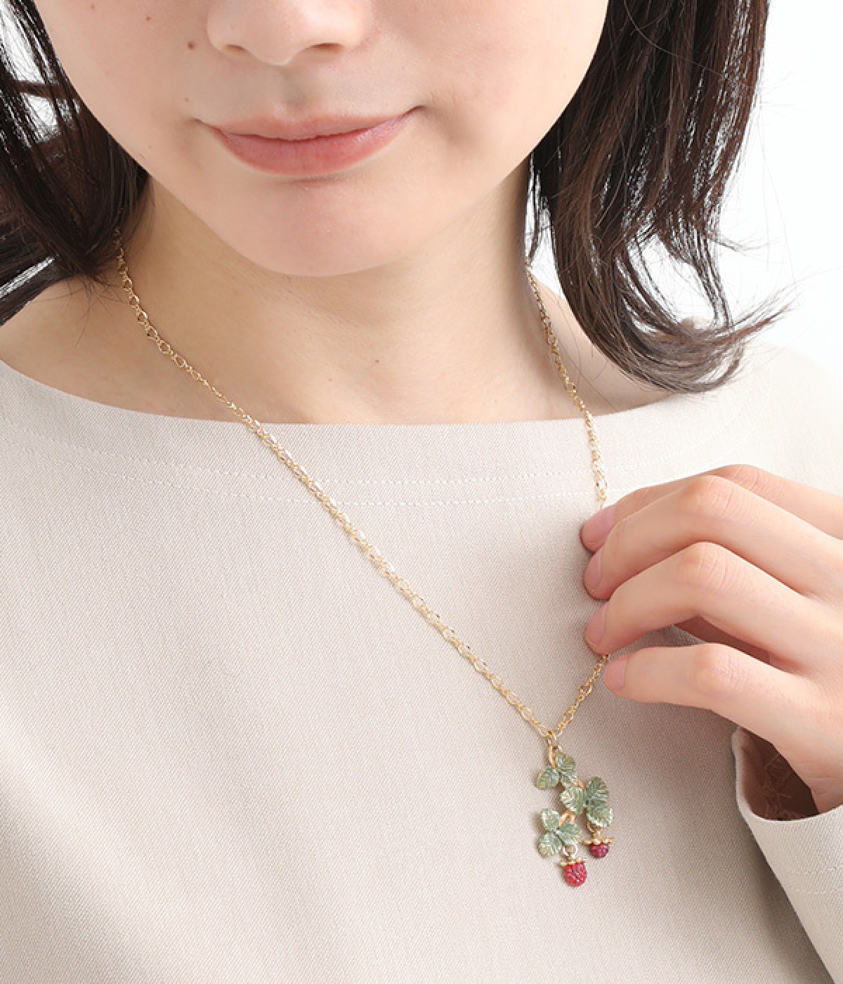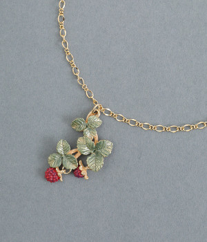 瑞々しい真っ赤な実が魅力的なワイルドベリーのネックレスです。赤い果実がじっくり見るほど彩り豊かな表情を覗かせ、さまざまな角度からのディテールを楽しめます。ワイルドストロベリーの花言葉は「尊重と愛情」、「幸福な家庭」、「無邪気」。大切な人に思いを込めた贈り物としてもおすすめです。