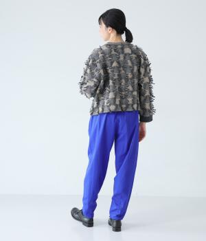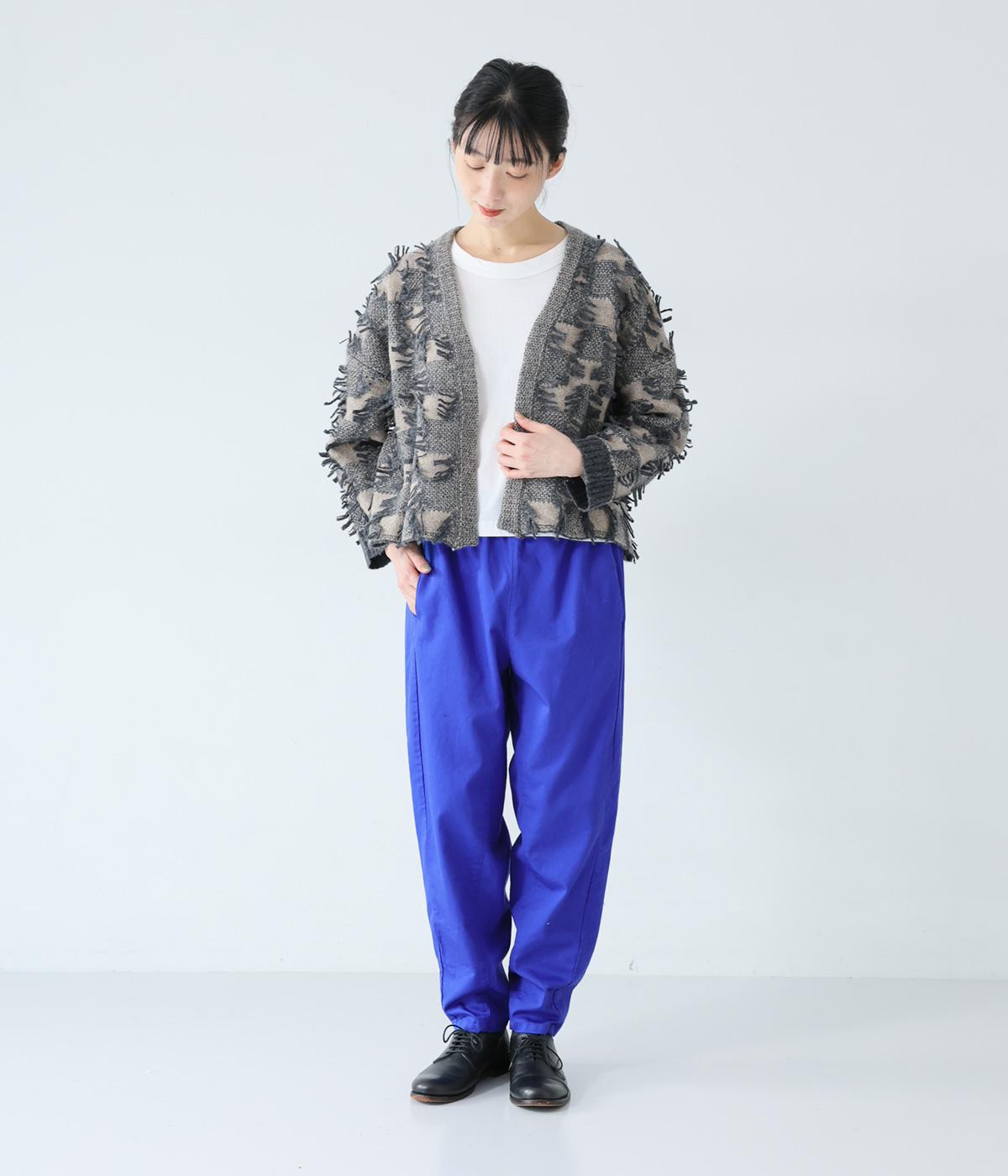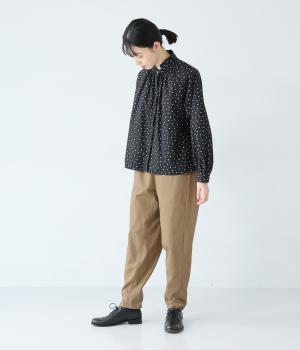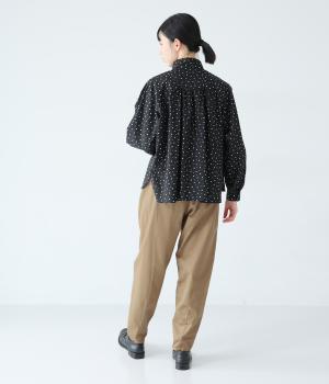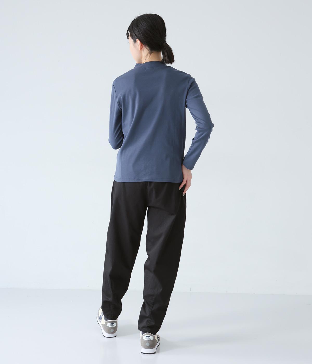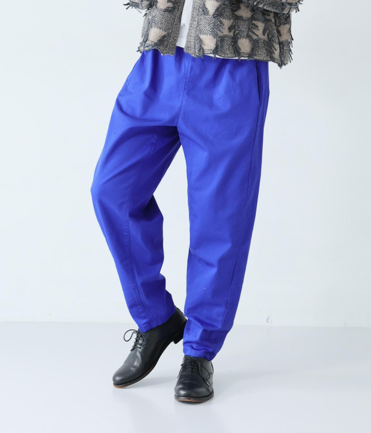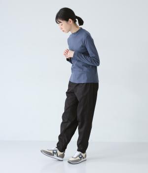 気になるお尻や太ももまわりにゆとりを持たせ、裾に向かって細くしたテーパードシルエットが魅力。サイドの切り替えラインを前寄りにして、脚のラインをすっきりと見せています。ウエストはイージーなはき心地を叶える総ゴム仕様。内側の紐でフィット感の調整も可能です。