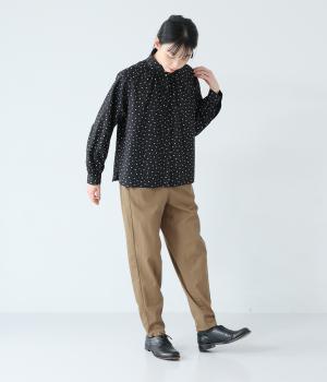 コットンならではの素朴な風合いがたのしめる、大人のカジュアルスタイルにぴったりな生地です。軽くさらりとした肌触りで、季節を問わずに快適に着用できます。
