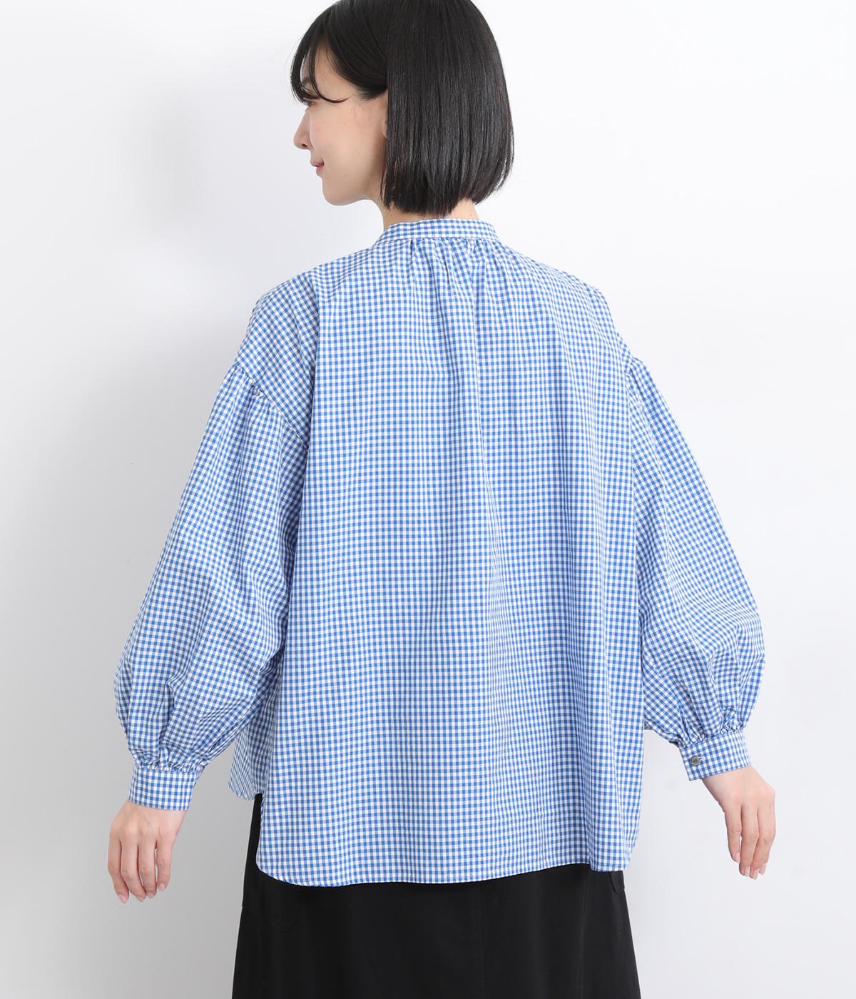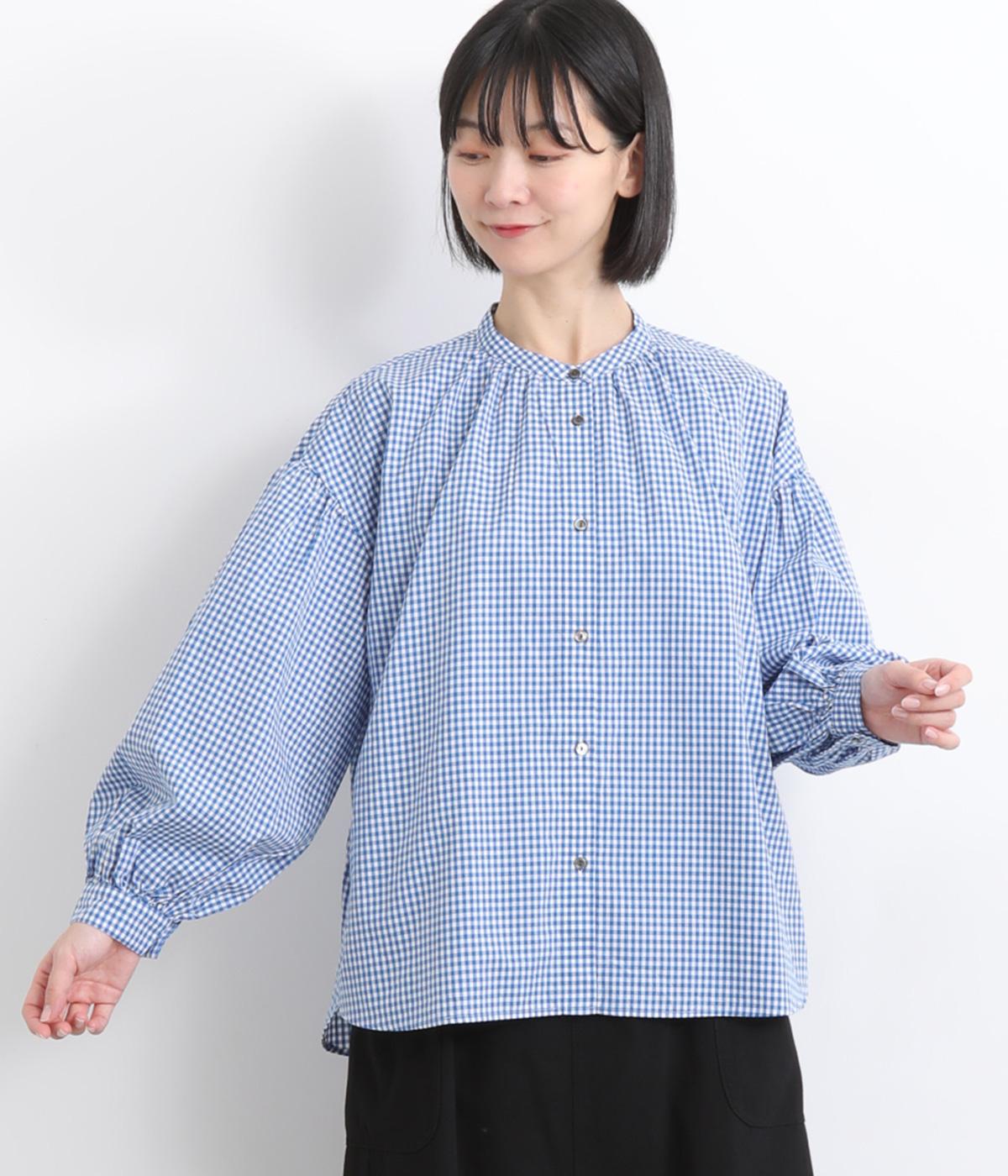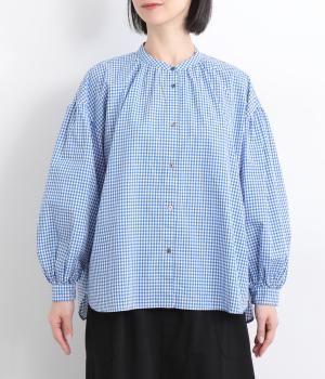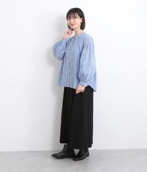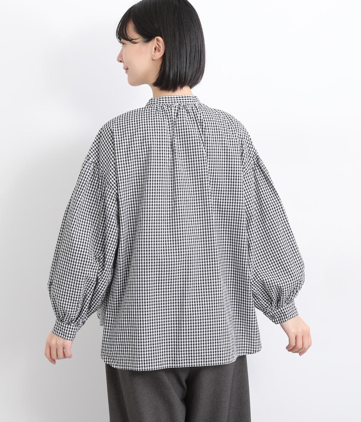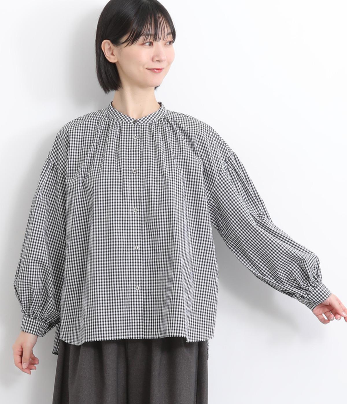大人かわいい雰囲気のギンガムチェックシャツ。ふんわりした袖が女性らしいシルエットを描きます。ゆったりした身幅にバンドカラーで顔まわりはすっきりと仕上げました。程よい丈感でさまざまなボトムスと好相性です。