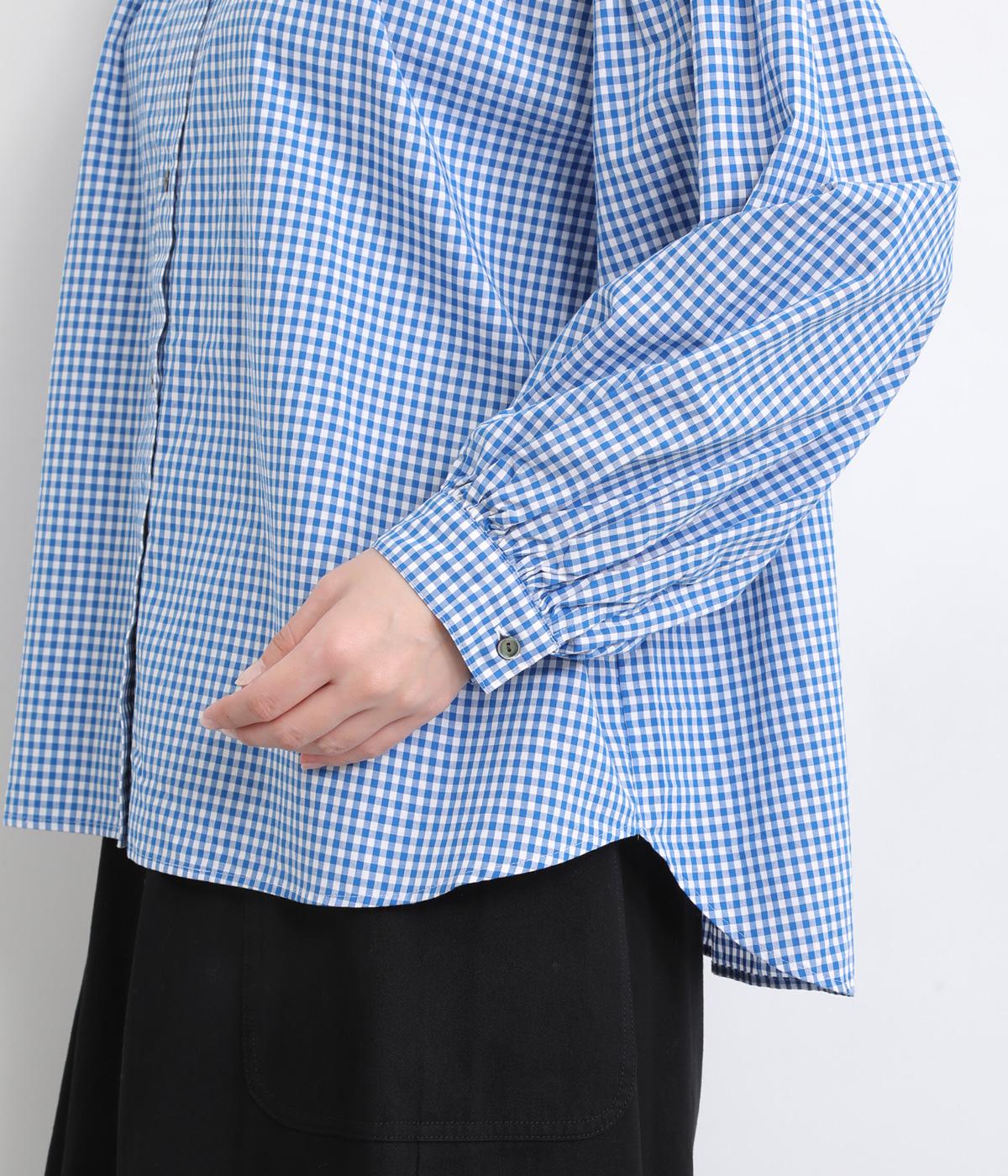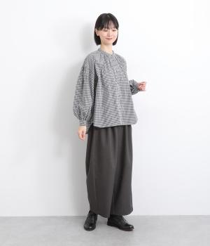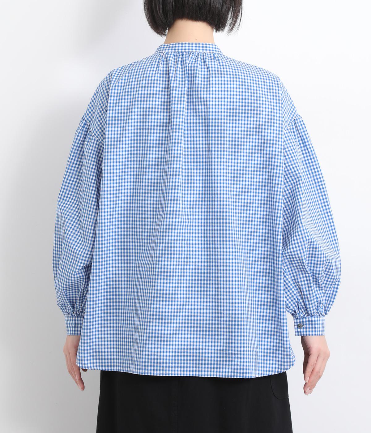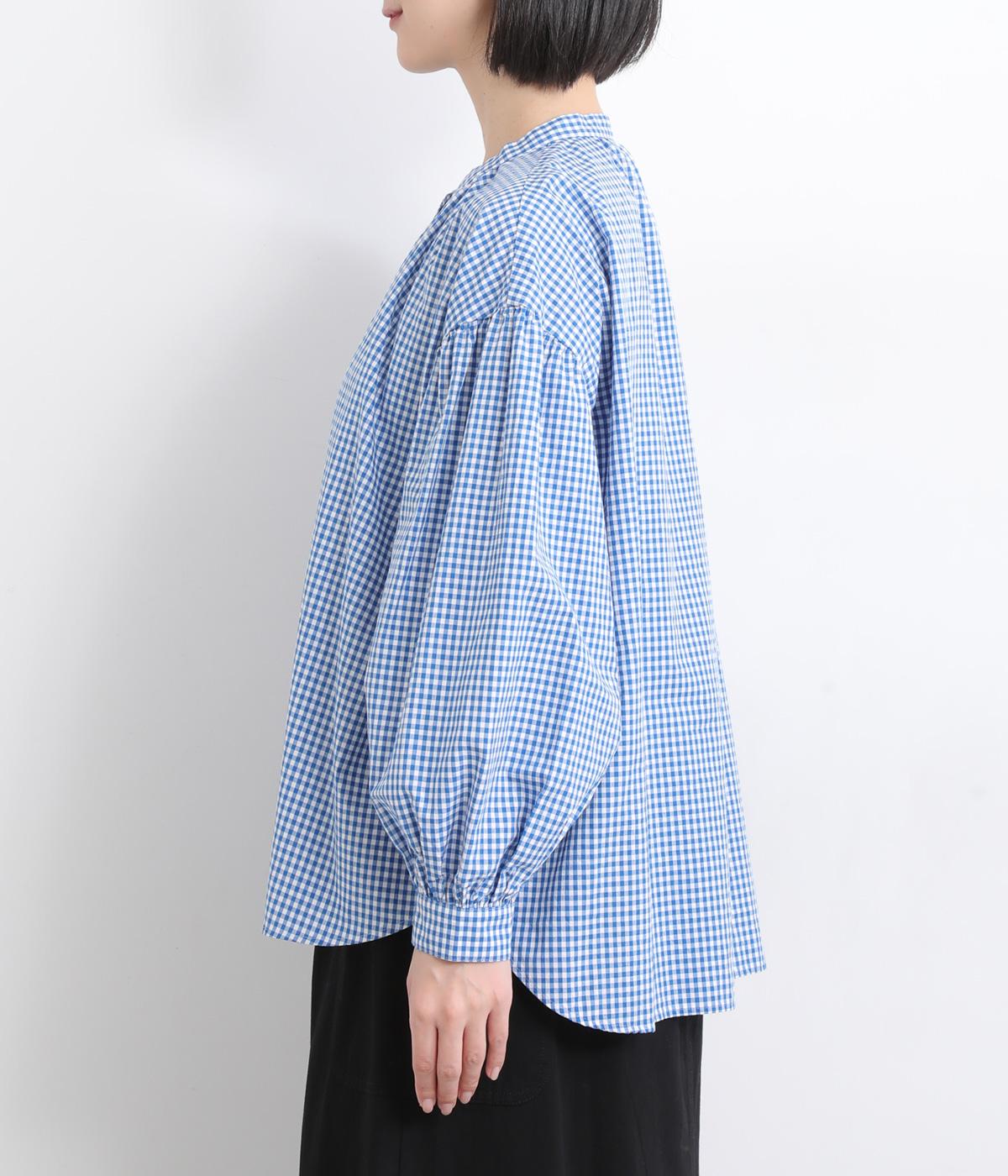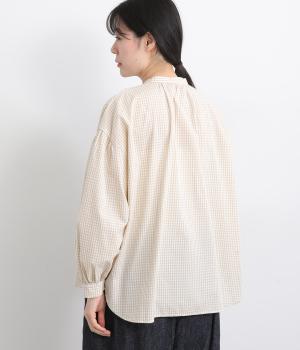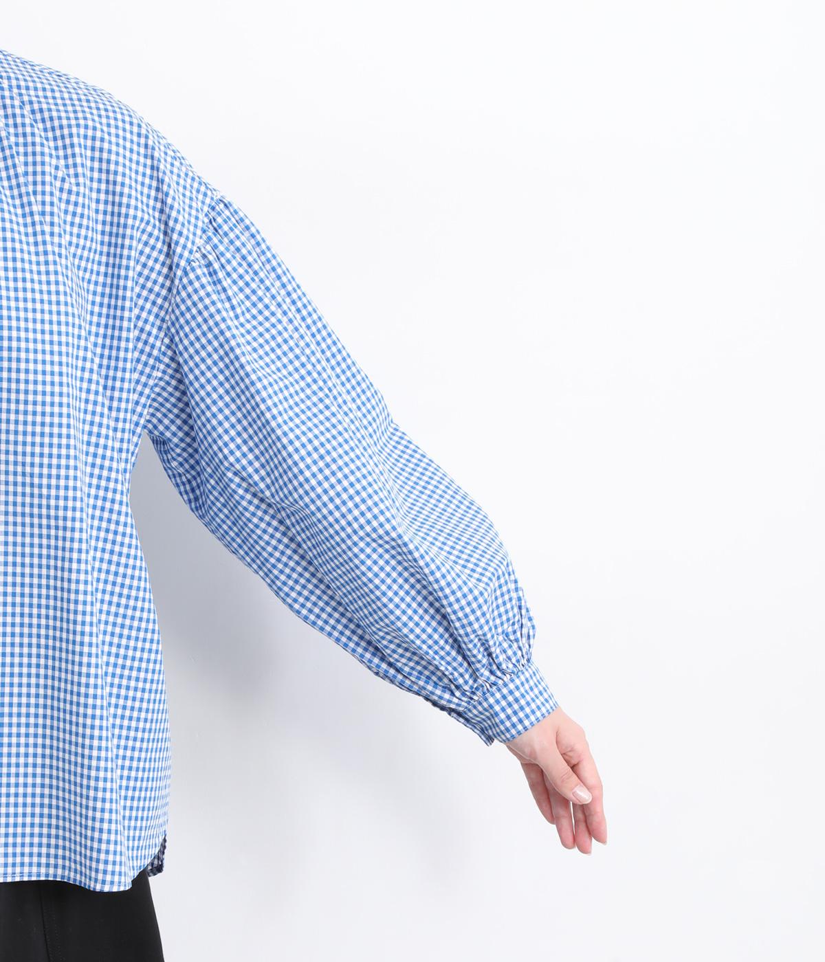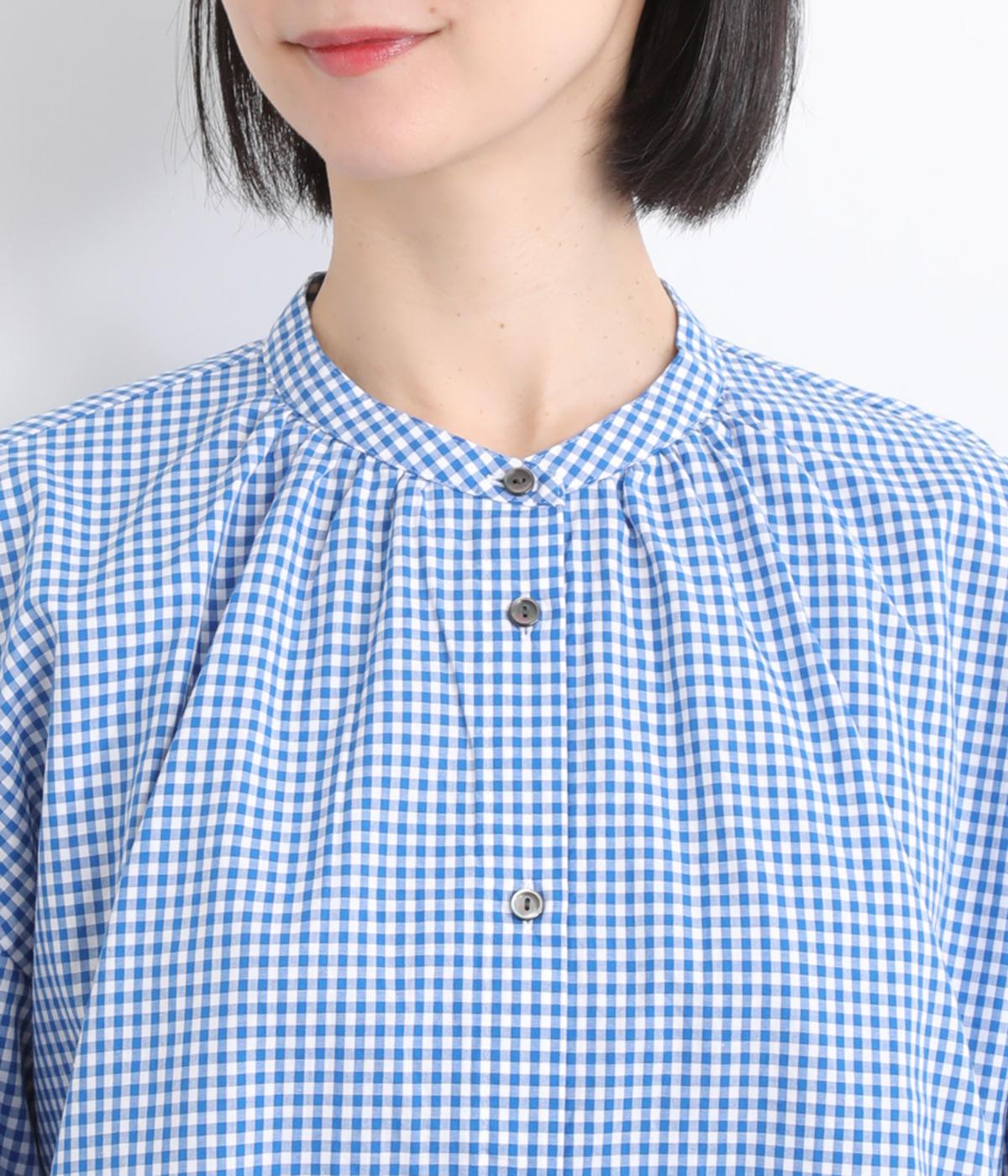 大人かわいい雰囲気のギンガムチェックシャツ。ふんわりした袖が女性らしいシルエットを描きます。ゆったりした身幅にバンドカラーで顔まわりはすっきりと仕上げました。程よい丈感でさまざまなボトムスと好相性です。