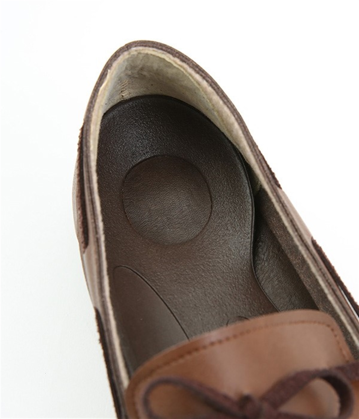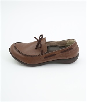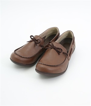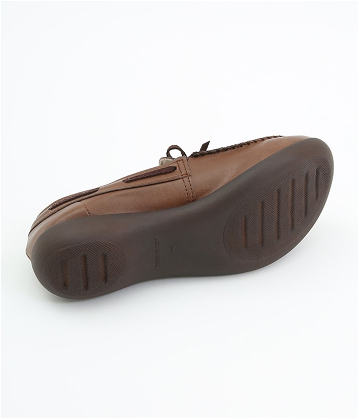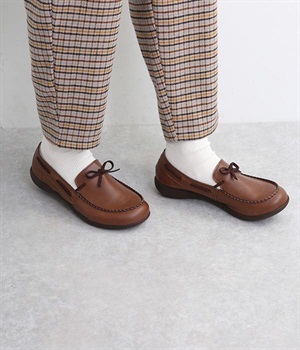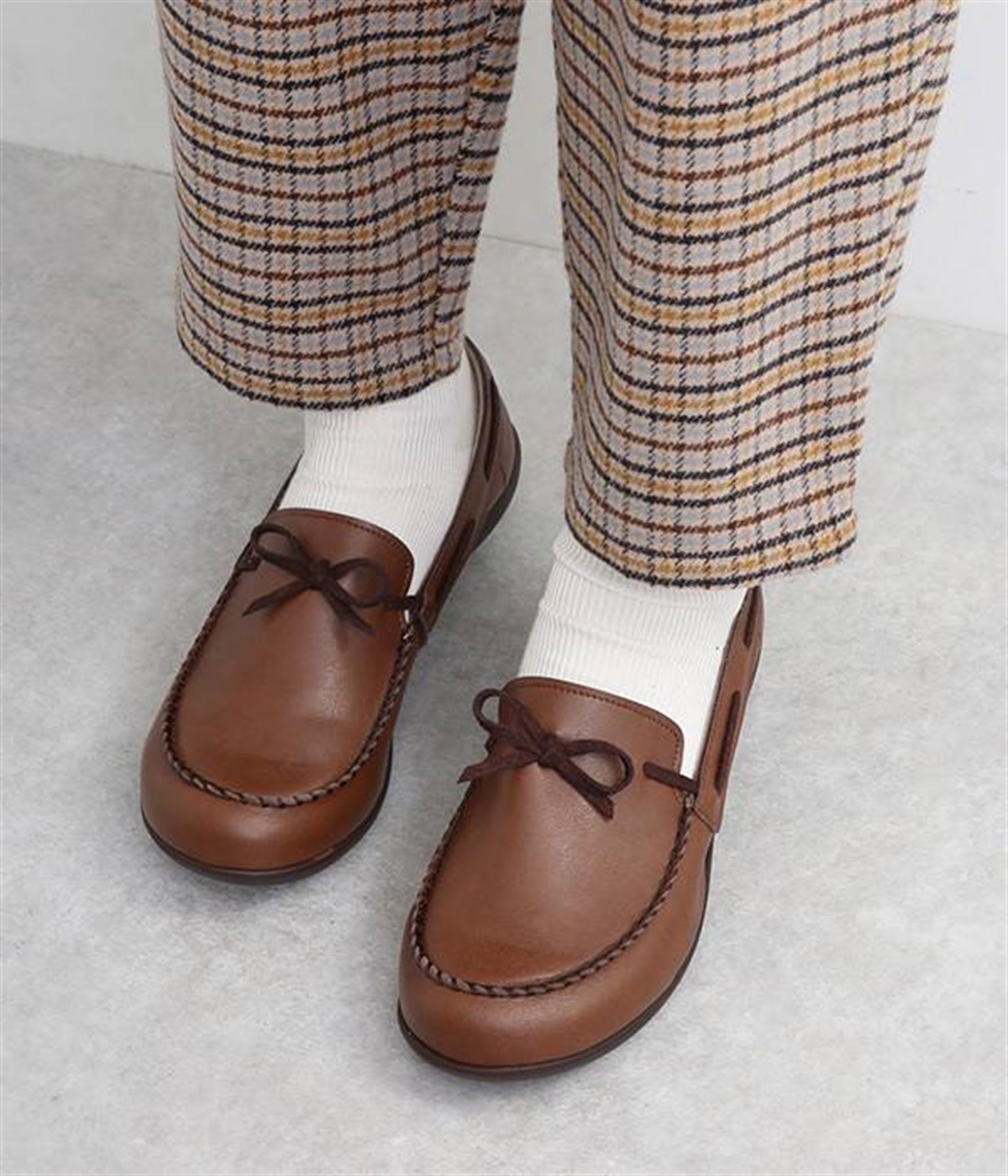 飾りリボンとつま先に走るステッチがデザインポイントのスリッポンです。凹凸のあるインソールが足裏にフィットして歩きやすく、疲れも軽減。ころんと丸いフォルムなので、つま先までゆったりと心地よく履けるのがうれしいポイントです。アウトソールには細かな溝を入れて滑りにくいようにこだわりました。きれいめパンツスタイルやカジュアルなワンピースなど、楽しめるコーディネートも多彩です。