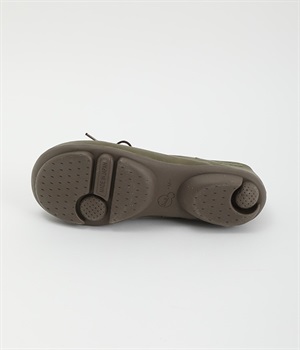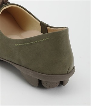 かかとのステッチ、女性らしい華奢なリボンがデザインのアクセントになるパンプスです。足への負担や疲れを軽減してくれるこだわりのインソールは、足裏の凹凸に合わせて作られているので履き心地がアップするだけでなく、足裏全体を使って支えるので歩行時の負担を減らし、真ん中の2つの指圧ボールが足裏を心地よく刺激してくれます。取り外し可能で水洗いでき、抗菌防臭素材を練り込んでいるので菌の繁殖を抑えて気になる匂い対策も安心です。ツンと反り上がったつま先は、裏側によりクッション性を高めるために2つのサポートボールを配置。ほんのわずかな力を加えるだけで、自然とかかとが浮き上がるのが特徴です。
