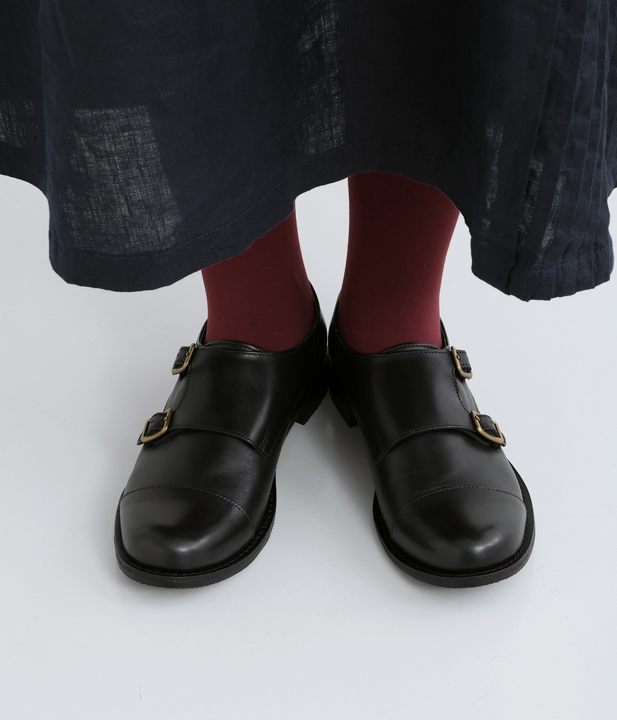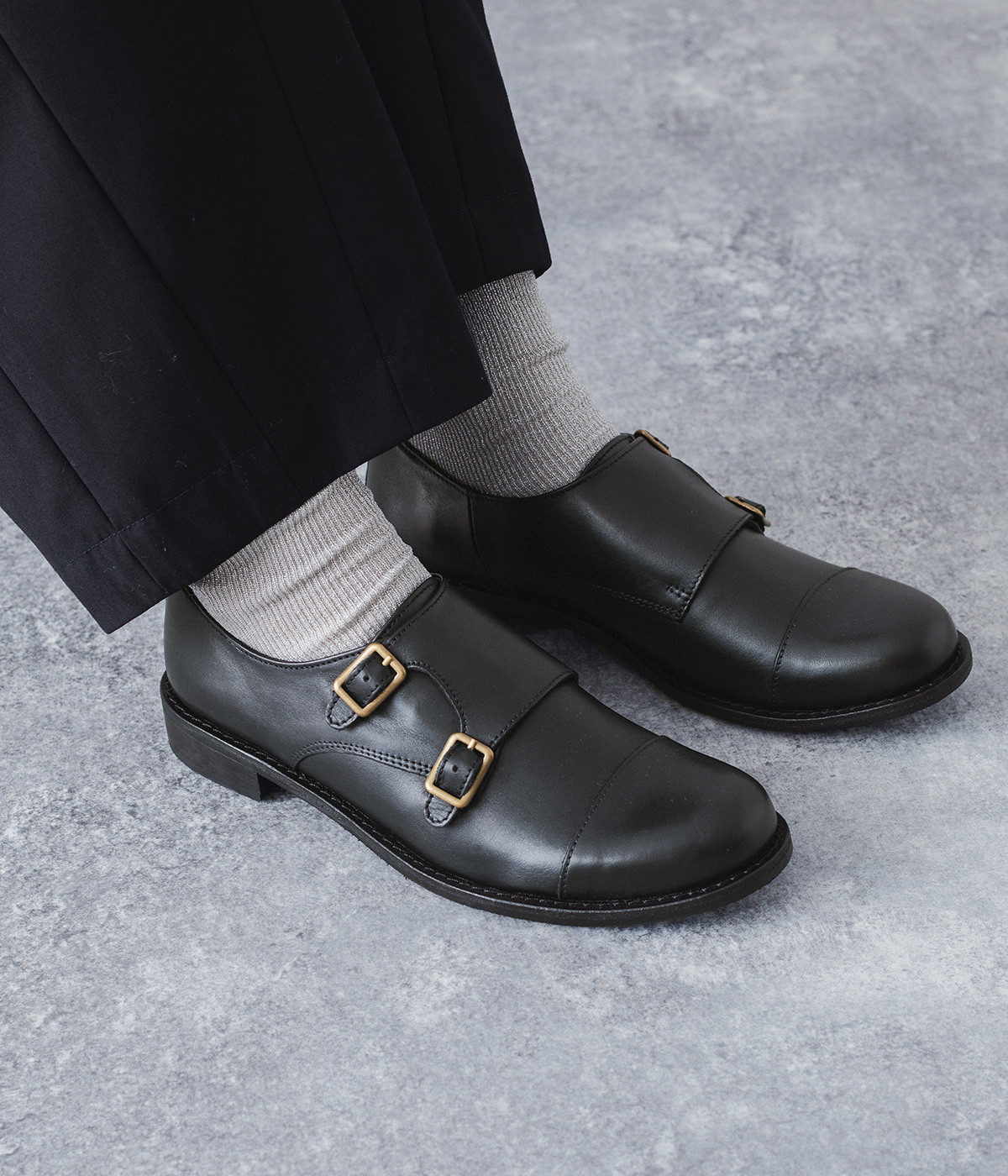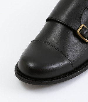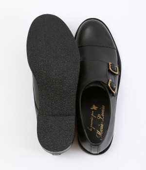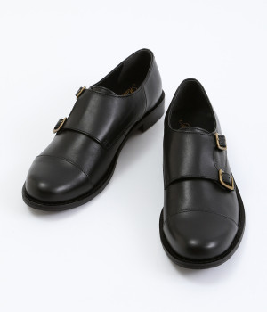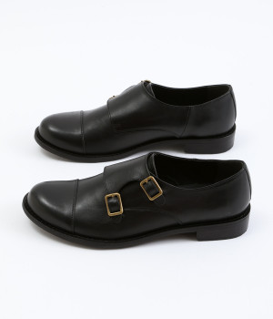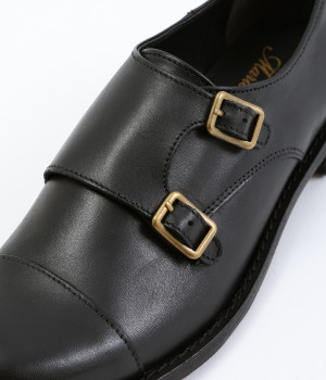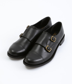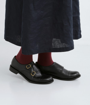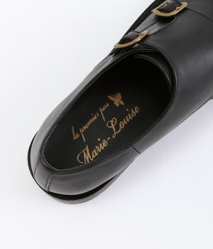 「Marie-Louise」で人気の高いダブルモンクストラップのシューズです。ソフトで上質感のあるアッパーレザーにマットな輝きを放つアンティークゴールドの金具がポイント。低めのヒールで歩きやすく、合わせるアイテムによってマニッシュなスタイルはもちろん、大人かわいい雰囲気にもぴったりとマッチ。一足あると重宝する定番アイテムです。