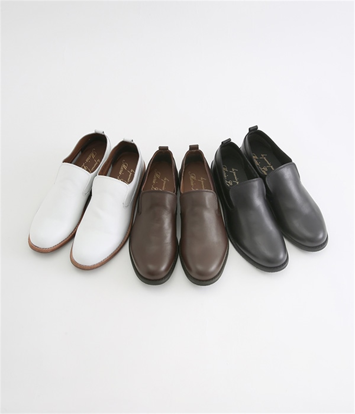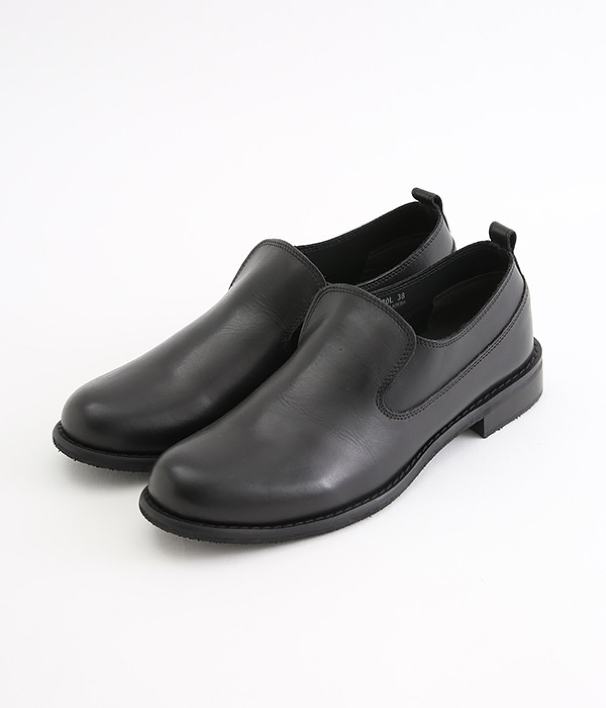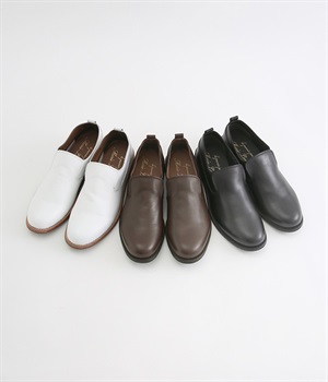 はき口のデザインがポイントのスリッポンシューズ。シンプルで洗練されたルックスで、幅広いコーディネートにマッチします。甲部分にはゴムが隠れているので、着脱がスムーズ。フラットタイプなので足が疲れにくく、クッション性のあるインソールで歩行時の負担を軽減してくれます。カジュアルにもきれいめな装いにも使える一足です。