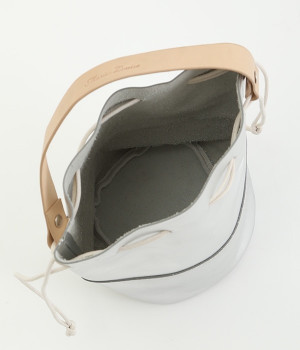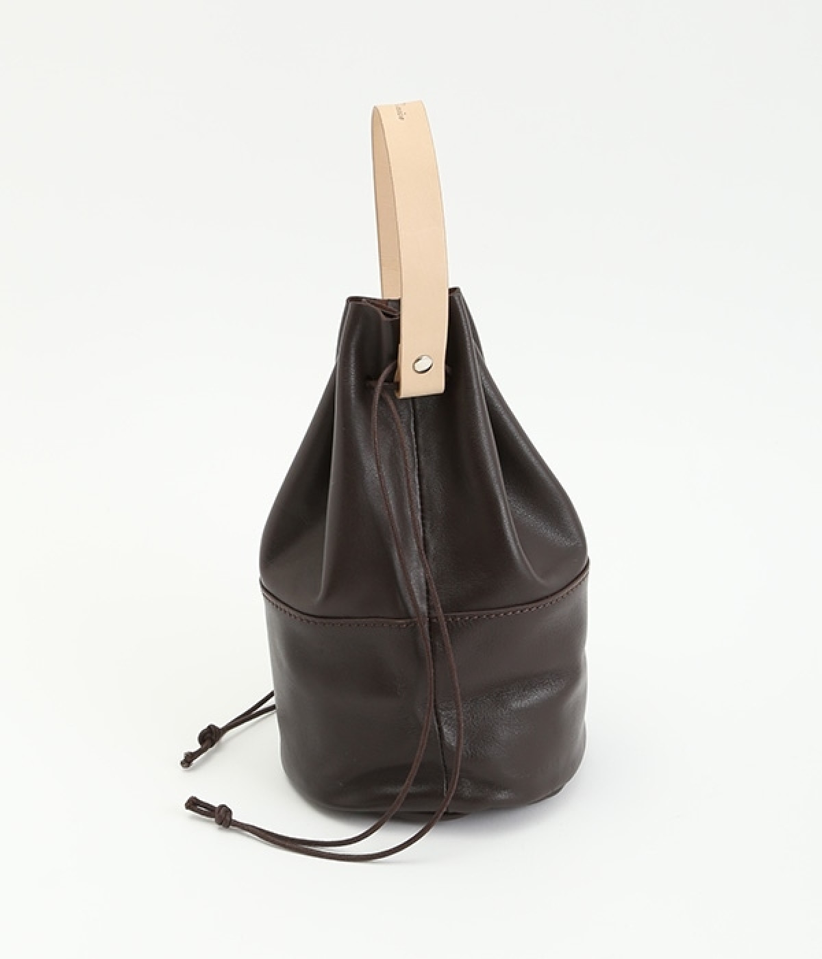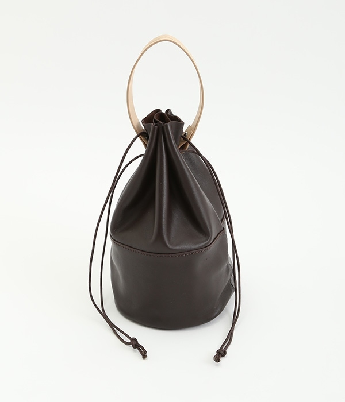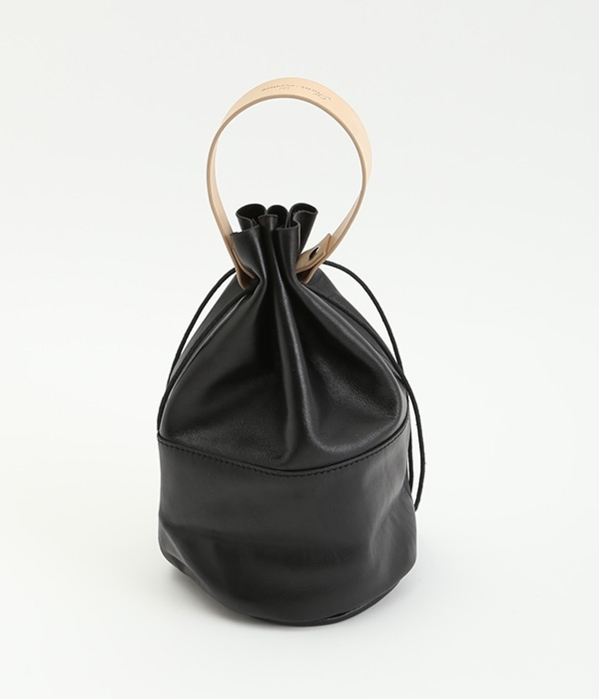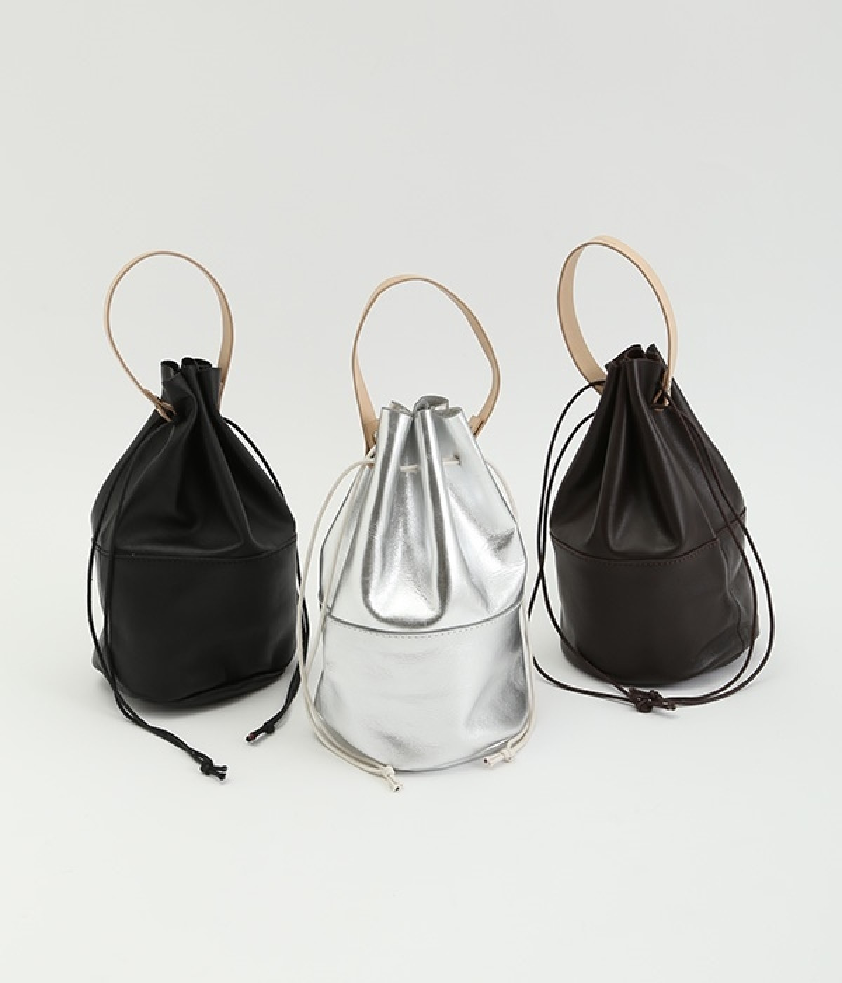 人気の巾着バッグのレース部分に、取り外し可能なレザーのハンドルが付属したバッグです。ハンドルを付けることによって持ちやすくなり、大人っぽいデザインポイントに。ころんとしたシルエットがコーディネートのアクセントにもなります。マチがあるので、コンパクトながら収納力も◎。