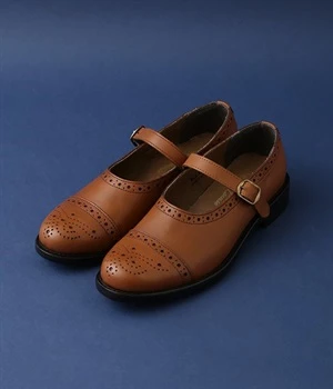 クラシカルで落ち着いた雰囲気が漂うメダリオンデザインのシューズ。三段階に調節ができるストラップベルトが備わり、厚手のソックスやタイツを合わせるときにも柔軟に対応します。普段のスタイリングに取り入れやすいローヒールタイプもうれしい。はく回数を重ねるごとに足になじんでいく牛革を使用しています。かわいらしい小花柄のワンピースにも、シャープなテーパードパンツにもよく似合う一足です。