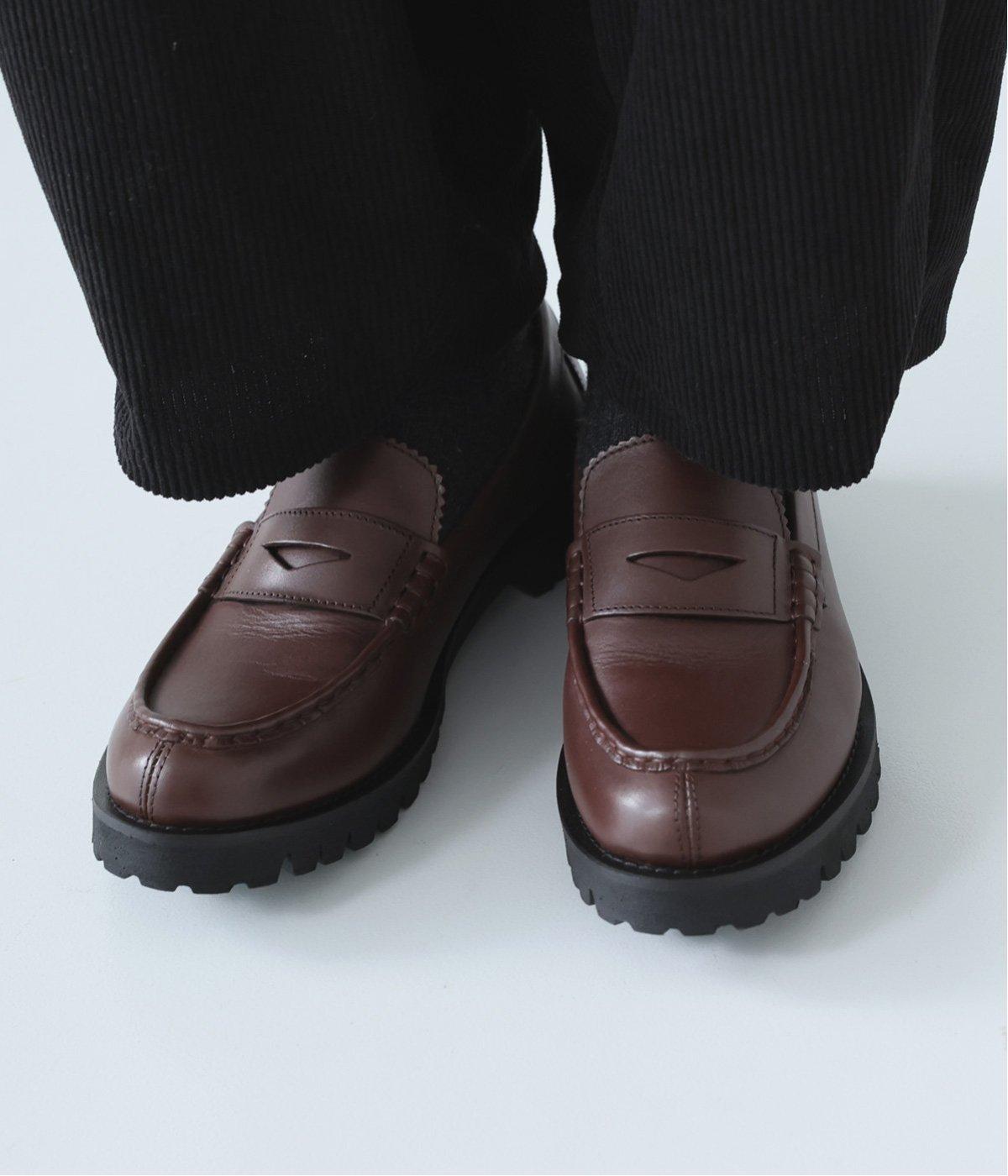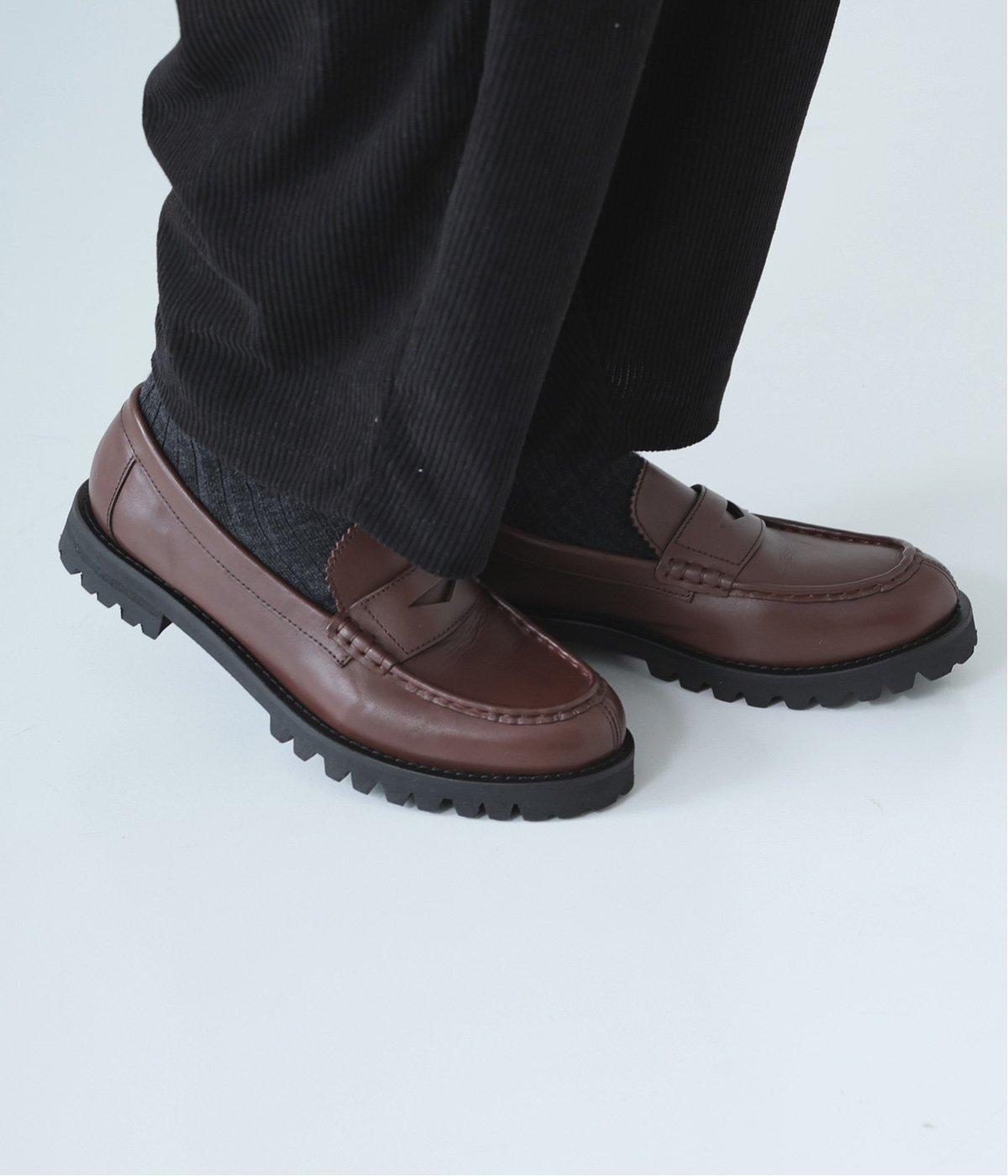 ベーシックなローファーにほどよくエッジのきいたタンクソールを合わせ、ファッションムードを高めました。さまざまなテイストに合わせやすい汎用性の高い一足です。快適なはき心地を叶えてくれるクッション性のあるインソールも◎。