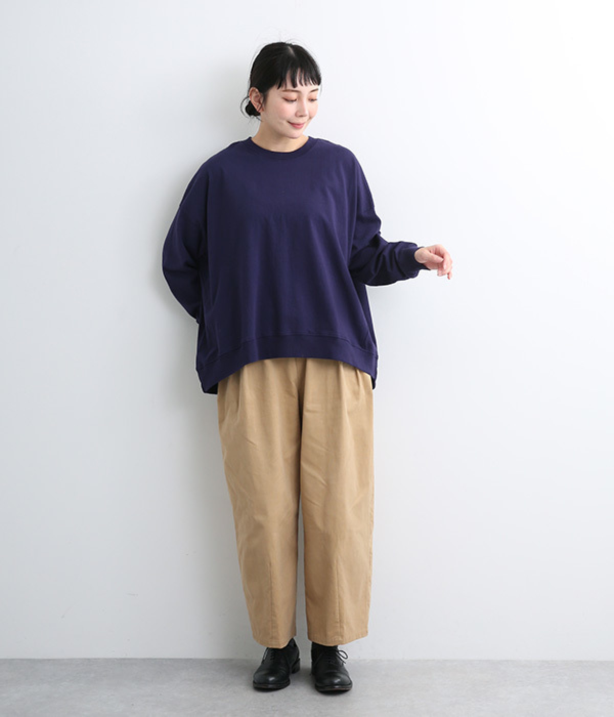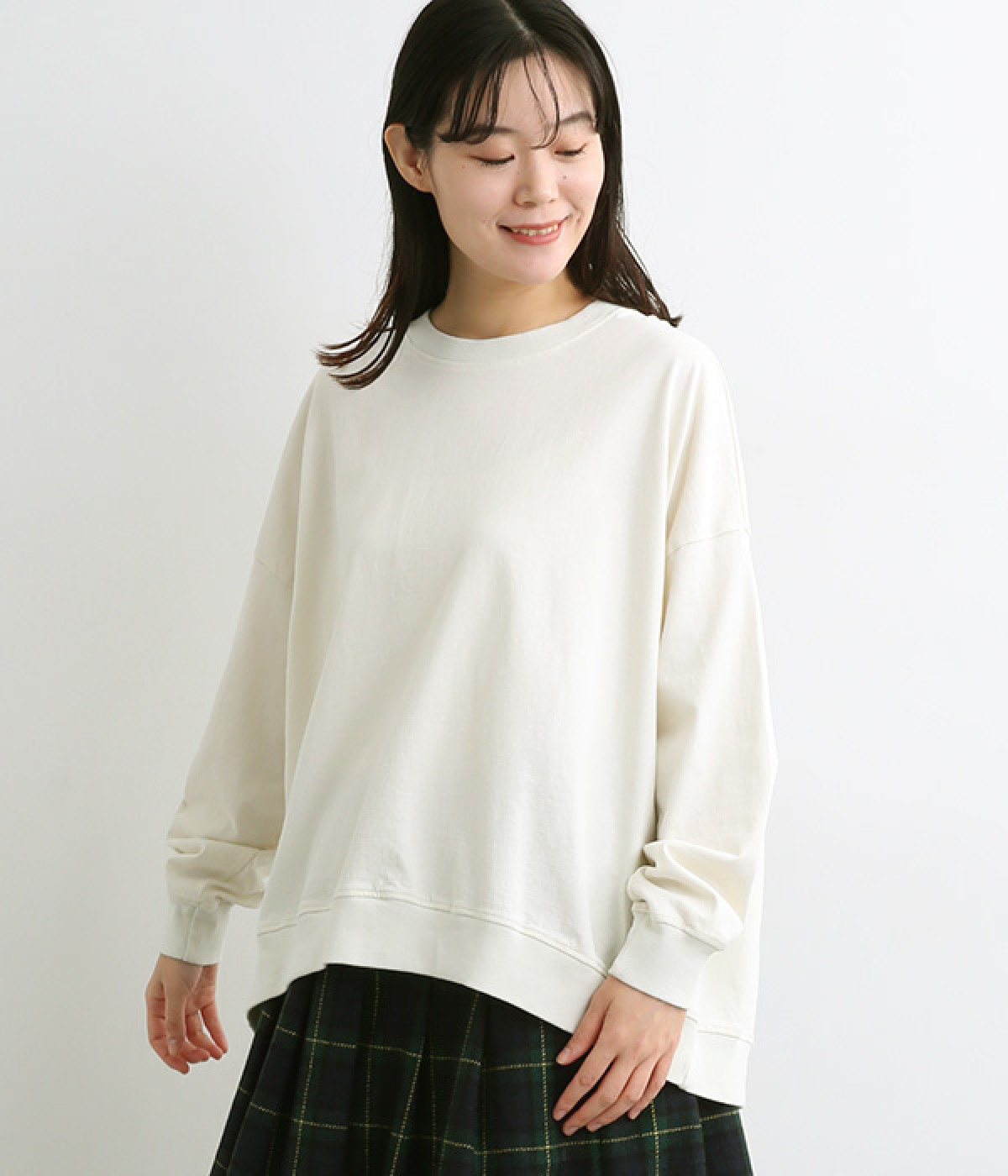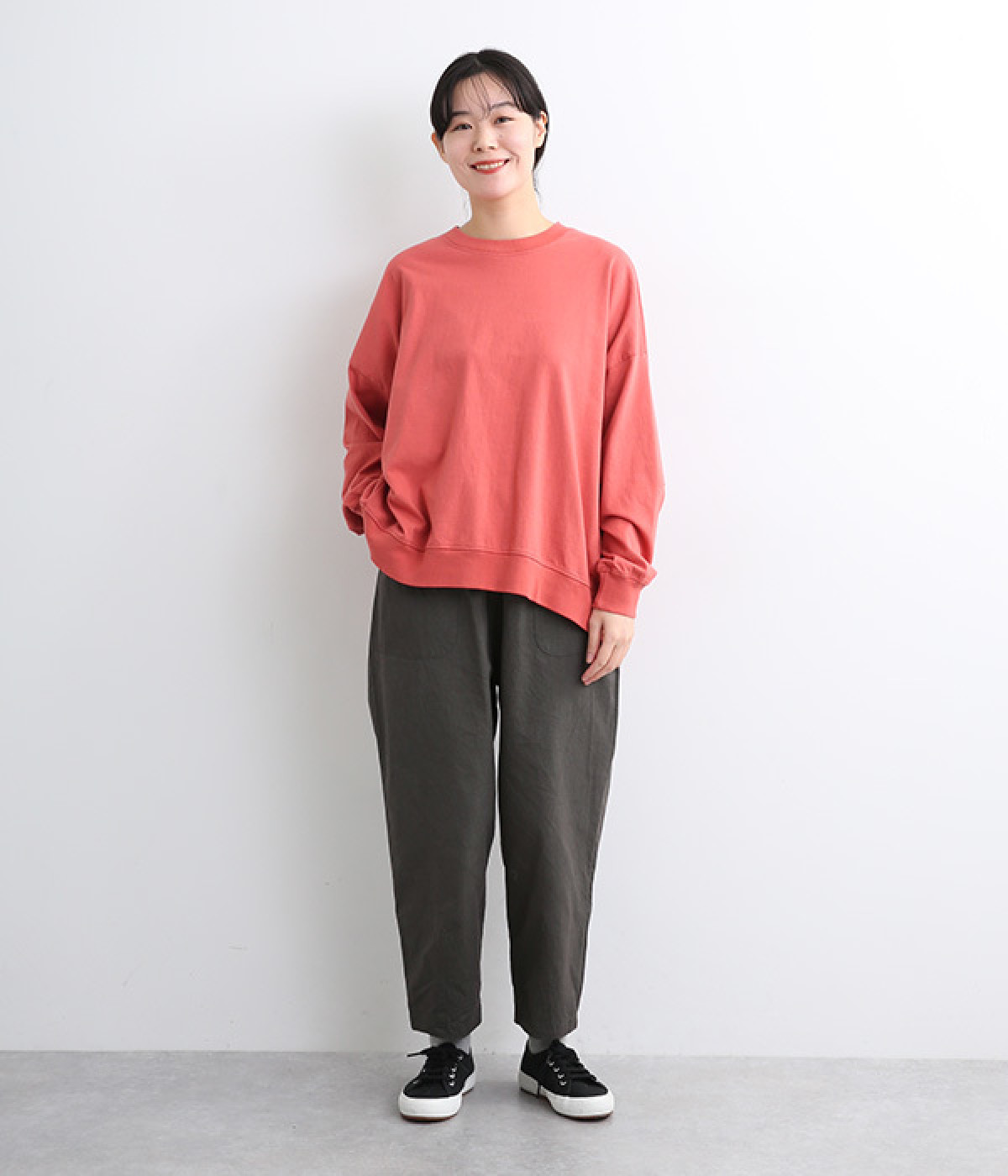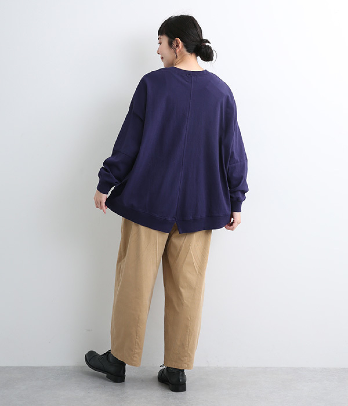 ゆったりとしたシルエットに後ろスリットでポイントを