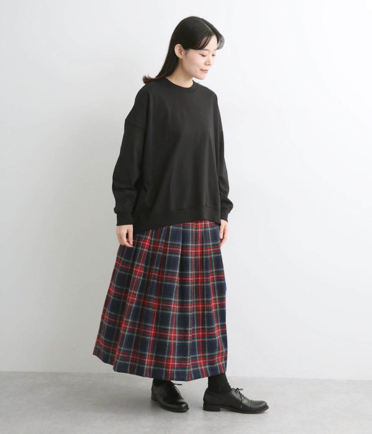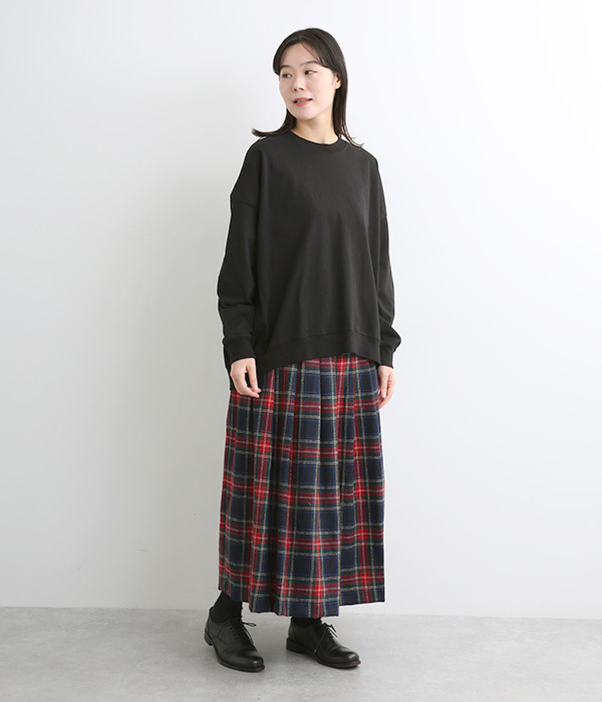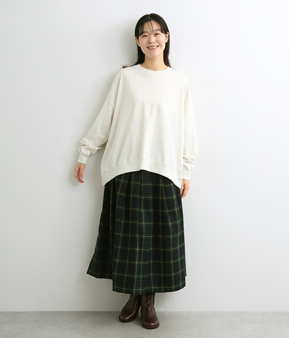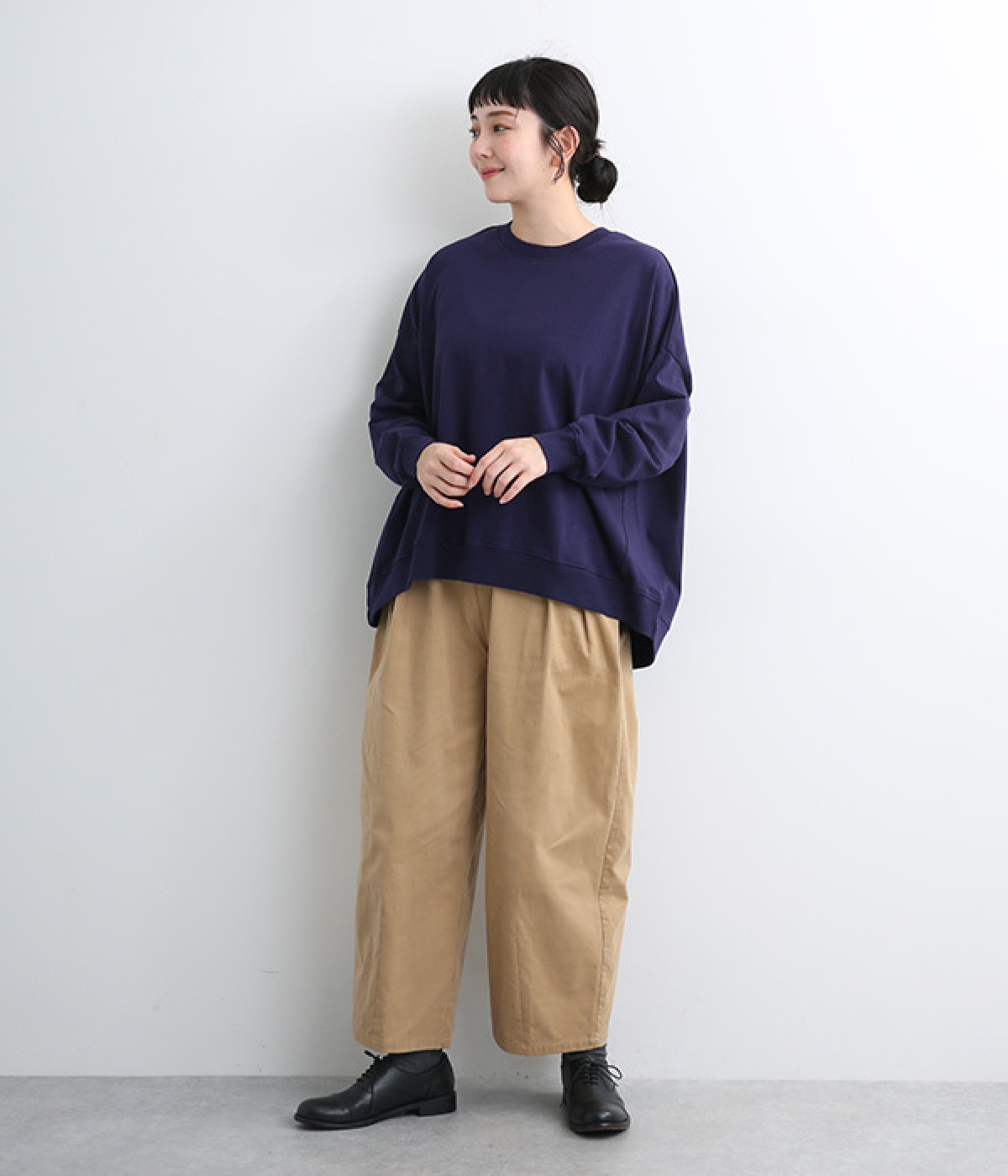 ゆったりとしたシルエットに後ろスリットでポイントを