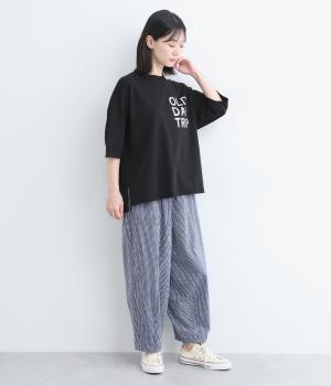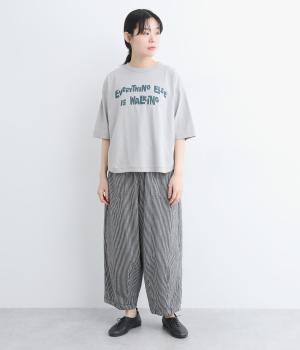 ヒッコリーストライプ特有のワーク感と爽やかさがあるパンツです。裾にダーツを入れて、立体的で丸みを帯びたシルエットを表現。ウエストは総ゴム仕様に加えて内側にドローコードを備えており、ストレスフリーな穿き心地に。