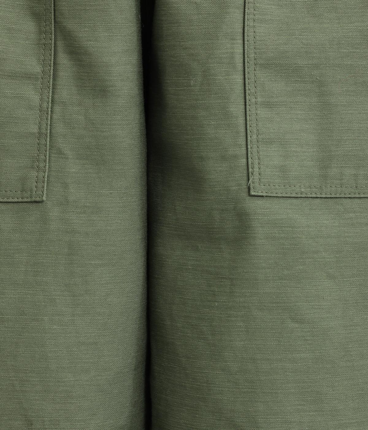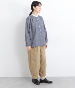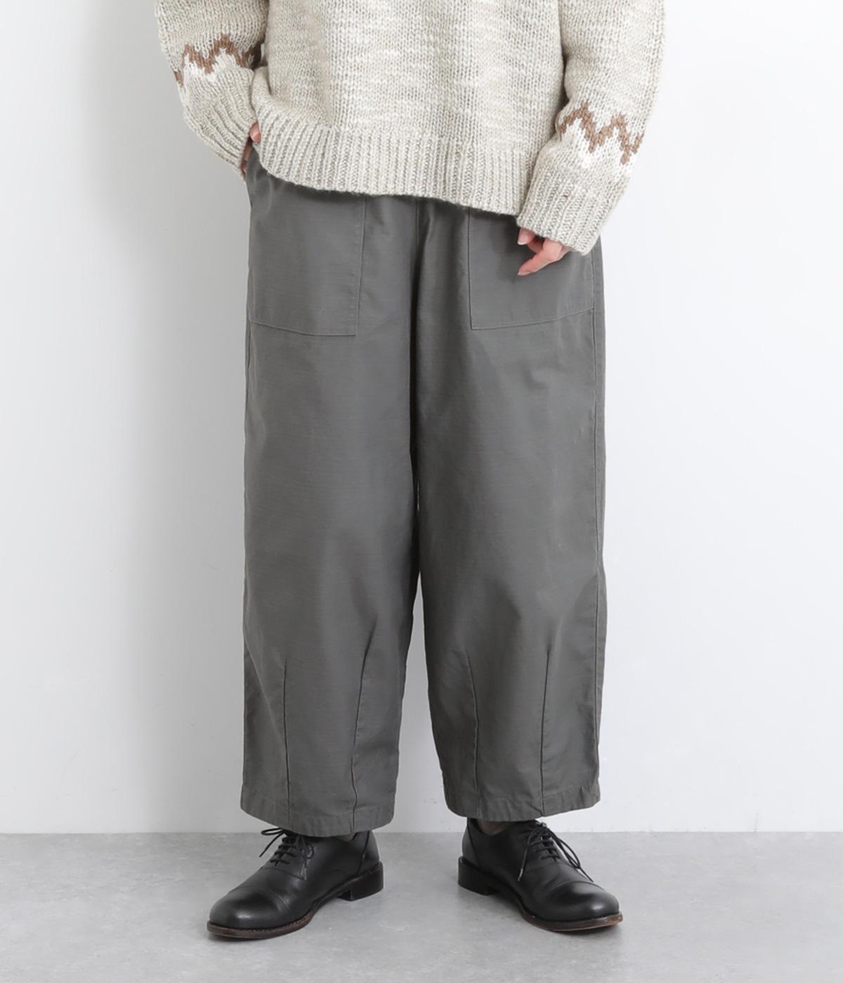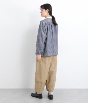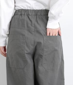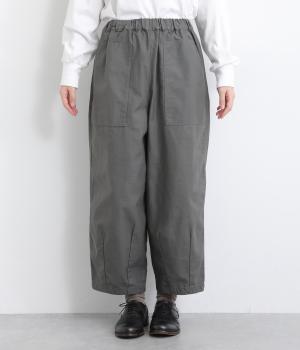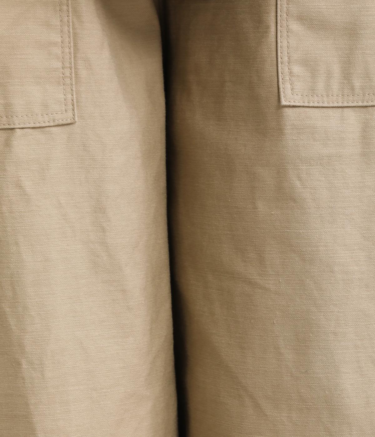 ほどよい太さのシルエットに、ベイカーパンツらしい大きめポケットをあしらいました。ヒップや太ももにゆとりを持たせつつ、裾にかけてすっきりとしたラインになるよう仕立てています。軽やかで動きやすく、デイリー使いにぴったりの一本です。