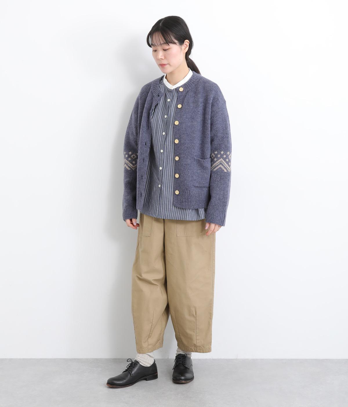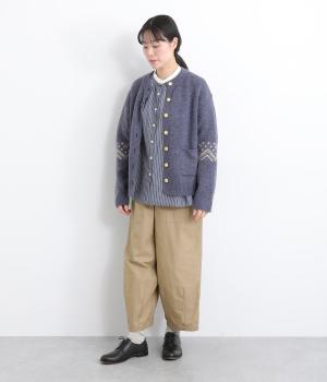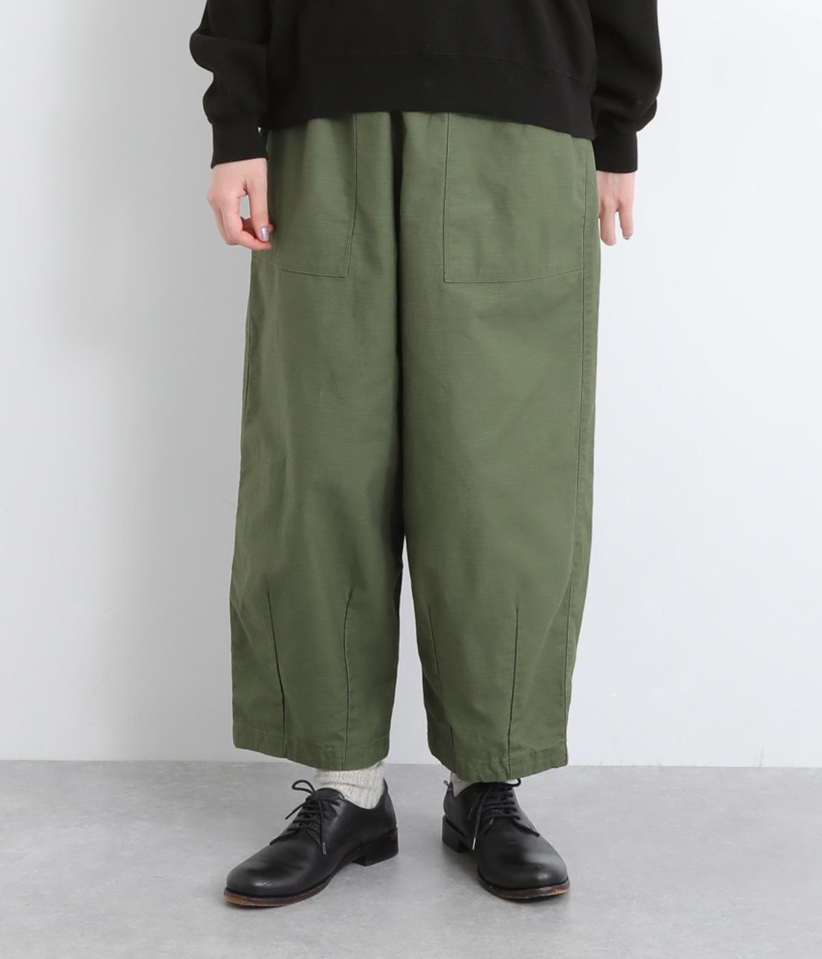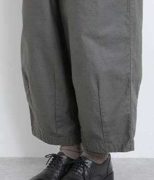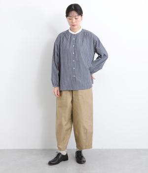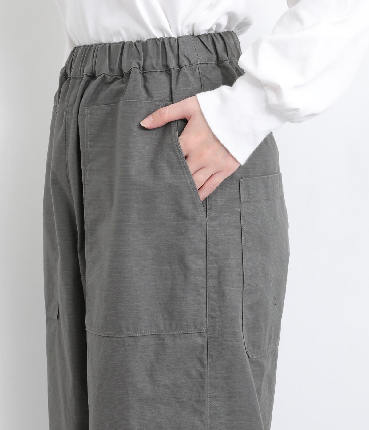 ほどよい太さのシルエットに、ベイカーパンツらしい大きめポケットをあしらいました。ヒップや太ももにゆとりを持たせつつ、裾にかけてすっきりとしたラインになるよう仕立てています。軽やかで動きやすく、デイリー使いにぴったりの一本です。