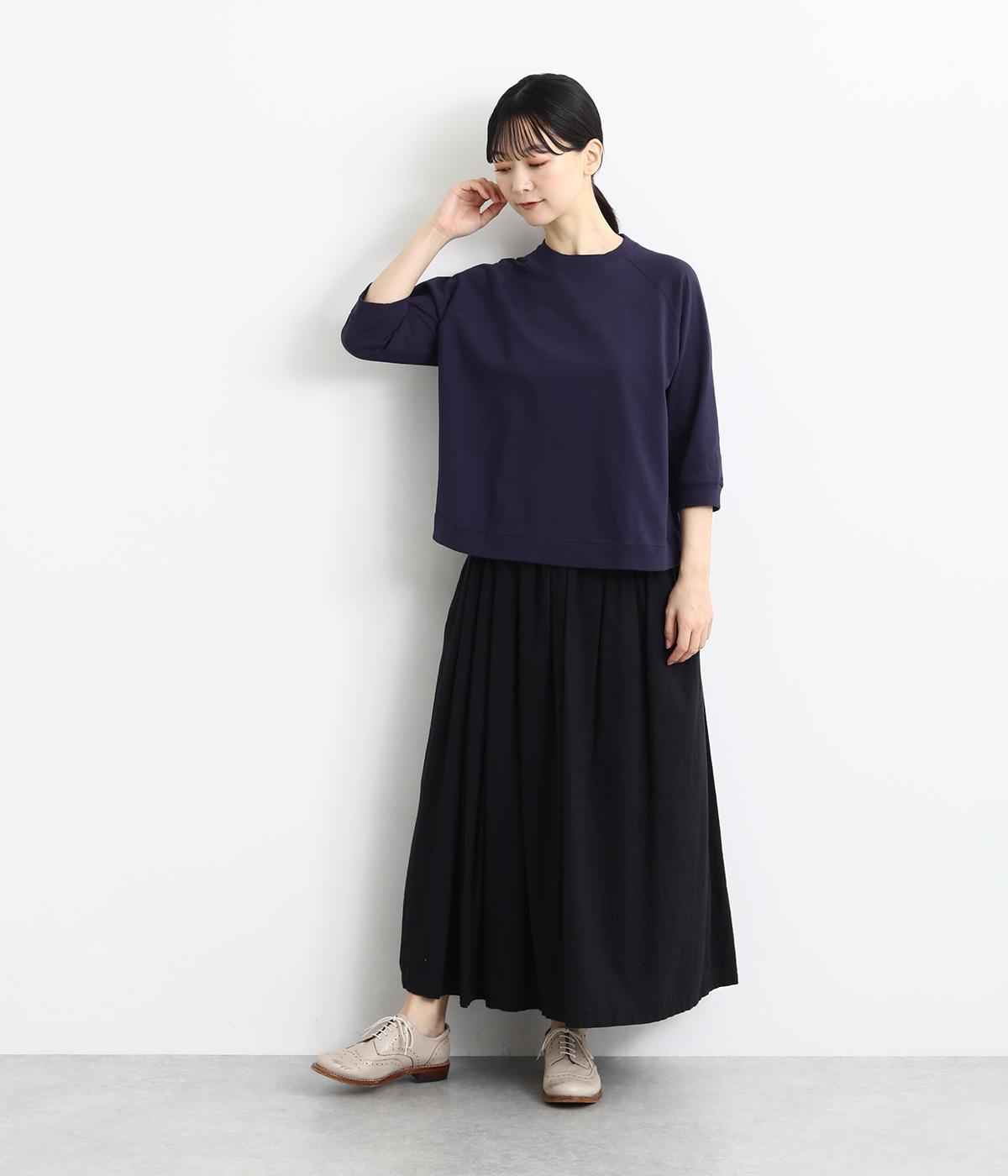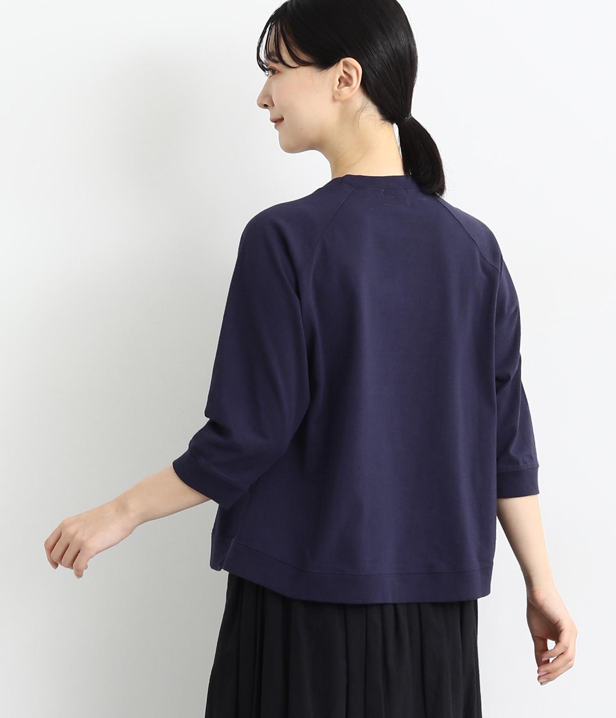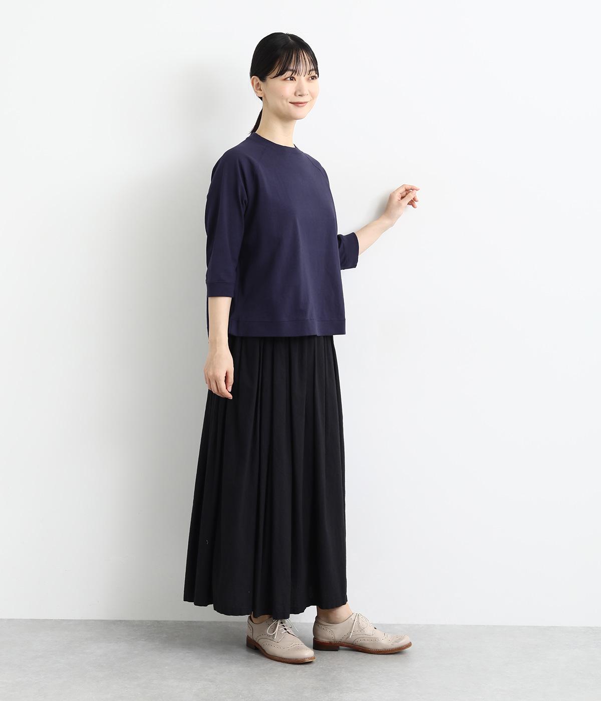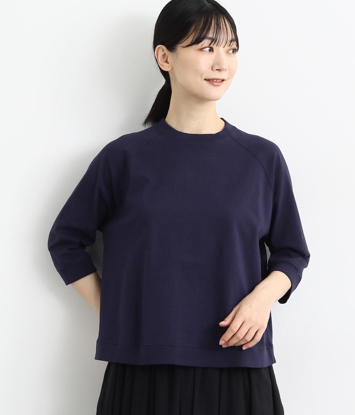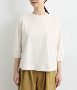 シンプルで着まわしやすいラグランスリーブのプルオーバーです。さりげなくラウンドした後ろ裾のリブがポイント。インしなくてもすっきりと見える、やや短めの着丈です。手首がのぞく袖丈は、季節の変わり目から長く活躍。