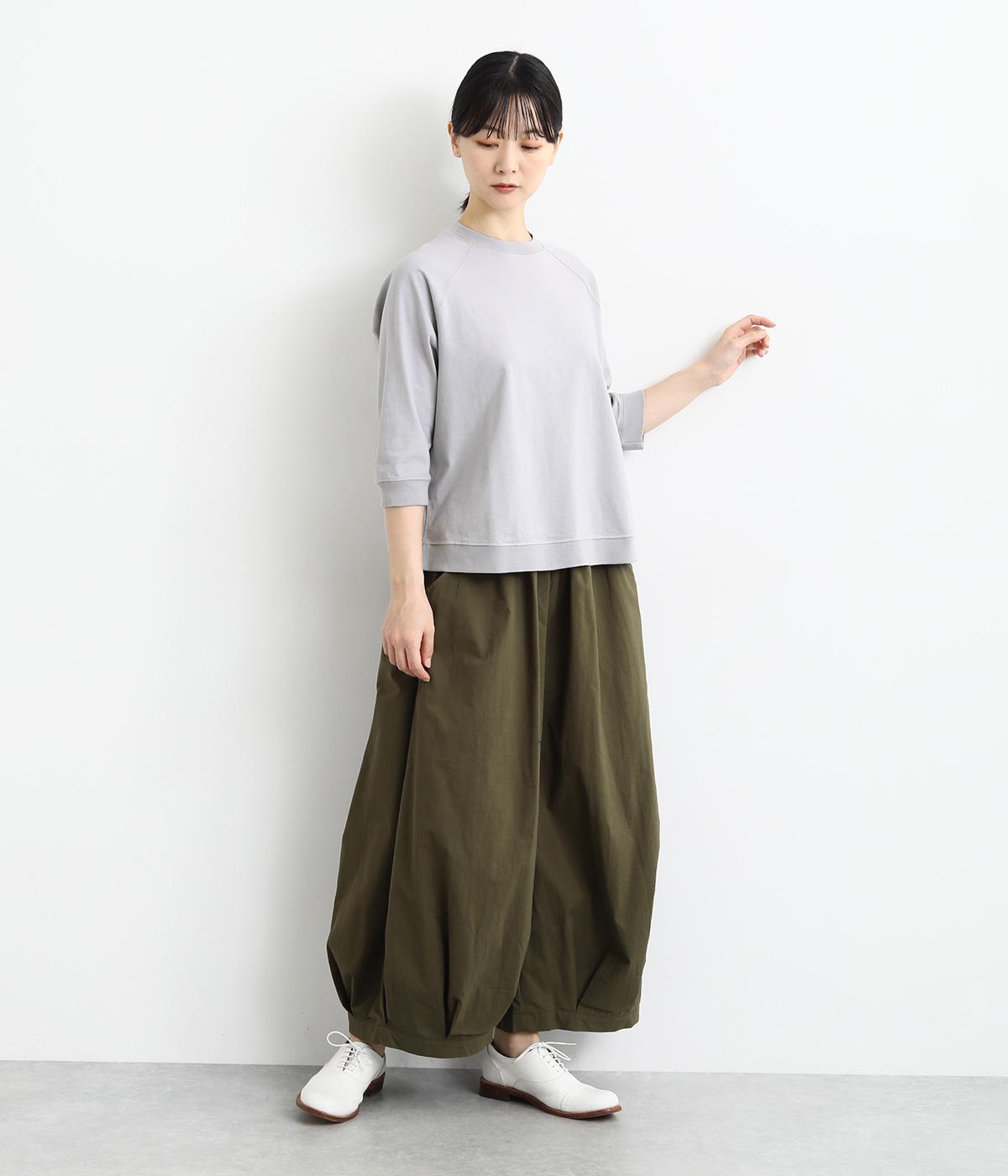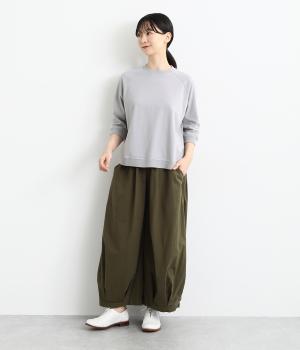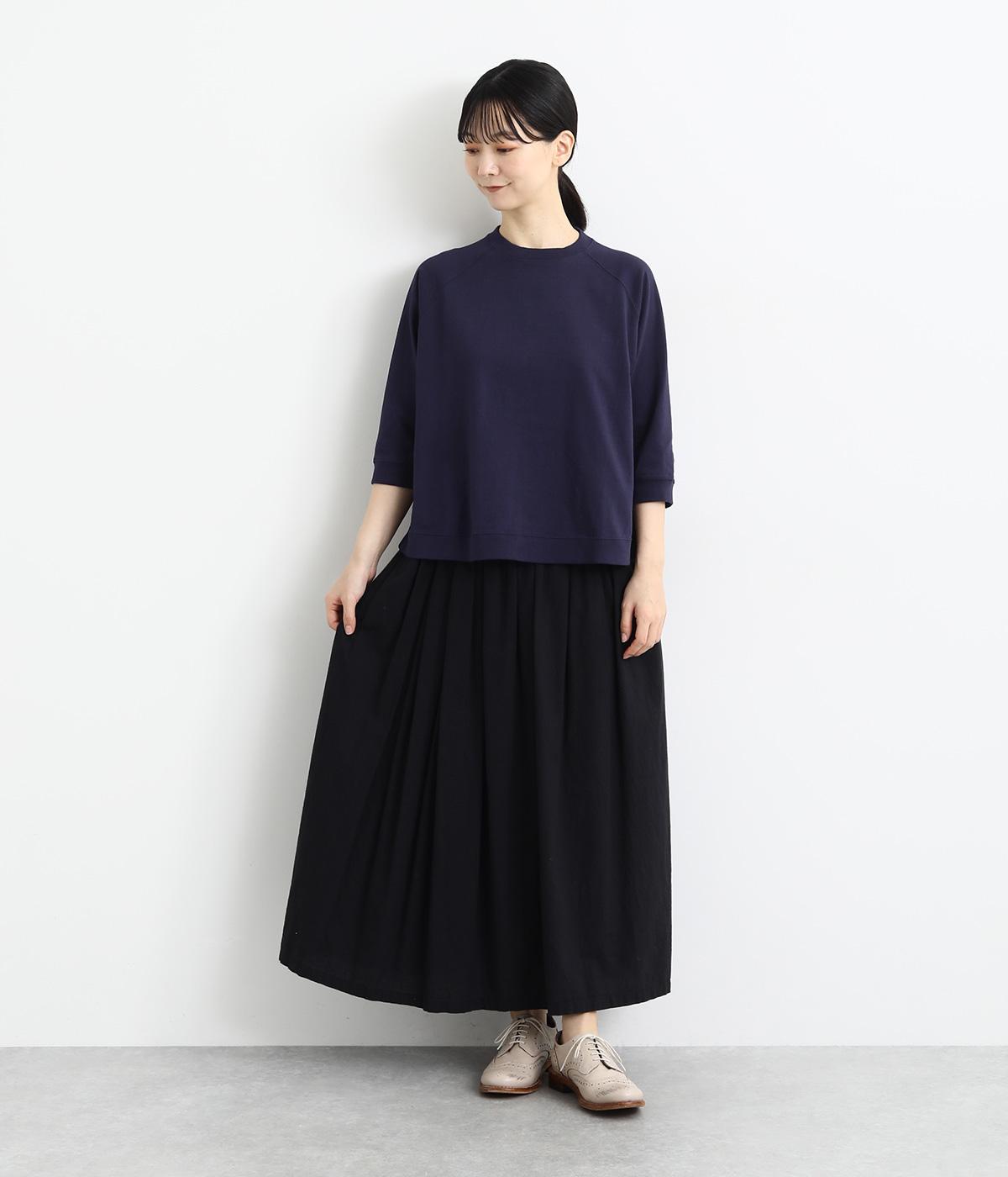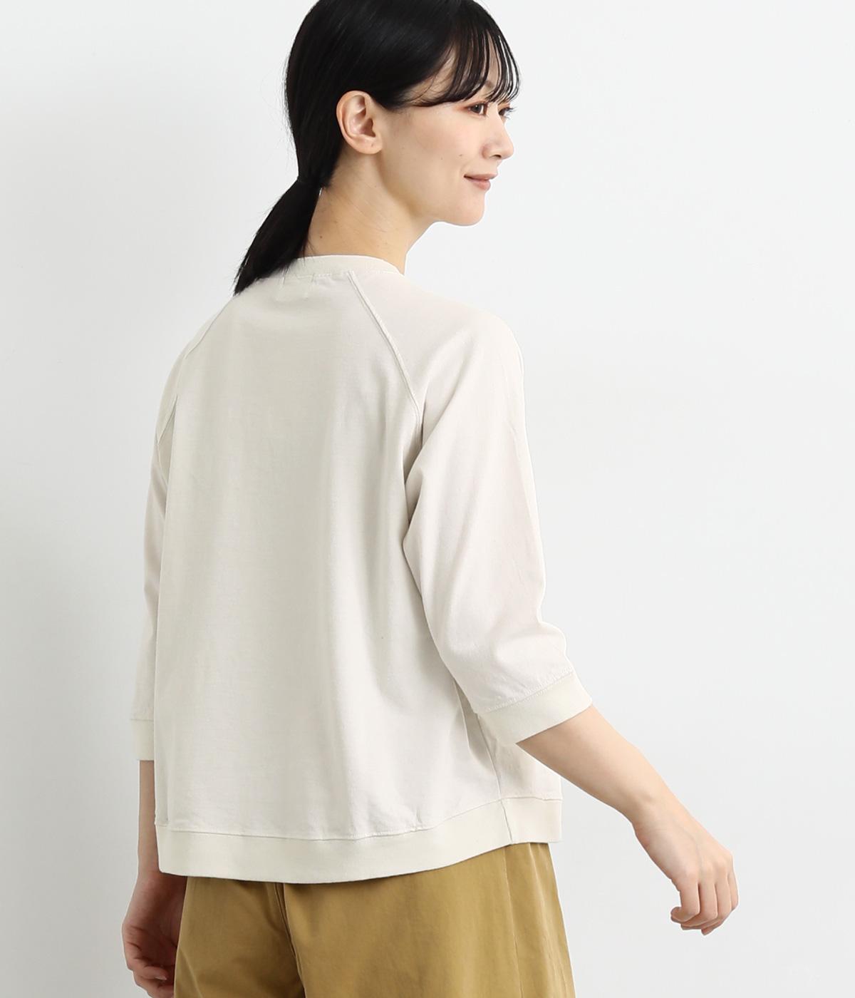 シンプルで着まわしやすいラグランスリーブのプルオーバーです。さりげなくラウンドした後ろ裾のリブがポイント。インしなくてもすっきりと見える、やや短めの着丈です。手首がのぞく袖丈は、季節の変わり目から長く活躍。