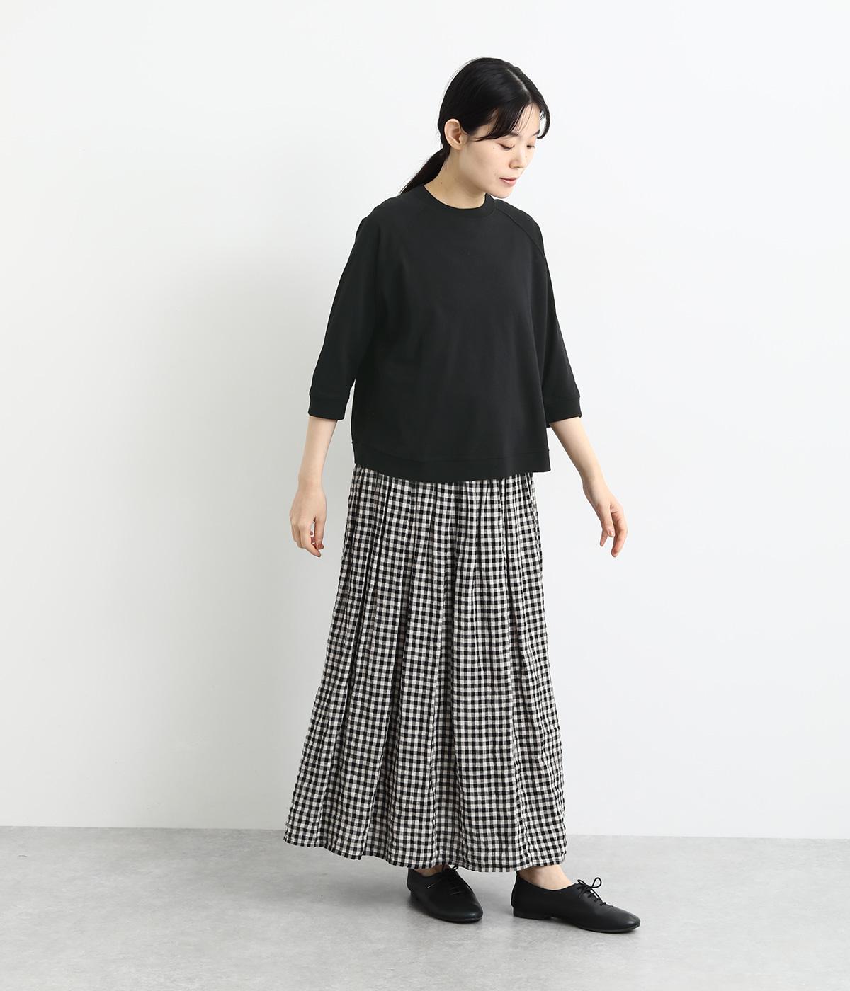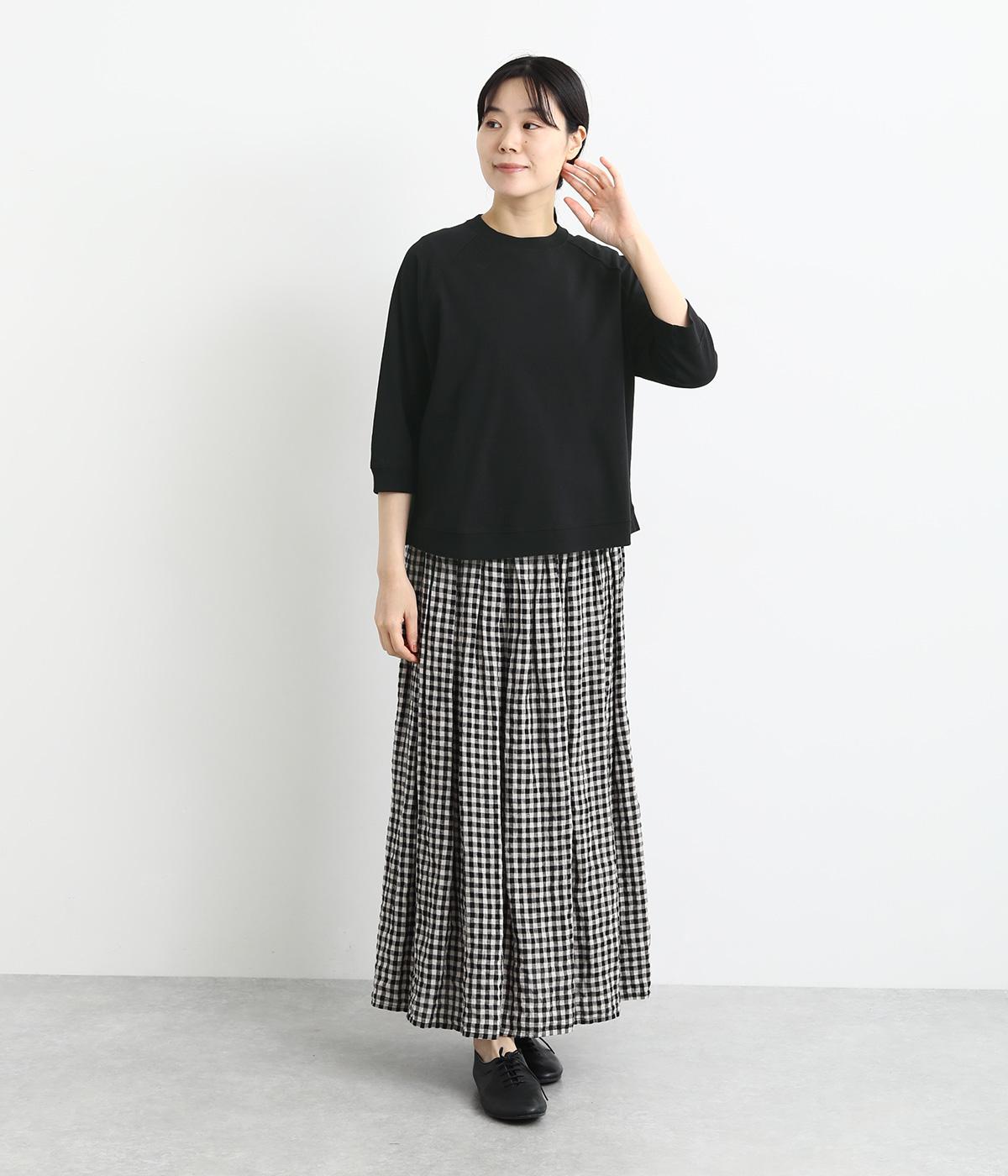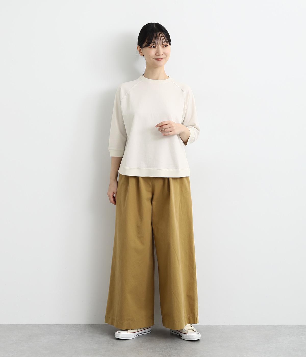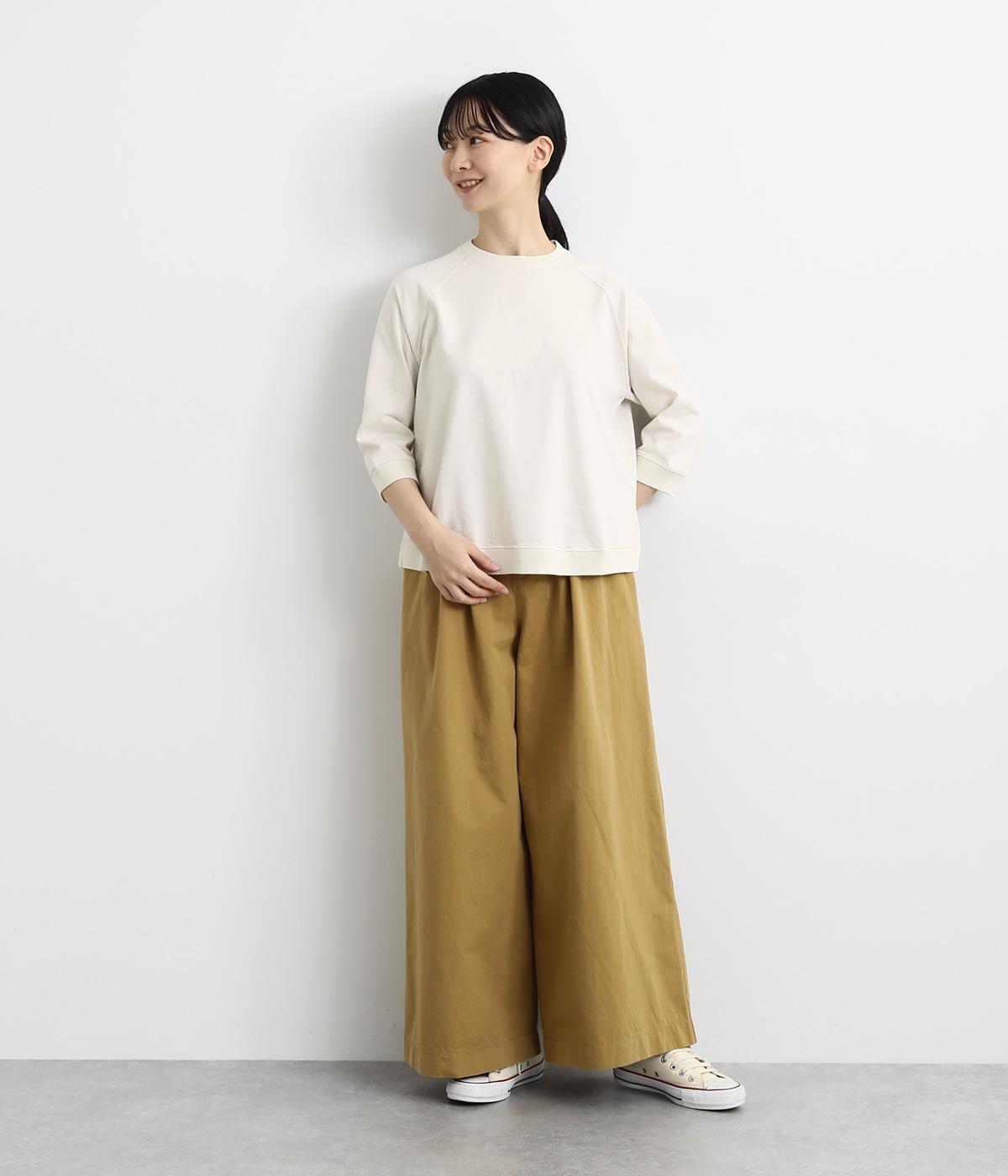 シンプルで着まわしやすいラグランスリーブのプルオーバーです。さりげなくラウンドした後ろ裾のリブがポイント。インしなくてもすっきりと見える、やや短めの着丈です。手首がのぞく袖丈は、季節の変わり目から長く活躍。