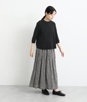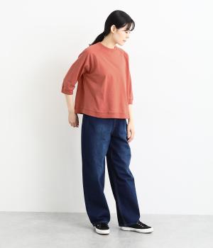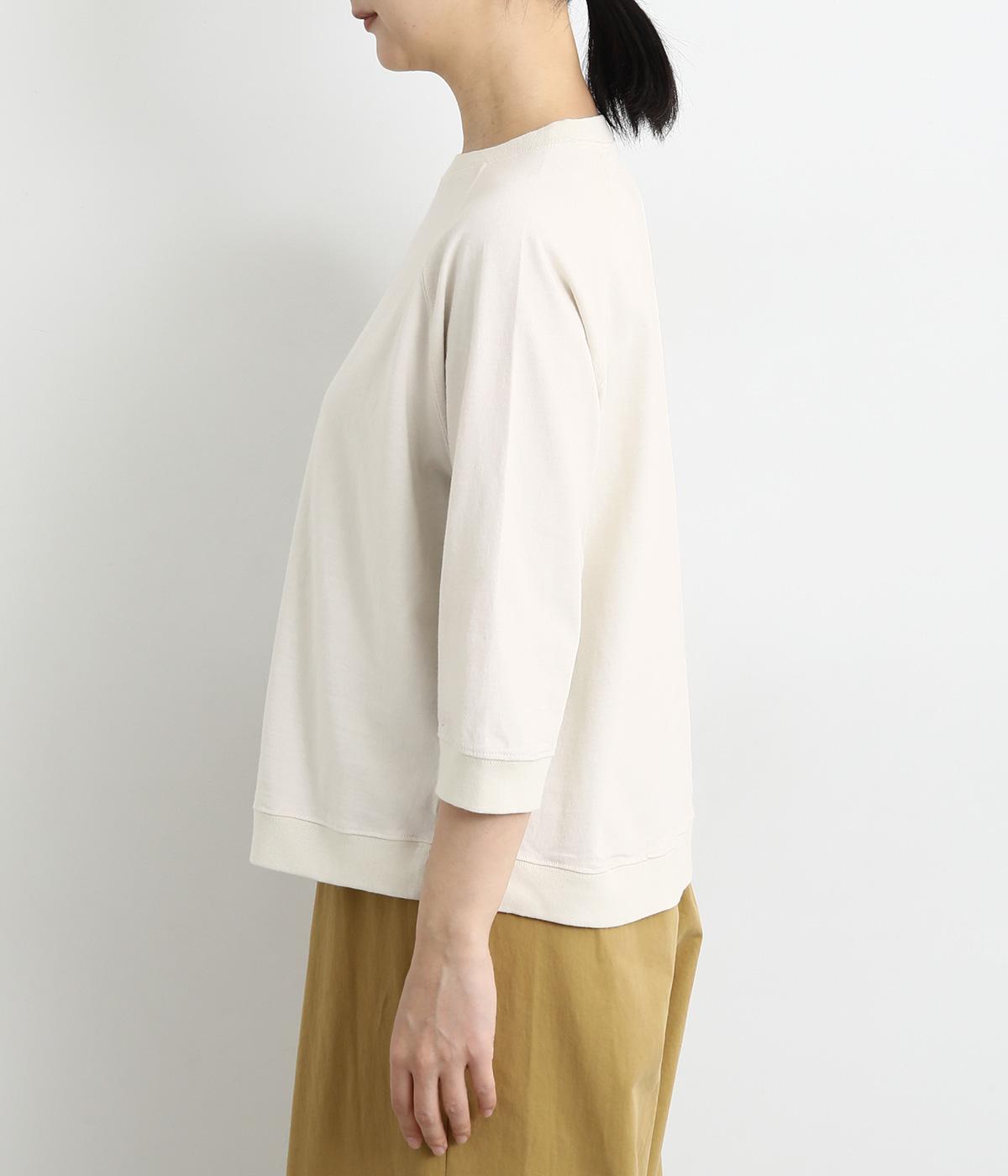 アメリカンコットンを使用した肌触りの気持ちいい天竺素材。軽い着心地ながらも適度なハリを備えた、デイリー使いにぴったりの生地感。一枚でも、レイヤードにも対応する厚みです。