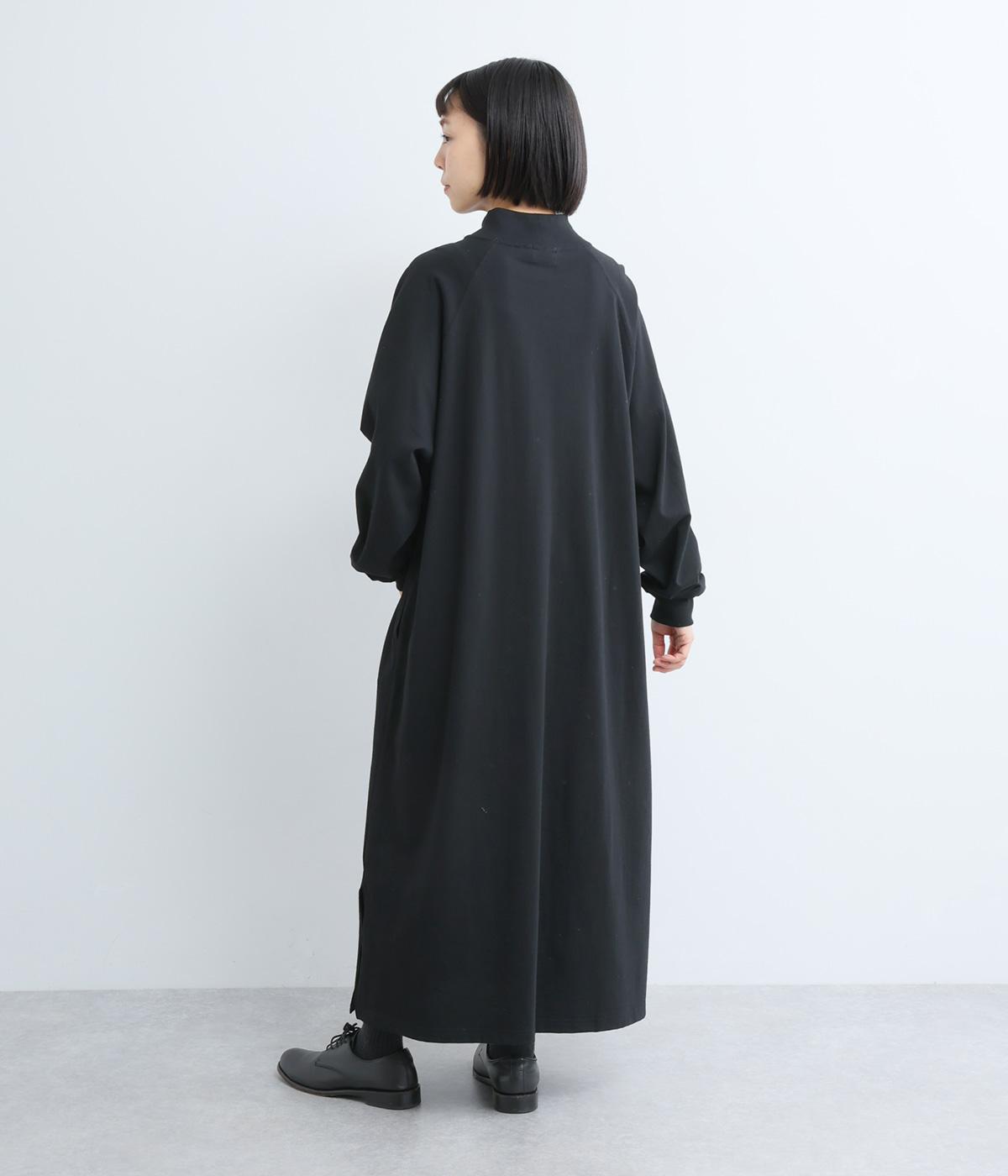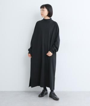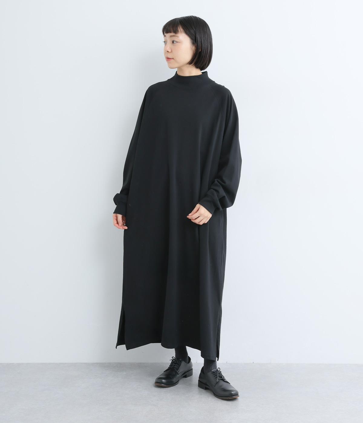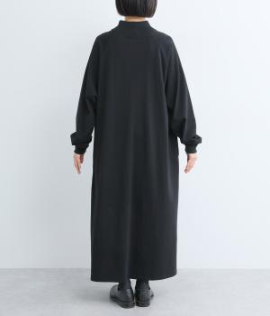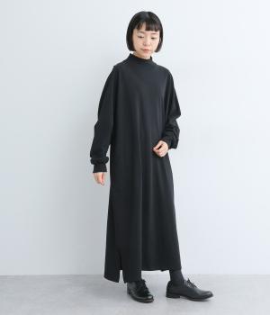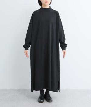締めつけのないすとんと落ちたシルエットにラグラン袖でリラックスムードに仕上げたワンピース。すこし立ち上がったモックネックが顔まわりにお洒落なニュアンスを。サイドにスリットが入っているので足さばきも快適です。