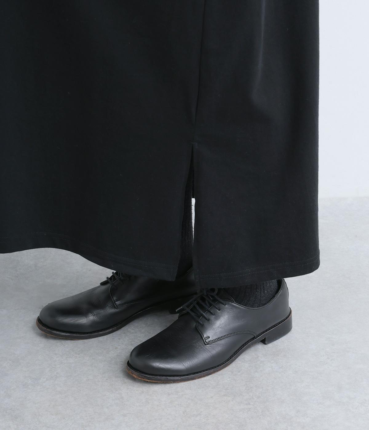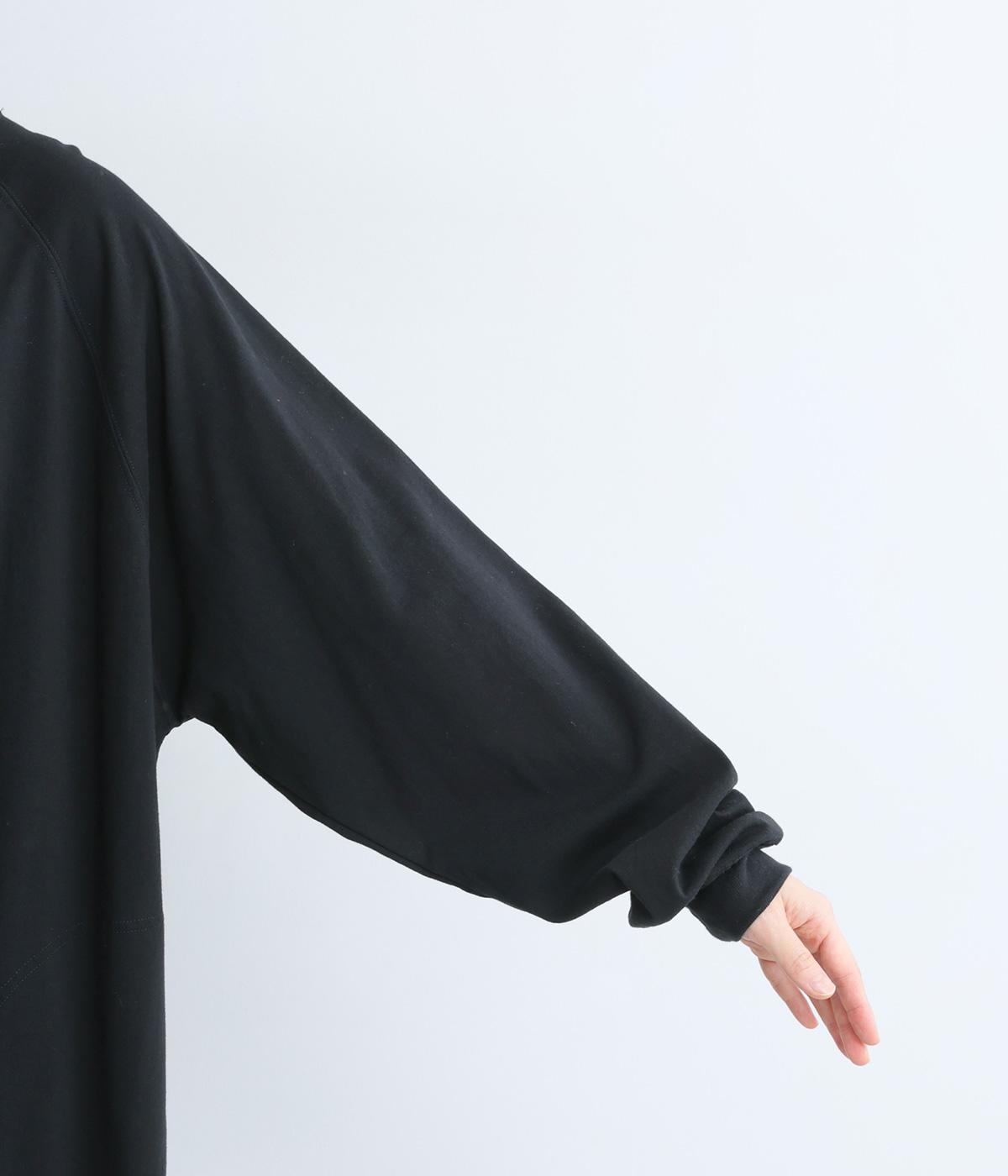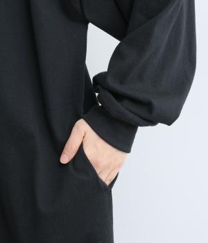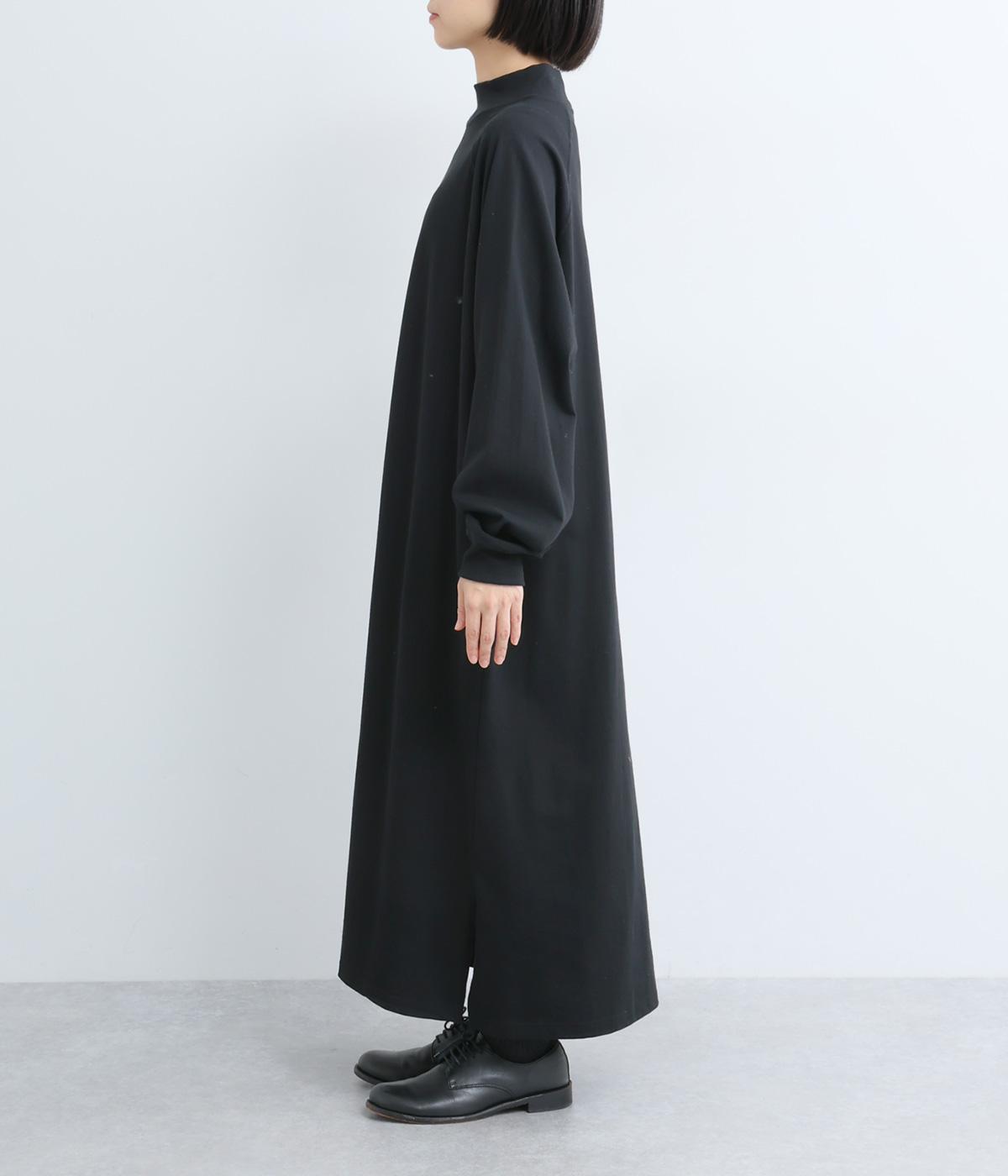 締めつけのないすとんと落ちたシルエットにラグラン袖でリラックスムードに仕上げたワンピース。すこし立ち上がったモックネックが顔まわりにお洒落なニュアンスを。サイドにスリットが入っているので足さばきも快適です。
