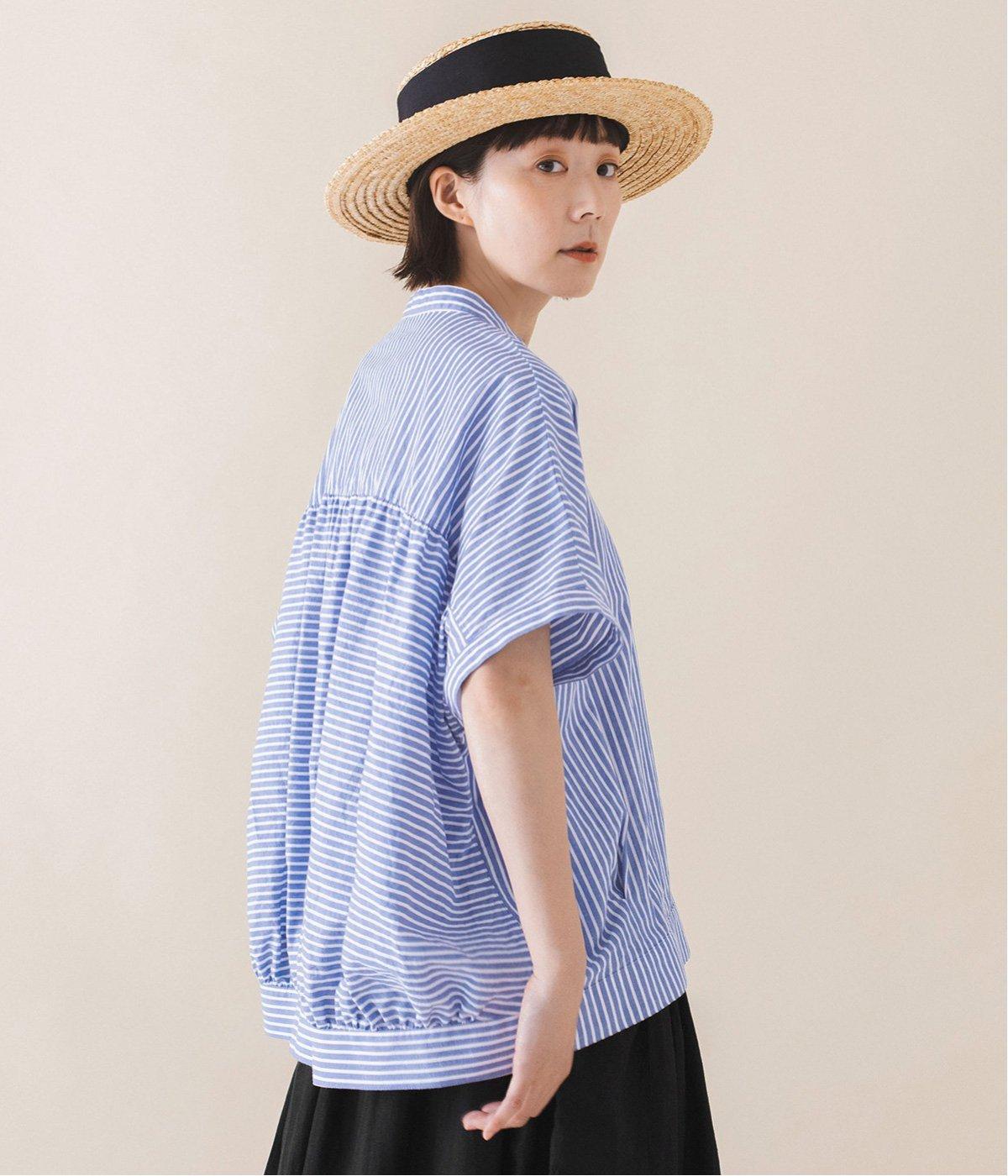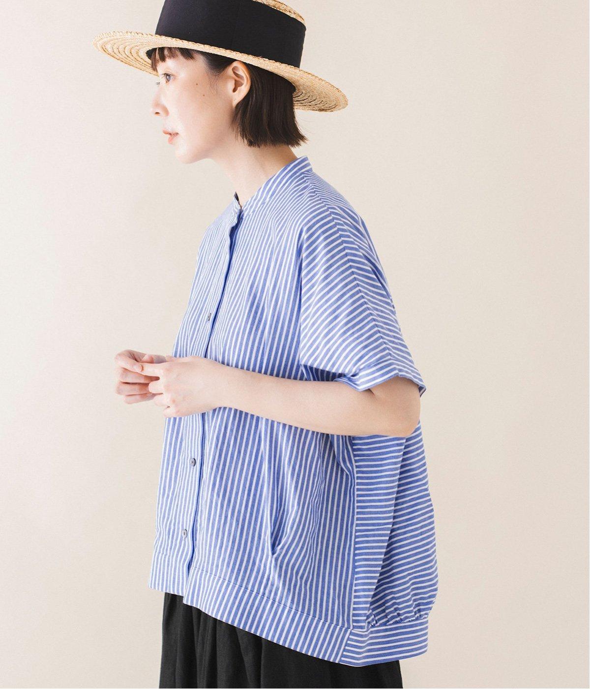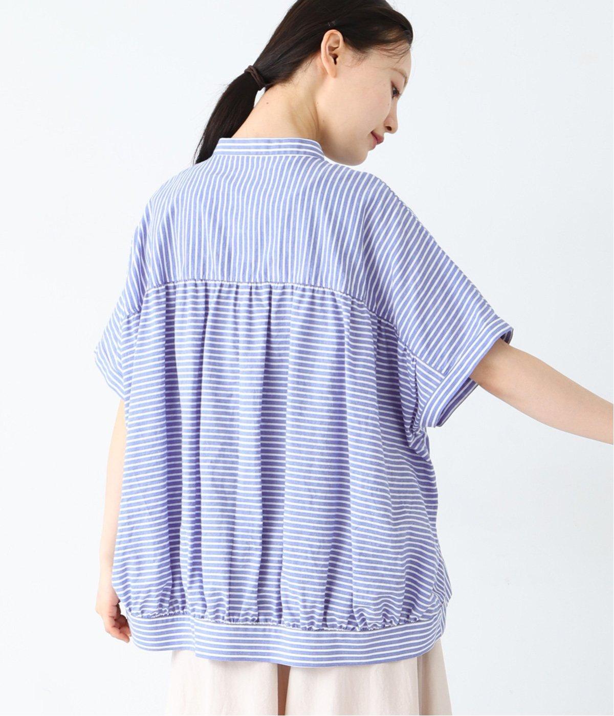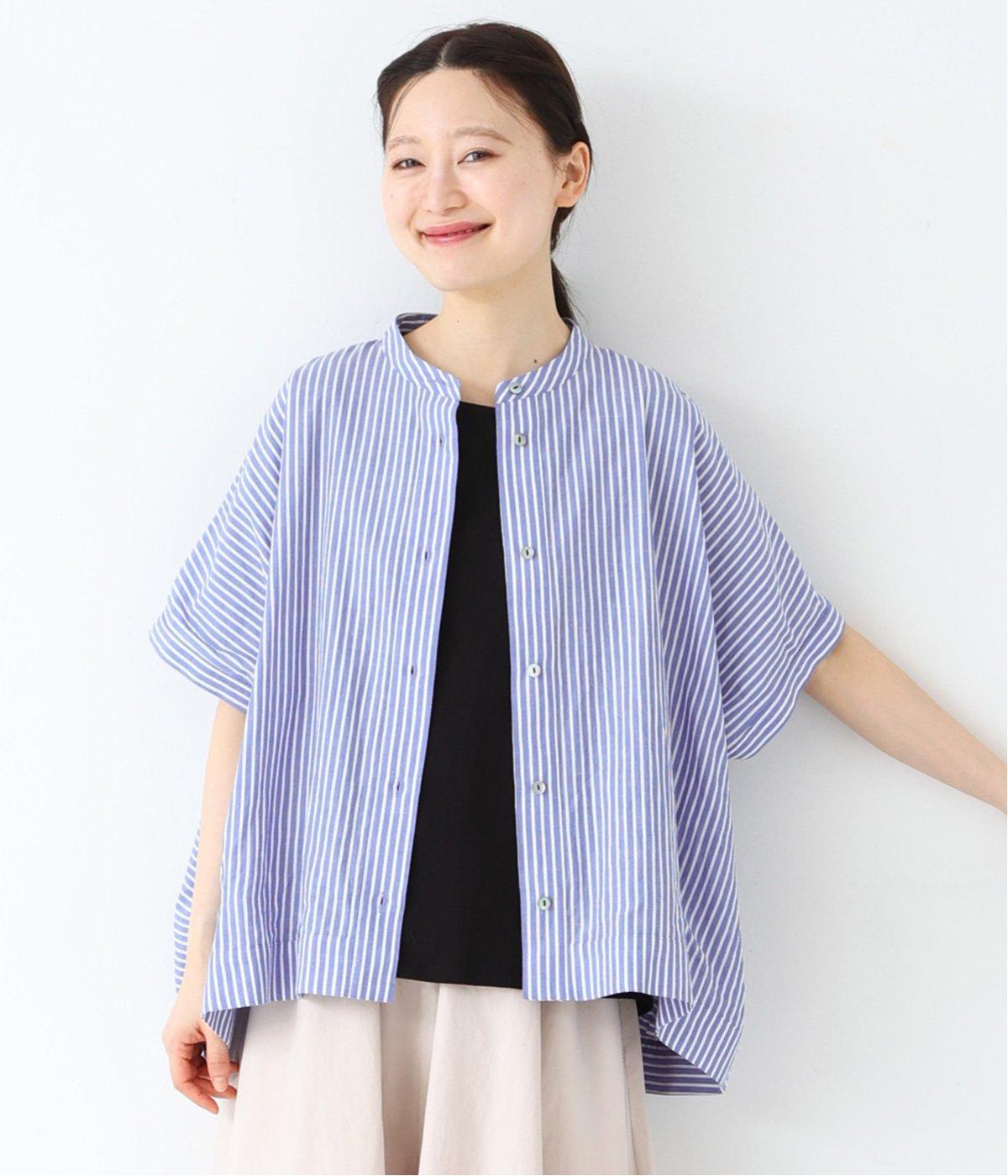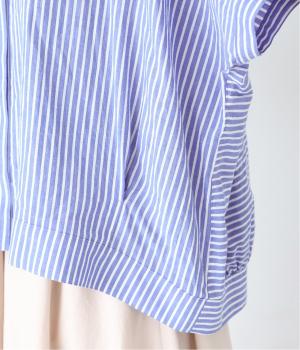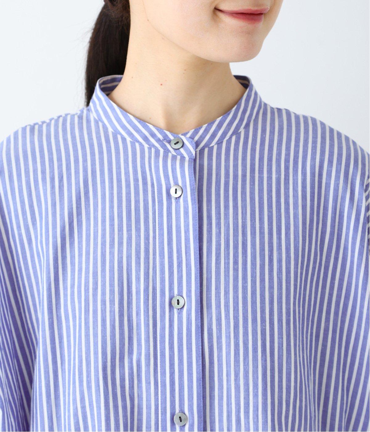 コットンリネンストライプシャツ(ブルー-ONESIZE)