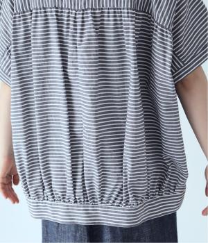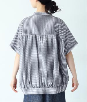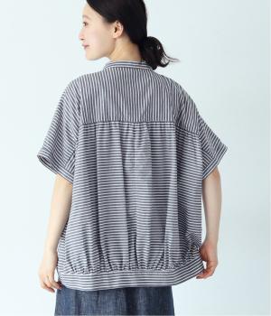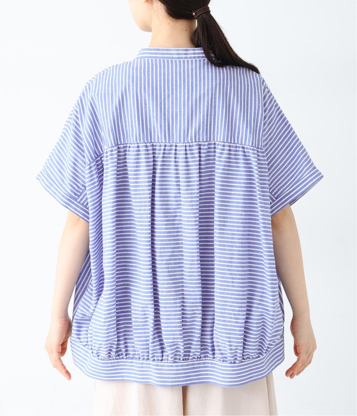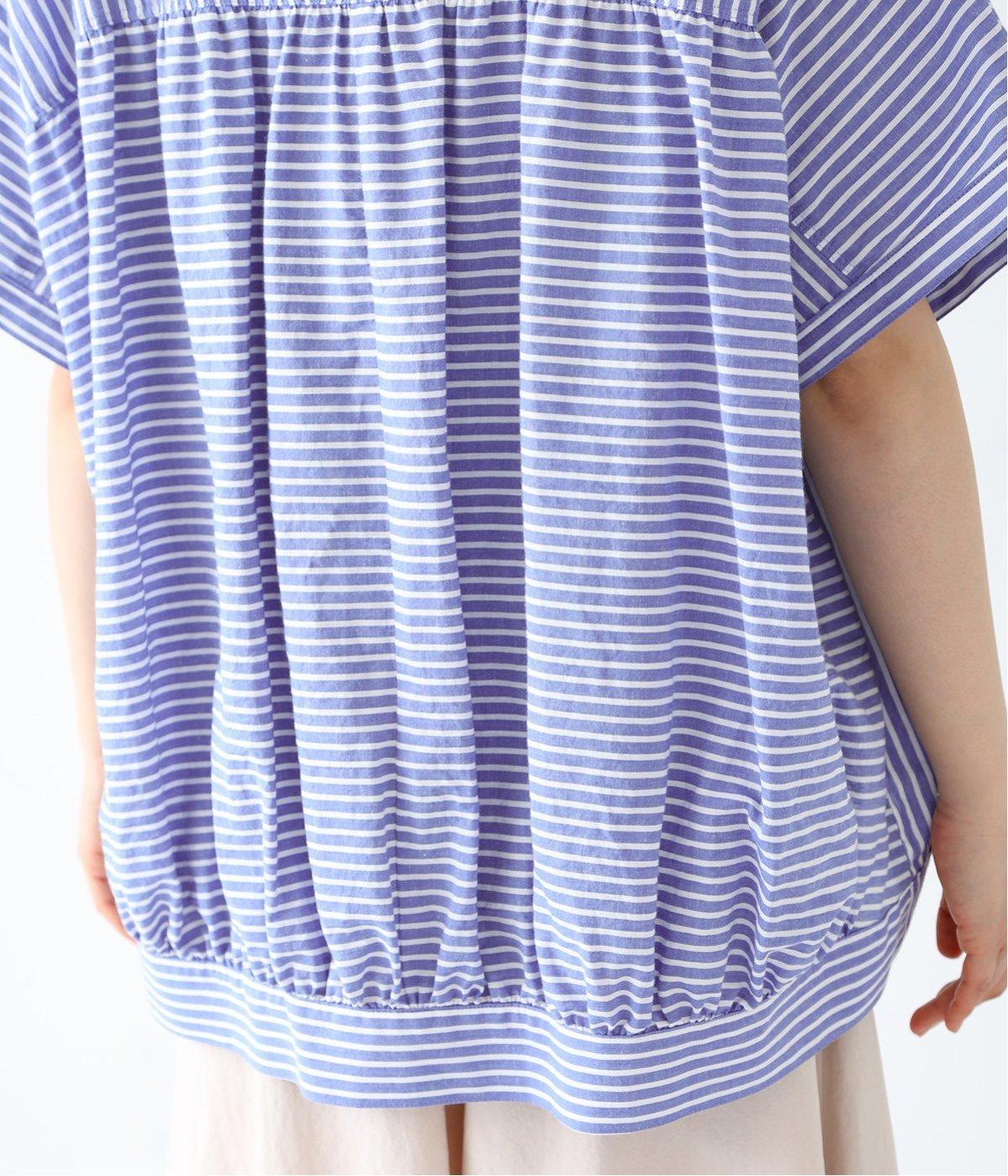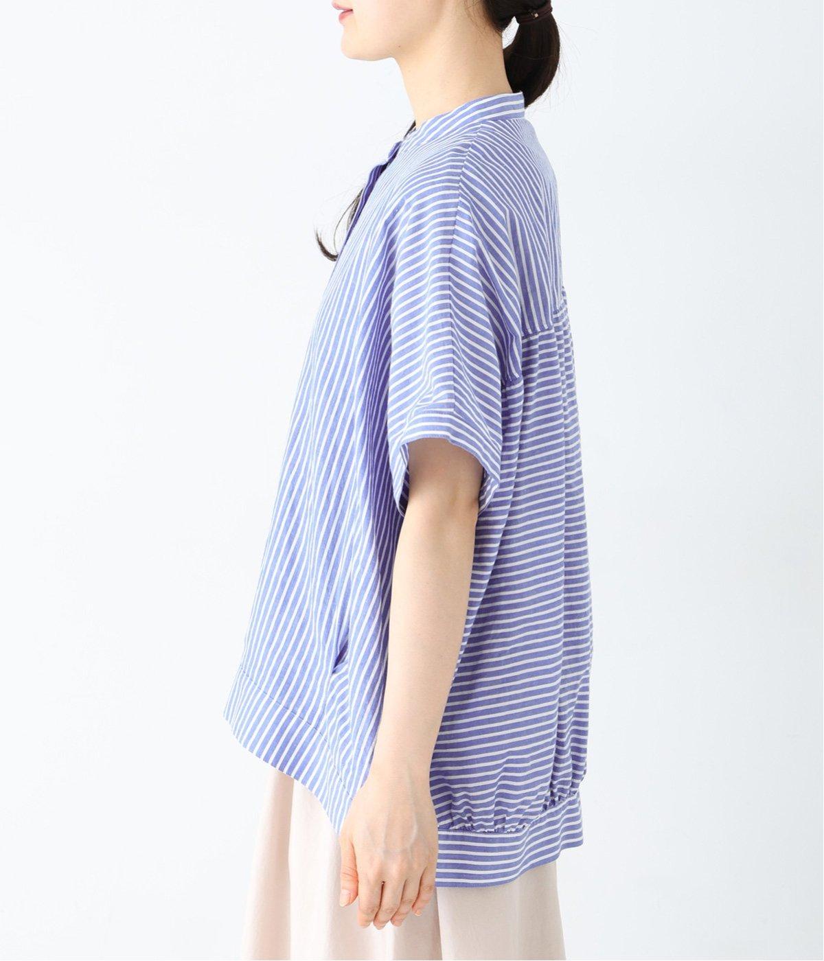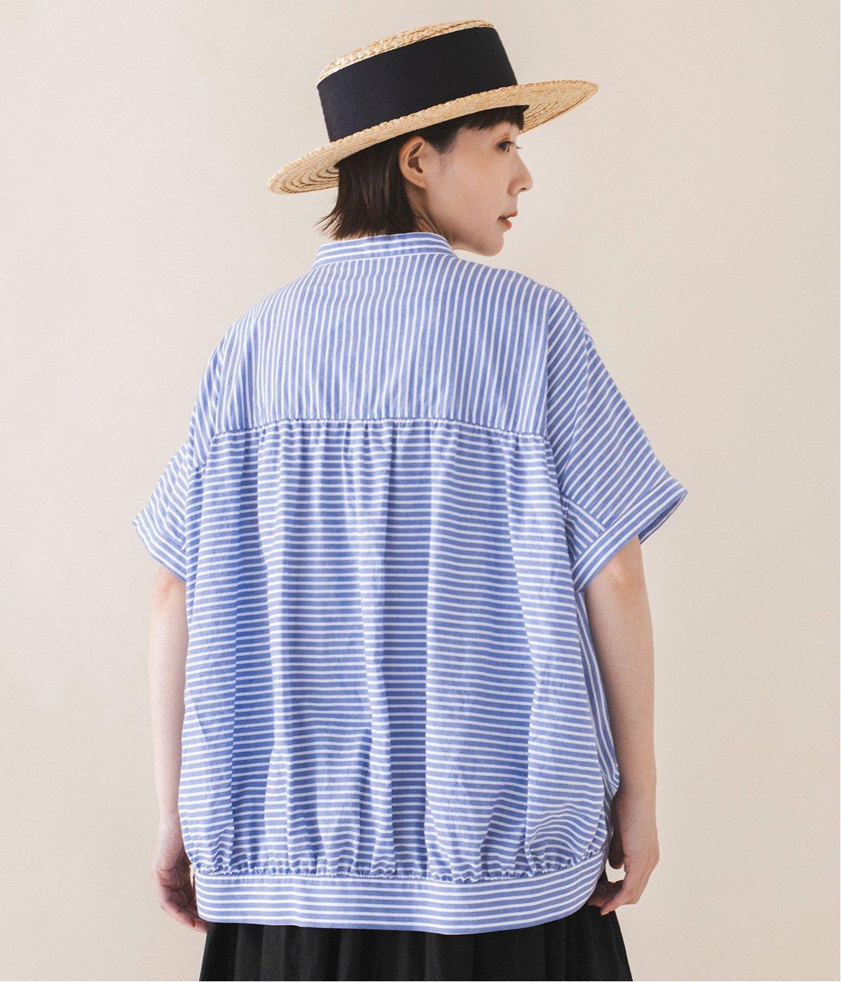 コットンリネンストライプシャツ(ブルー-ONESIZE)