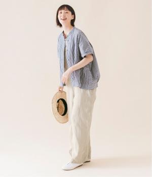 コットンリネンストライプシャツ