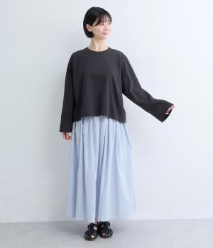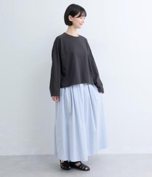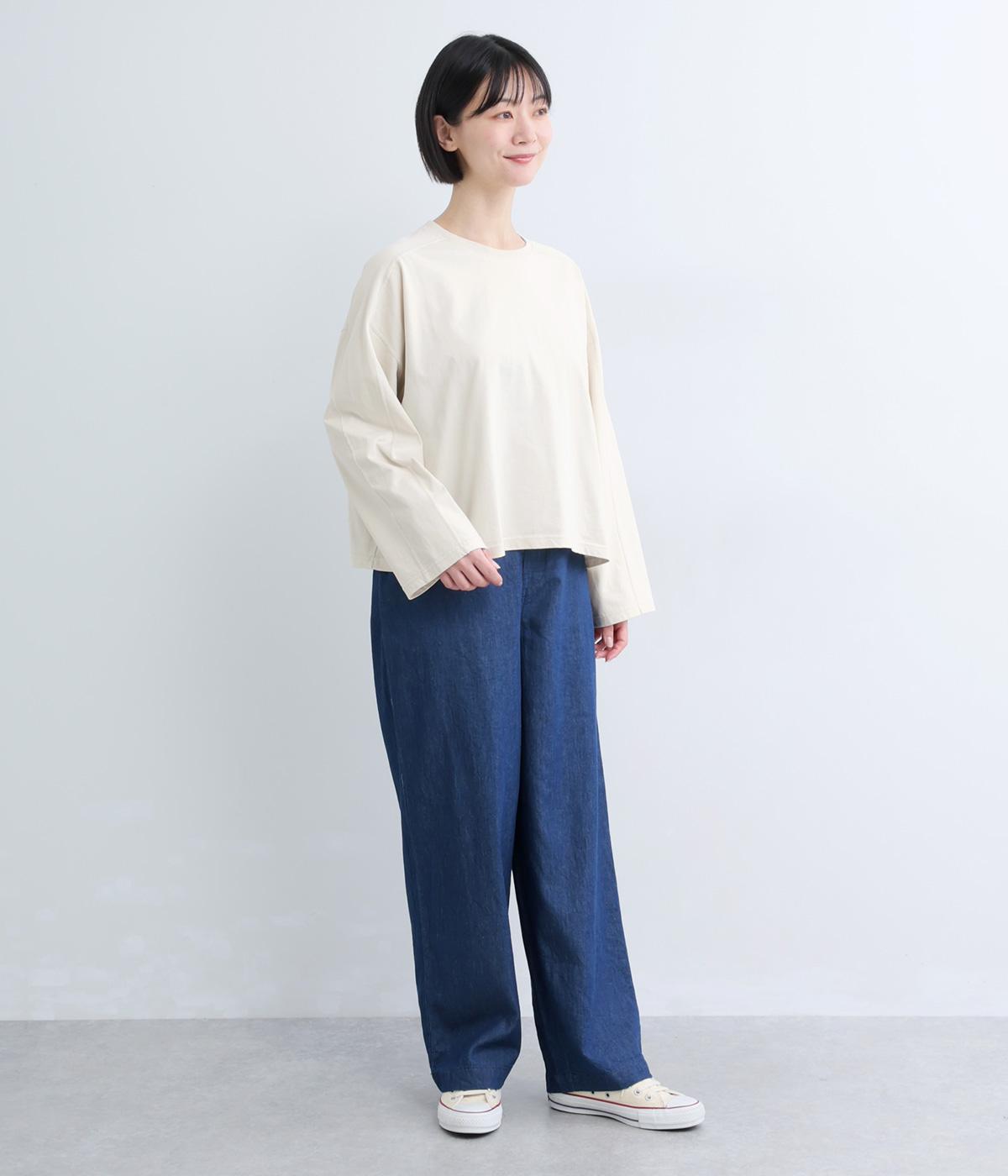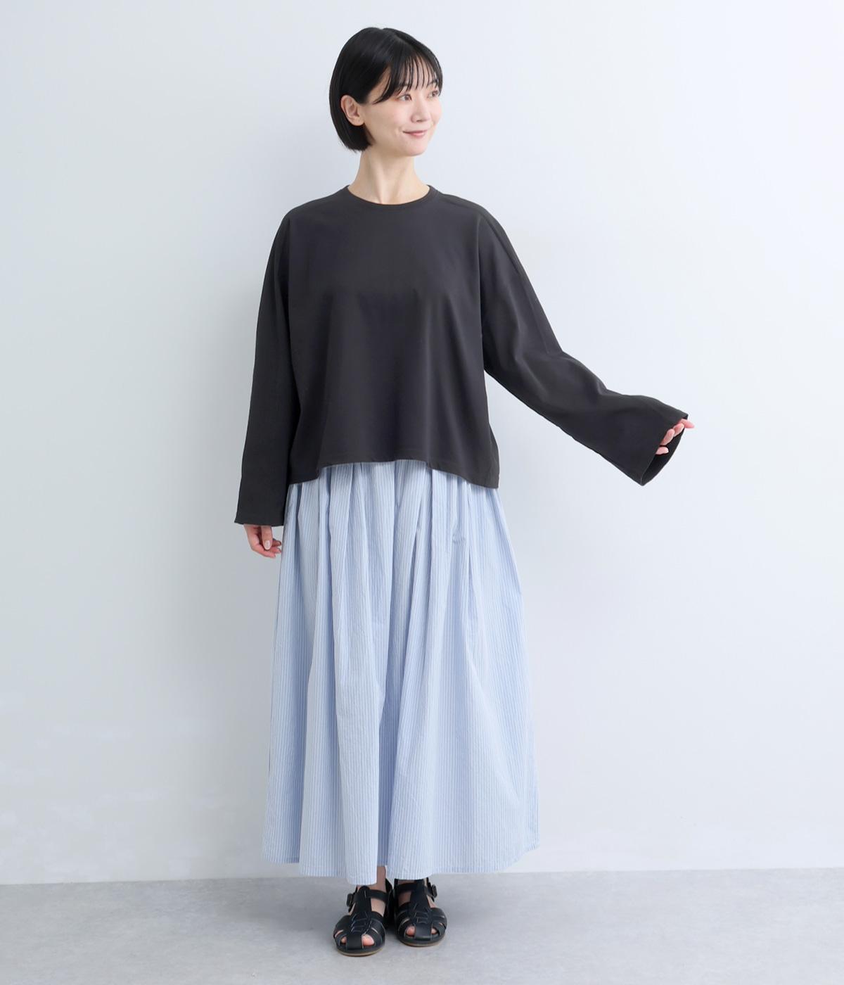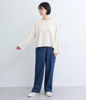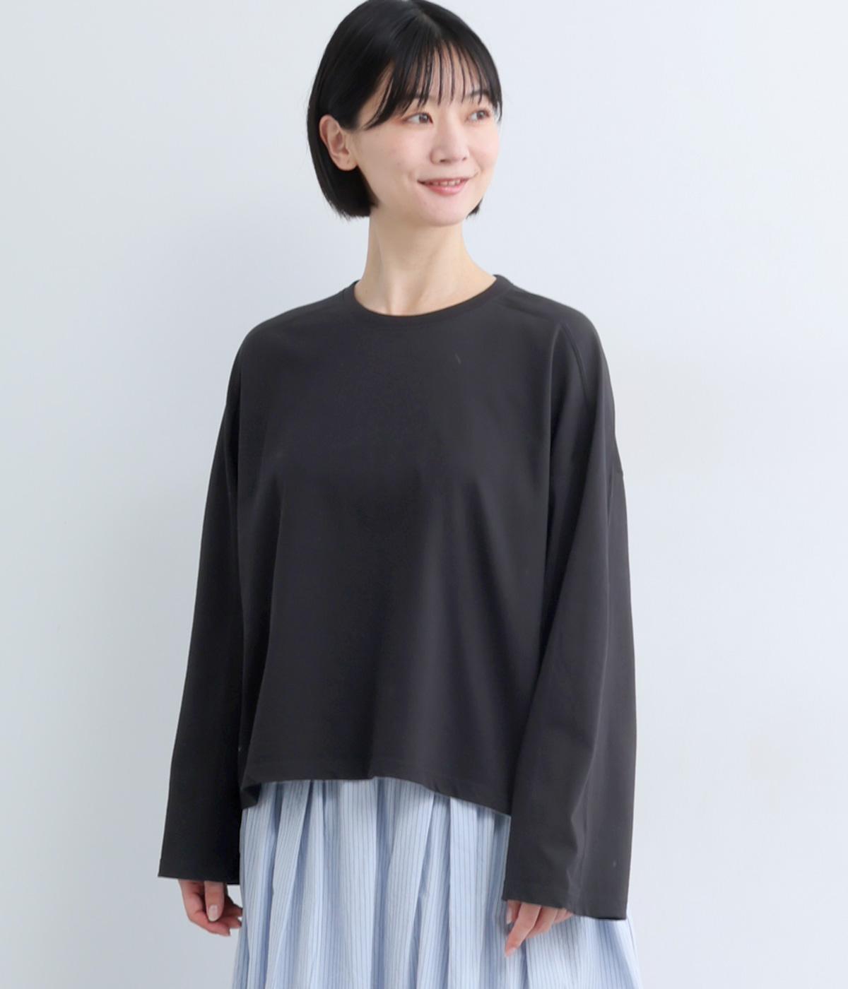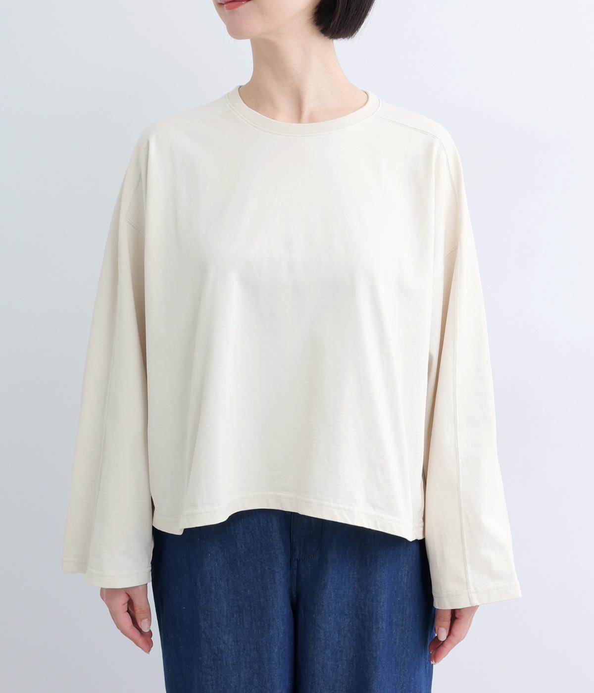 なめらかな手ざわりが心地よいコットン天竺生地。優れた伸縮性に、通気性と吸湿性を備えています。さらりと肌になじむ質感はデイリーユースに最適で、季節を問わず快適に着用いただけます。