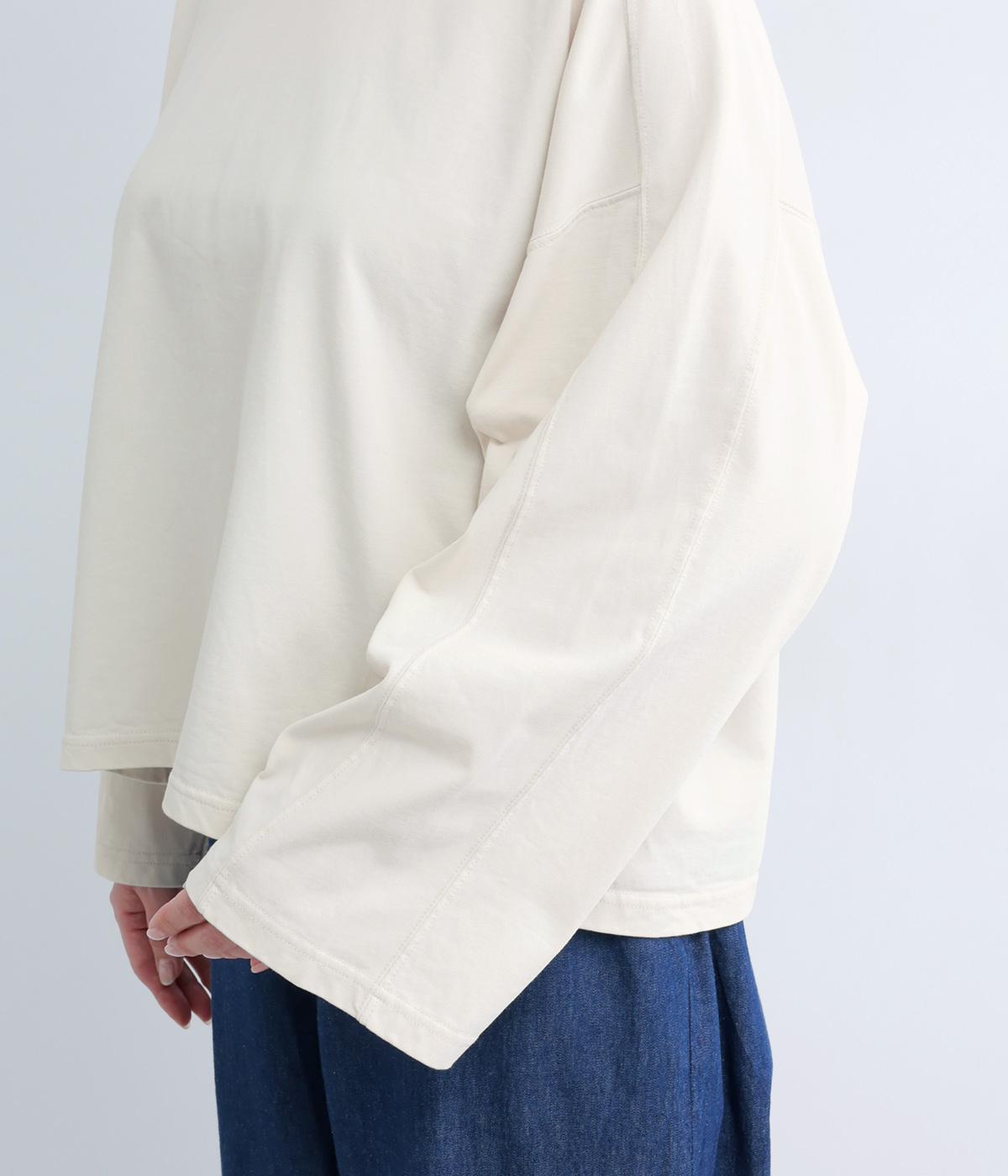 肩まわりをすっきりと見せるヨークスリーブが特徴のプルオーバー。ゆとりを持たせつつも洗練されたシルエットが、装いにニュアンスを添えます。シンプルながらも細部までこだわりを感じる一枚です。