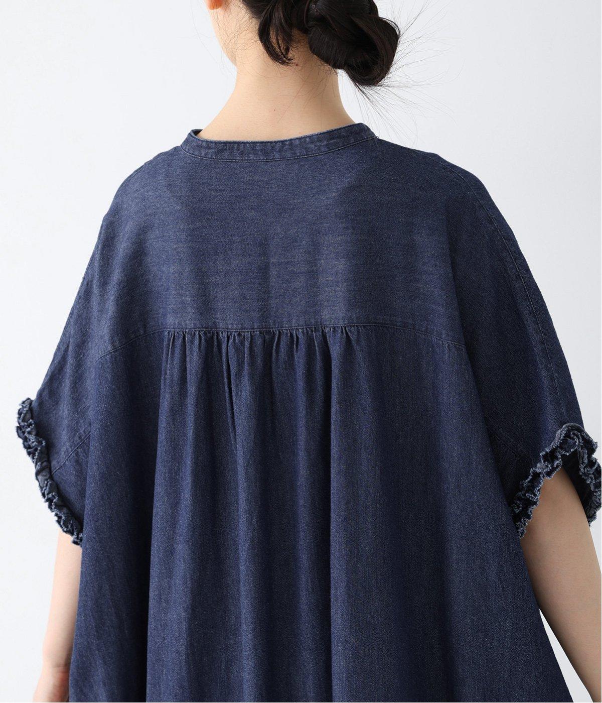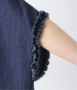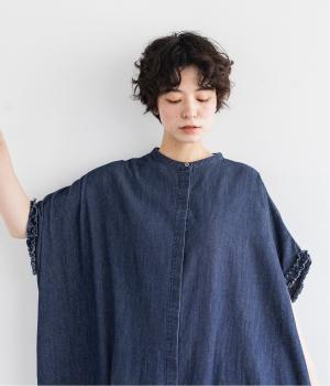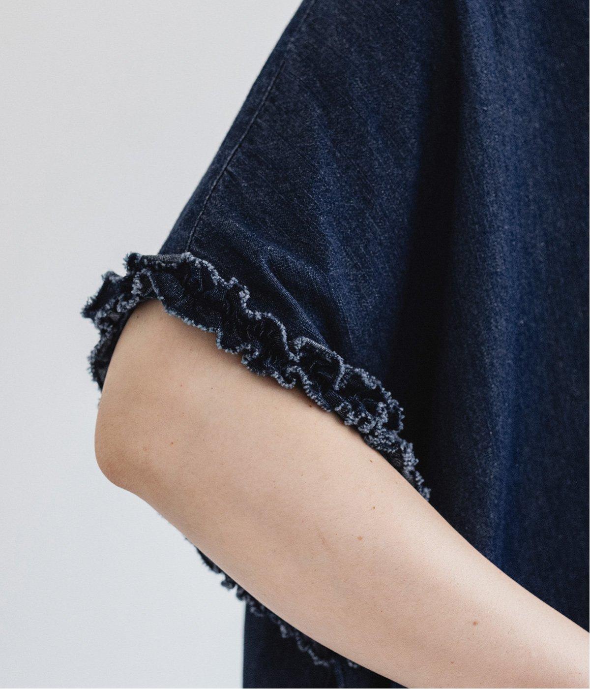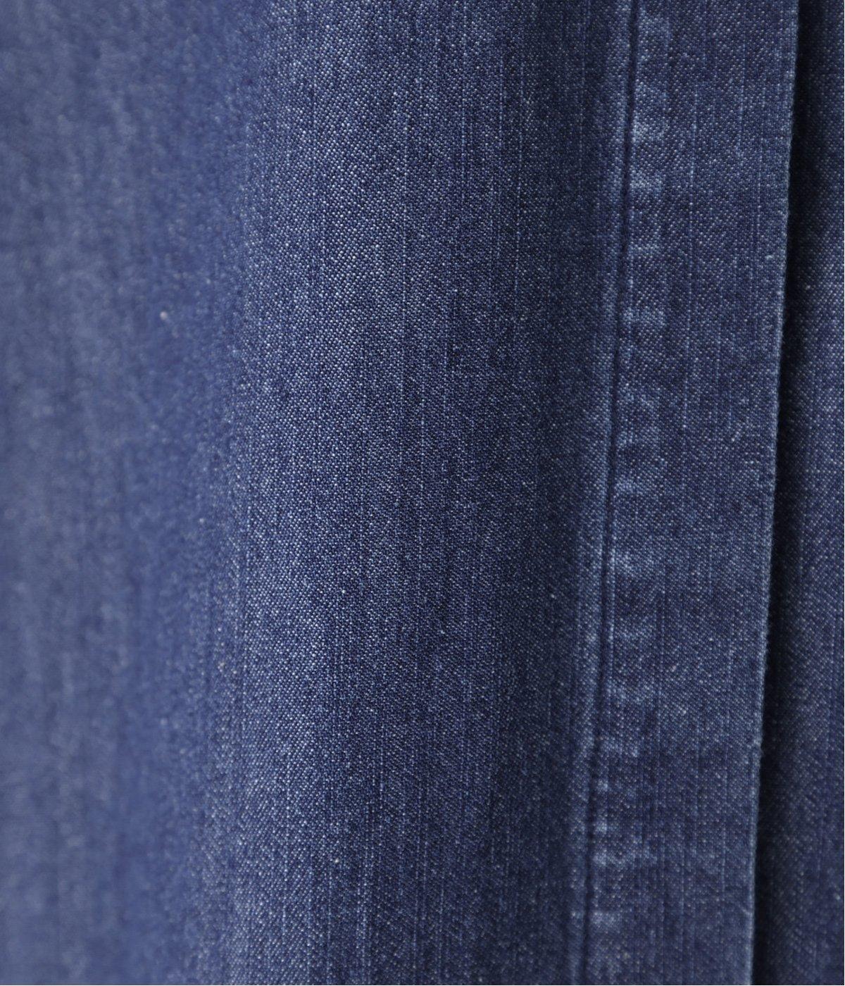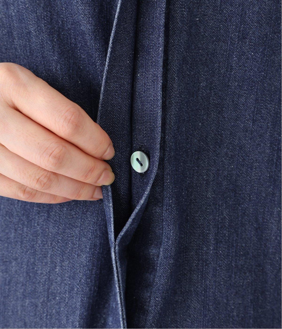 ふとした瞬間にのぞく貝風ボタンが、上品なきらめきを添えて。やわらかで軽めのデニムを使用しているため、動くたびに美しいドレープを描きます。