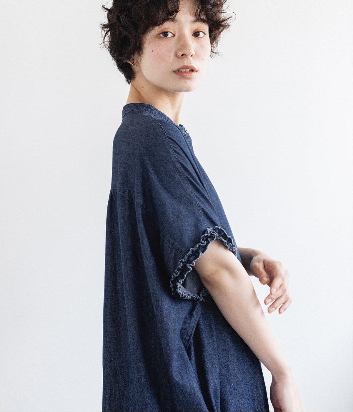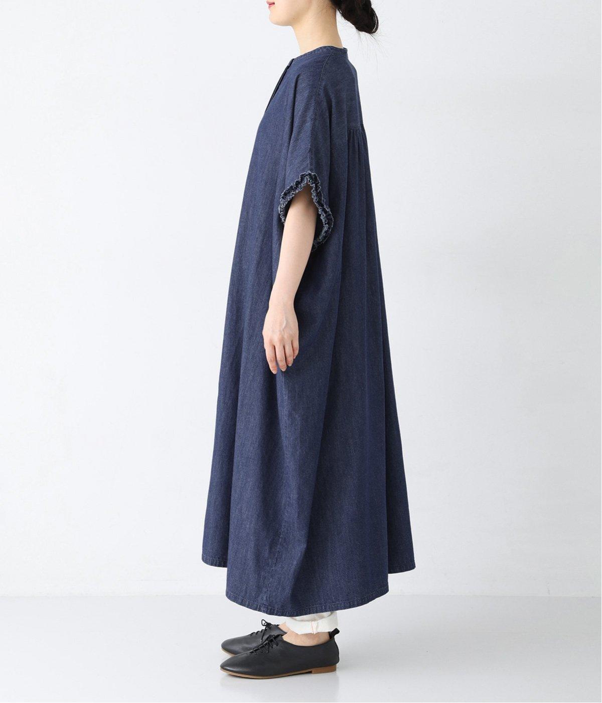 体のラインを拾いにくいリラクシーな着用感で、ミニマルなデザインが素敵なワンピース。袖口にあしわられた繊細なフリルが、品のある愛らしさを添えます。