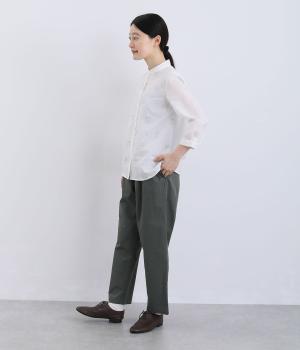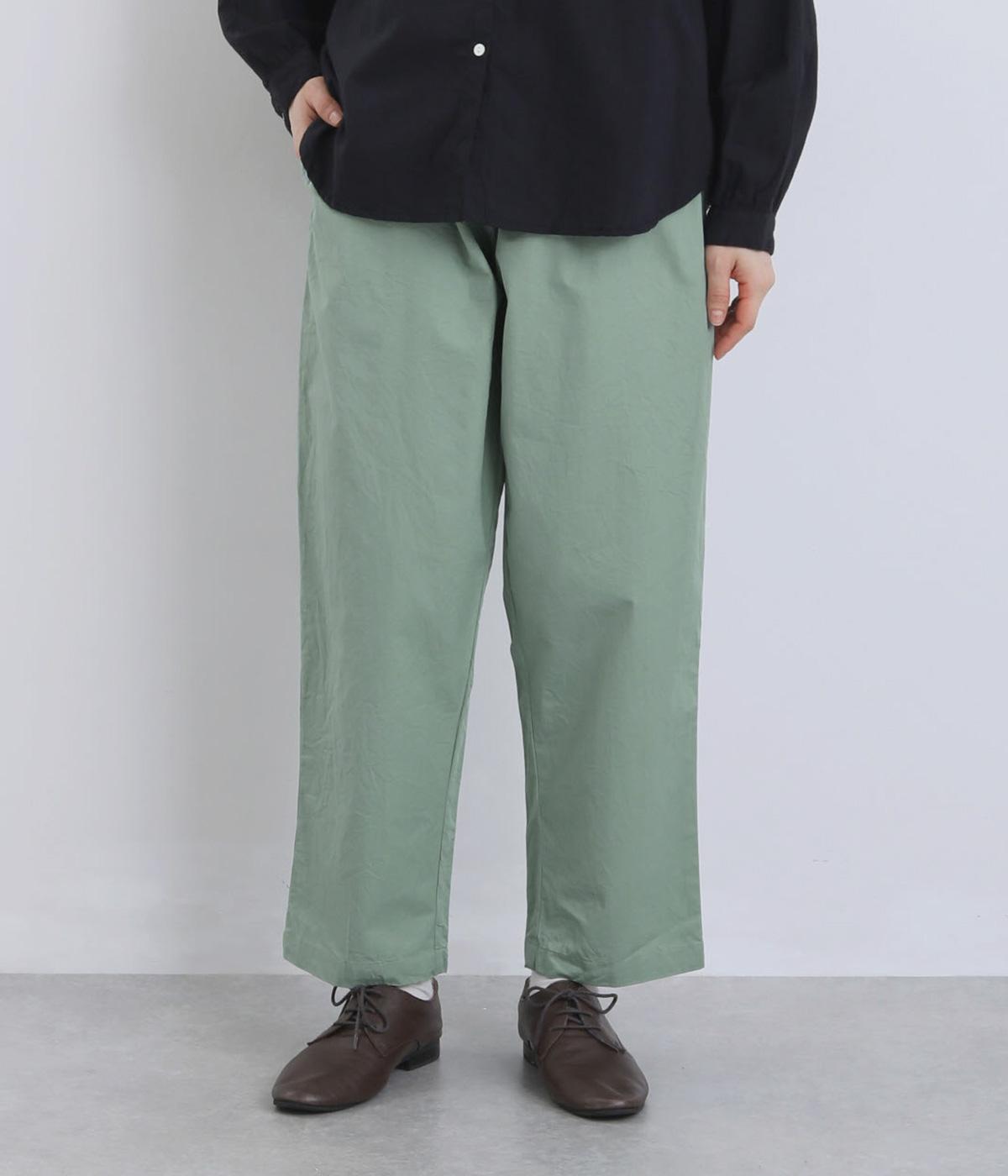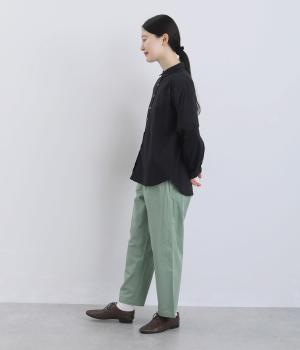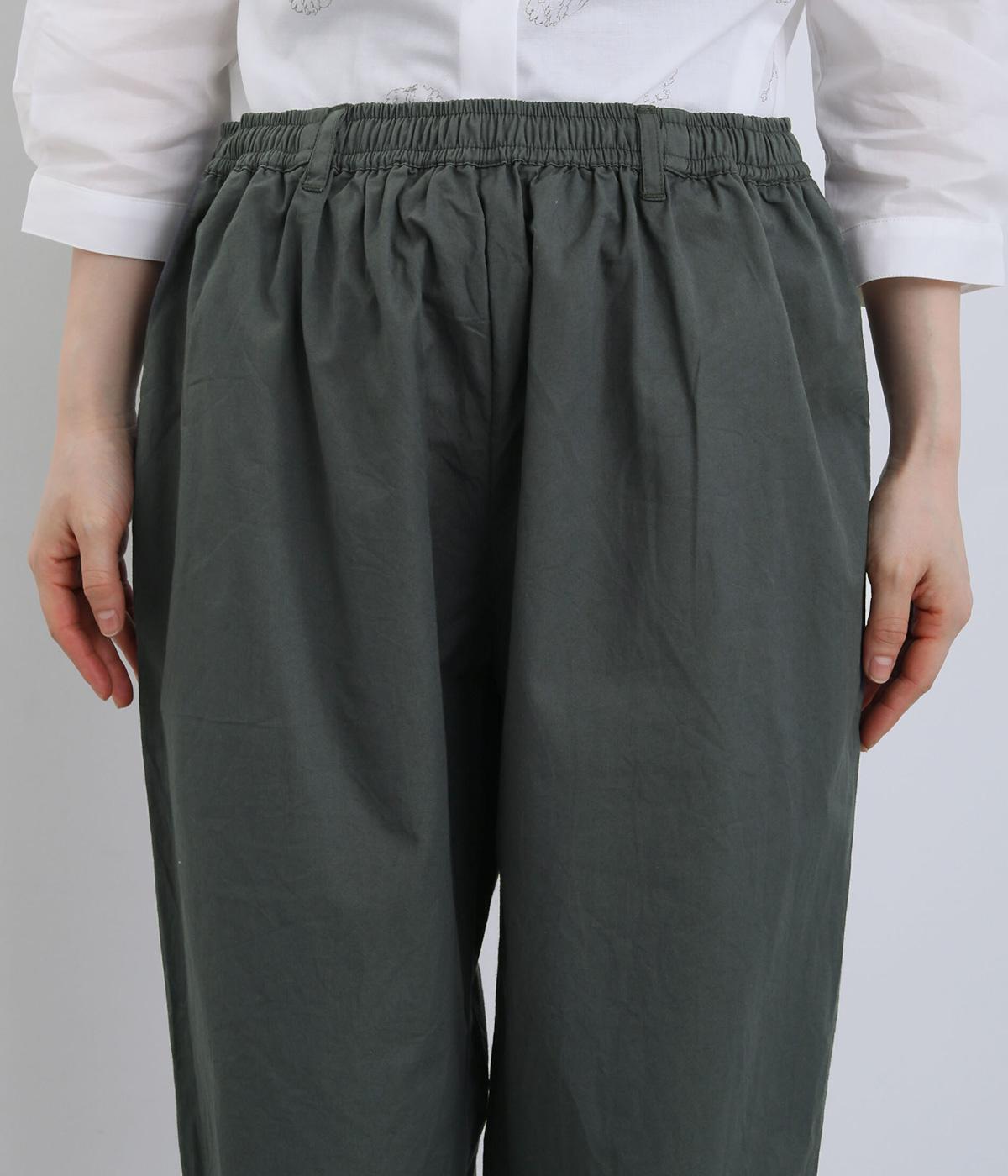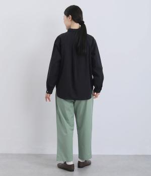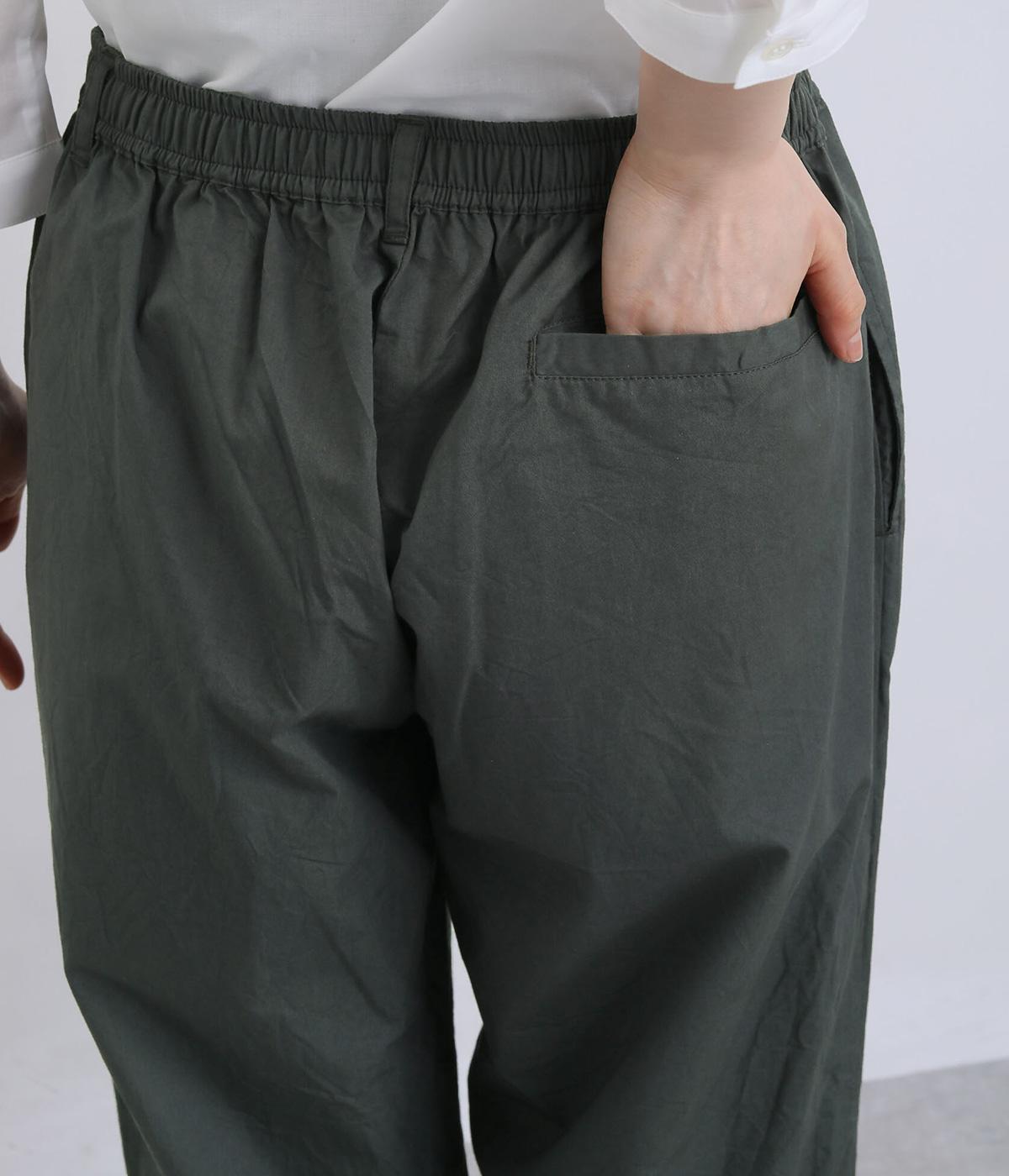 ほどよくゆとりを持たせながら、裾に向かってやや細くなるテーパードシルエットが特徴です。脚のラインをすっきり見せつつ、リラックス感のあるはき心地に。ウエストはゴム仕様で、紐でフィット感を調節できます。シンプルなデザインで、日々のコーディネートに取り入れやすい一本です。