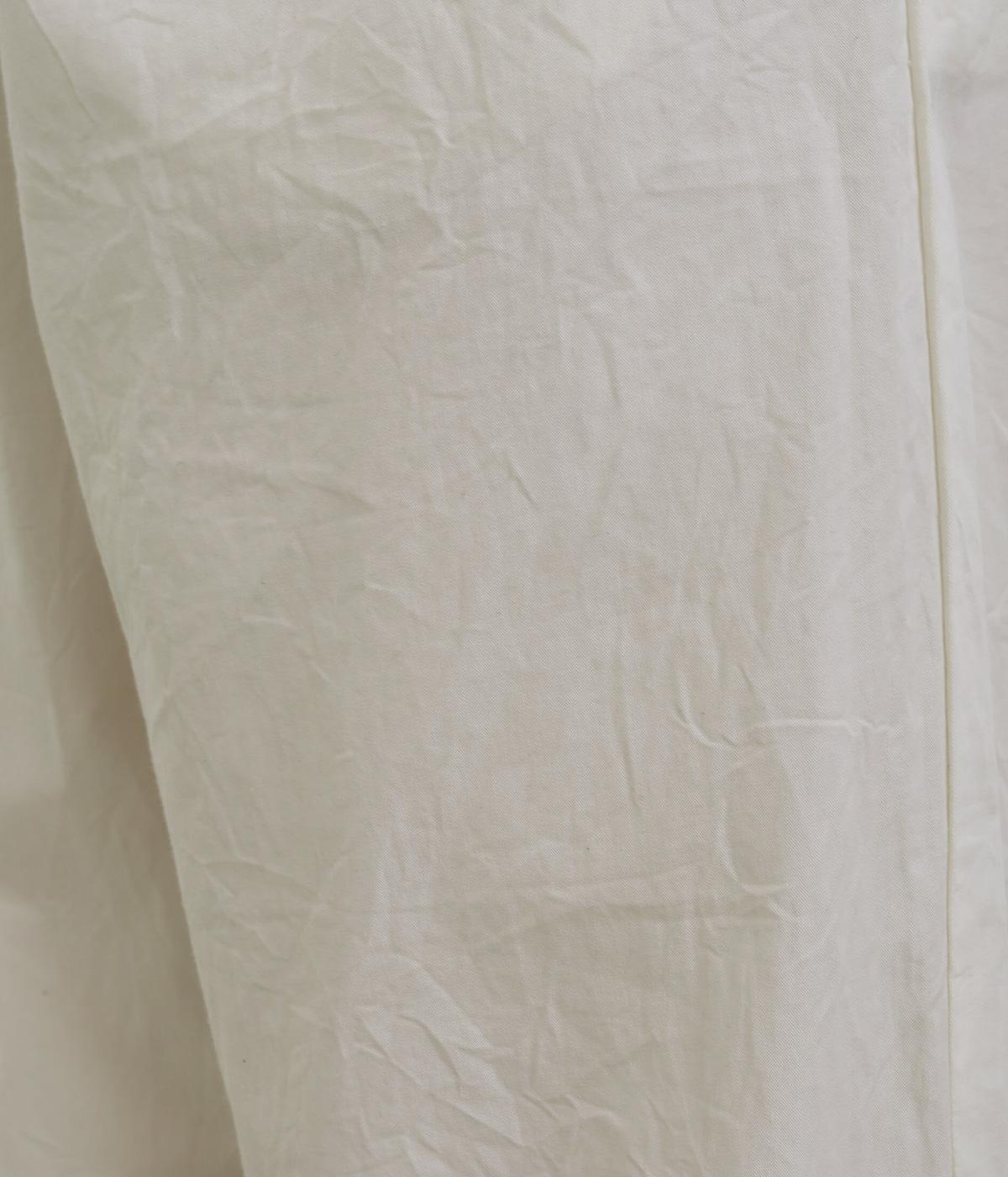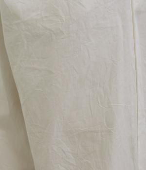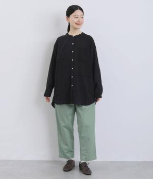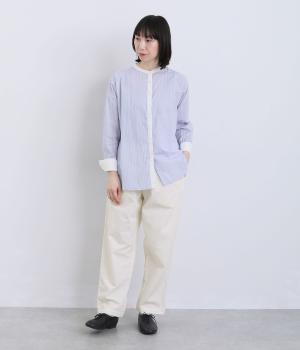 やわらかなぬくもりを感じるインドコットンを、丈夫なツイル生地に仕立てました。自然なシワと、なめらかな質感、さらりとした肌ざわりが心地よい素材です。ほどよいハリ感もあり、着用するごとにしなやかになじむ風合いをたのしめます。
