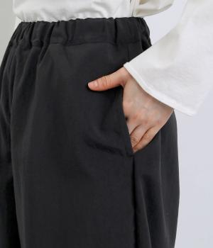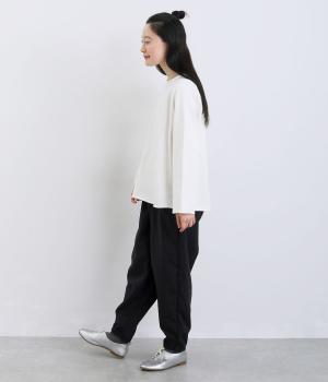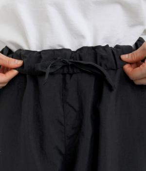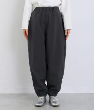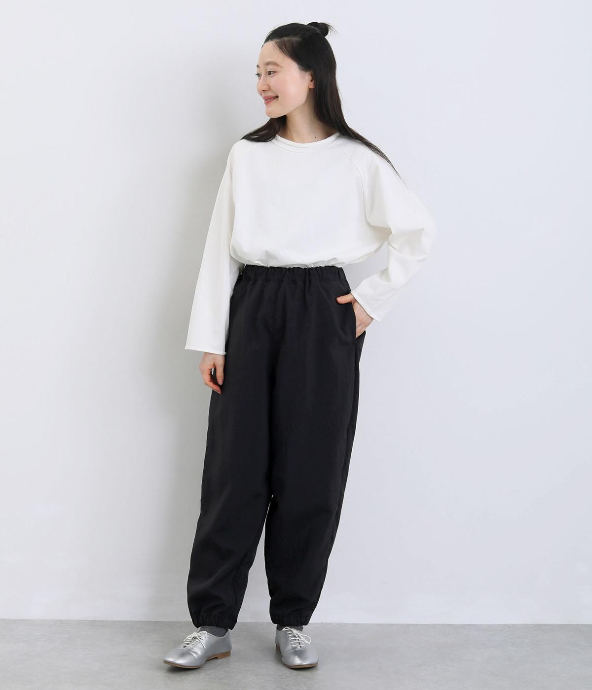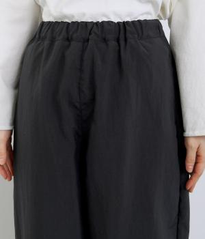 リサイクルナイロンを使用し、さらりとした肌ざわりに仕立てました。軽やかなはき心地ながら丈夫さもあり、頼れる生地感なのも◎。コットンのようなセミマットな質感が、カジュアルになりすぎず、落ち着いた印象を演出します。