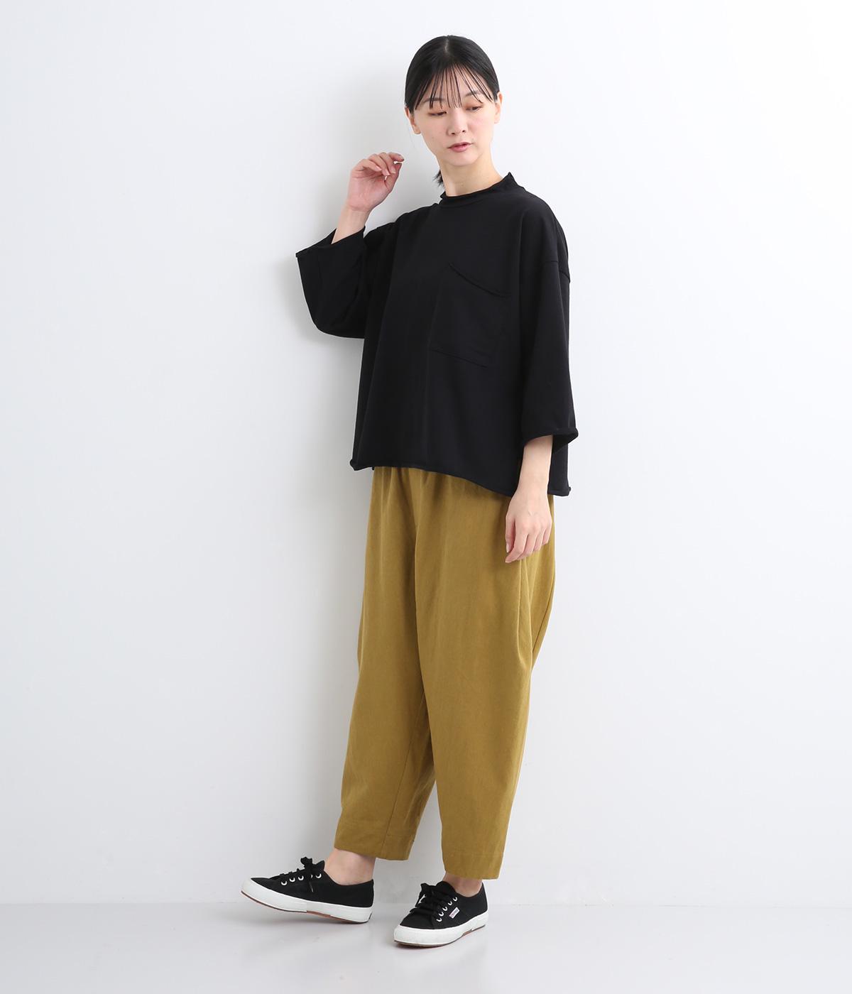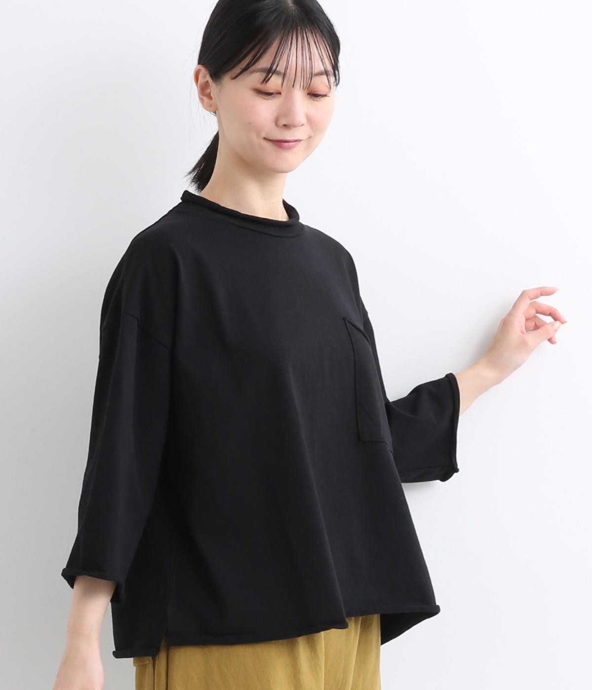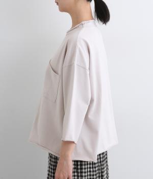 ゆとりのあるシルエットでさりげなく体型カバーを叶えるプルオーバー。襟、袖、裾はカットオフ始末になっており、くるんと巻いた生地がこなれ感を出してくれます。胸元の大きなポケットも小気味よいアクセント。日常使いに便利な1枚です。