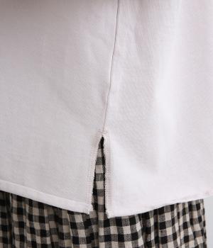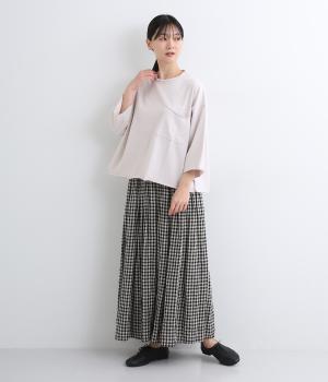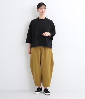 適度にハリと肉感のある、コットン100%のPABLOジャージー素材を使用。肌にはりつきにくく、ストンと落ちる質感が特徴で、カジュアルながらきちんと感も演出します。