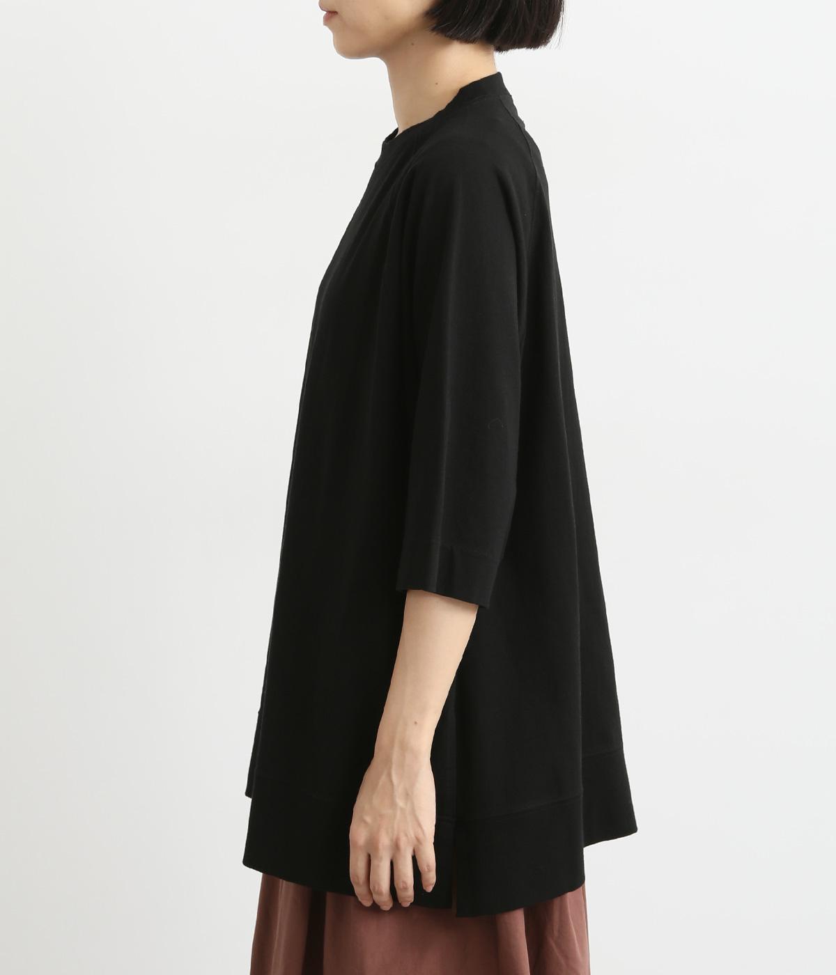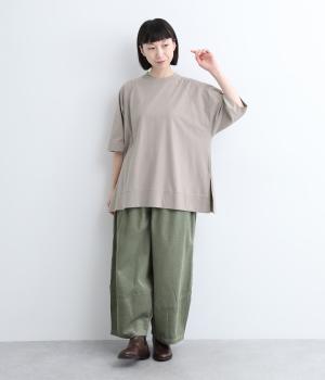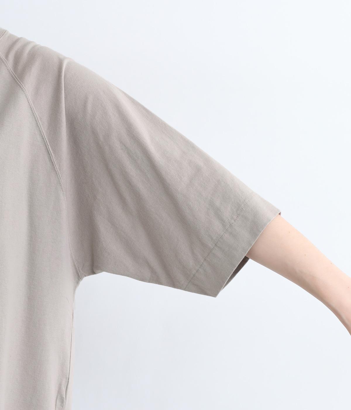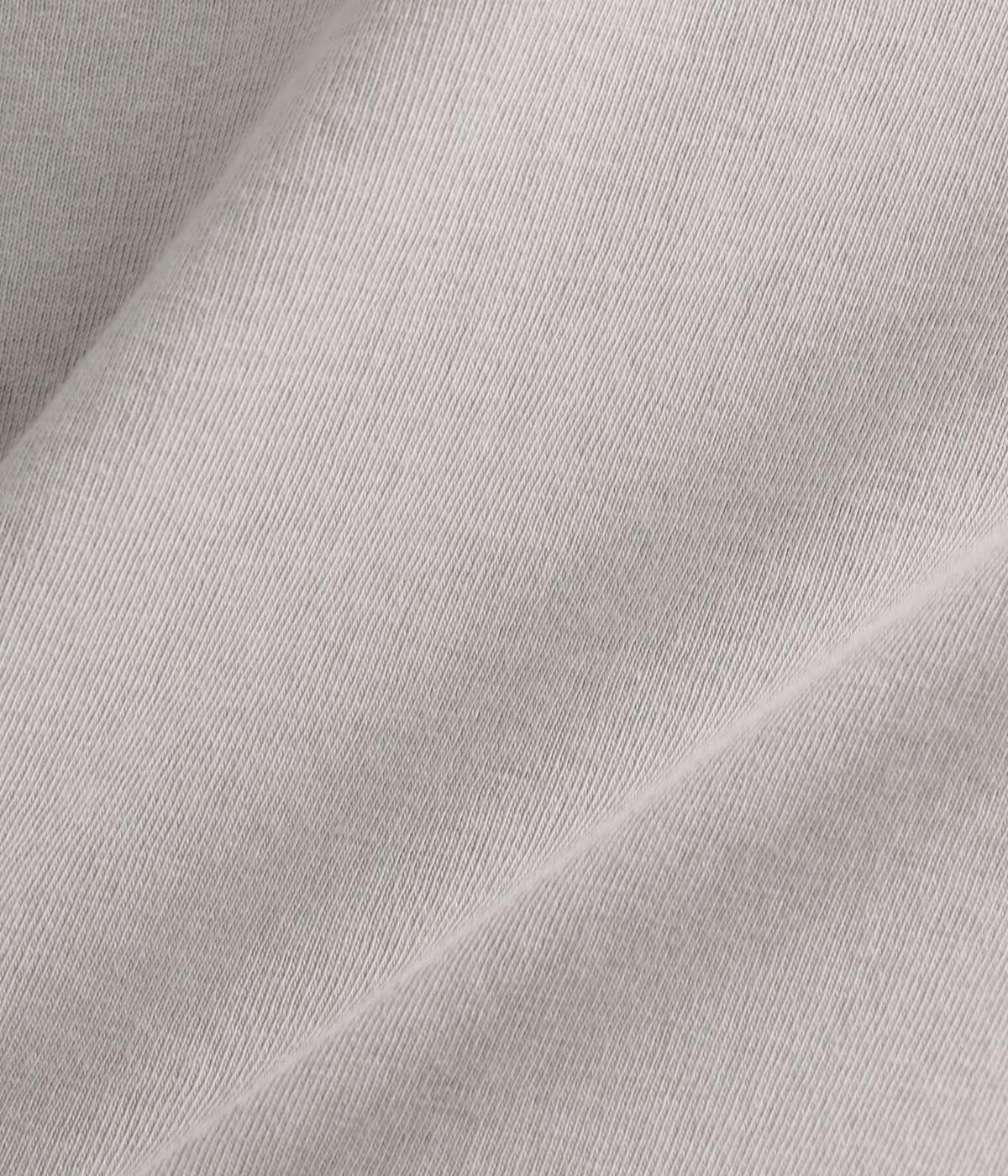 通常の天竺よりも密度を詰めて編み立てたコットン度詰天竺生地を使用しました。天竺の柔らかいなめらかな肌触りに、コシのあるタフな風合いが加わりました。