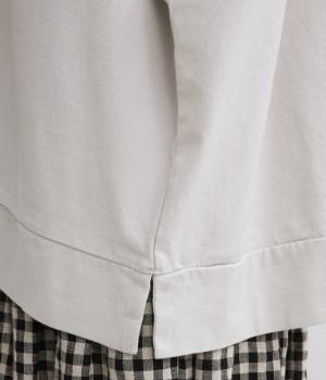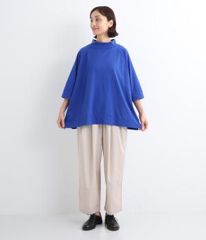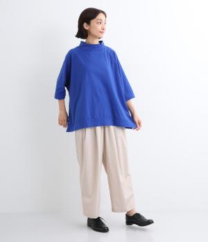 ナチュラルな素材感とゆったりシルエットがこなれ感たっぷりなプルオーバーです。シンプルながら、ラグランスリーブや少し立ち上がるネックラインでデザイン性をプラス。裾には前後差をつけ、スリットを入れてアウトで着てもサマになるよう仕上げました。