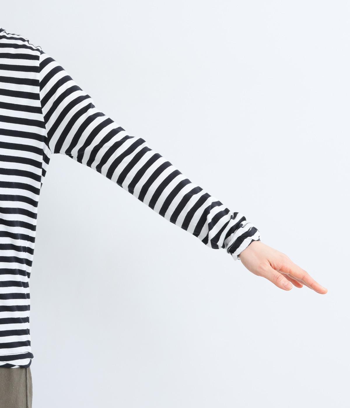 やわらかくソフトな質感が着心地の良さを生むコットン天竺で仕立てました。ほどよく薄手なので着用感も軽く、インナー使いにも適しています。