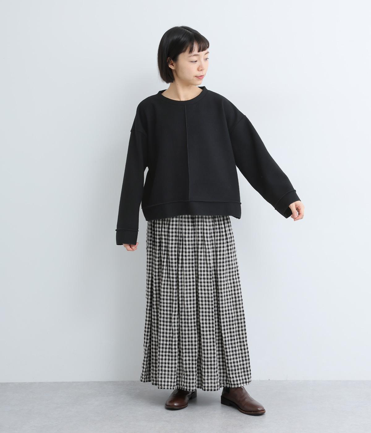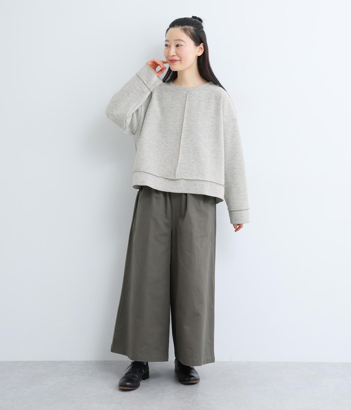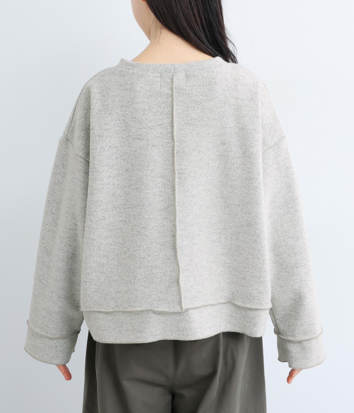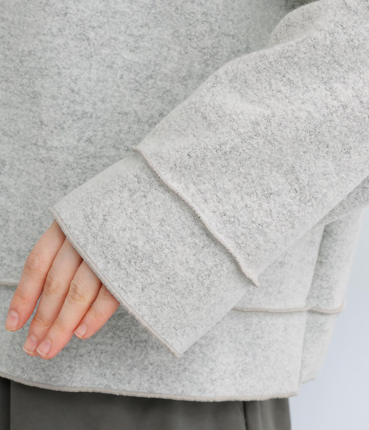 ロックミシンでかがったメロー始末でさり気なくデザインを加えながらも、素材の持つ風合いを活かしてシンプルに仕立てた一枚。ゆったり身幅を取りながらもショート丈と軽やかな生地感で着こなしやすくまとまり、モードな装いにもマッチ。