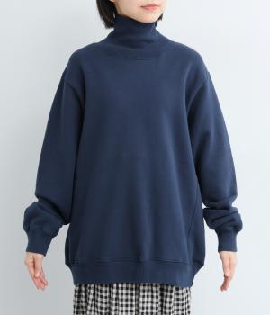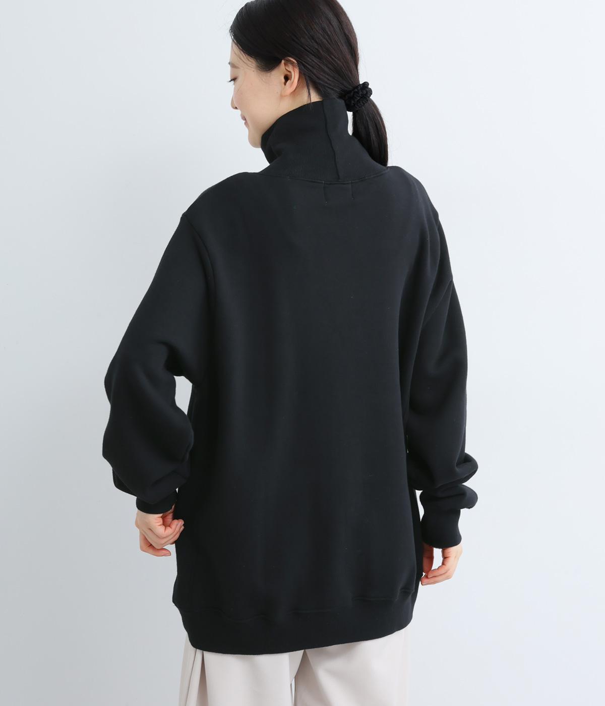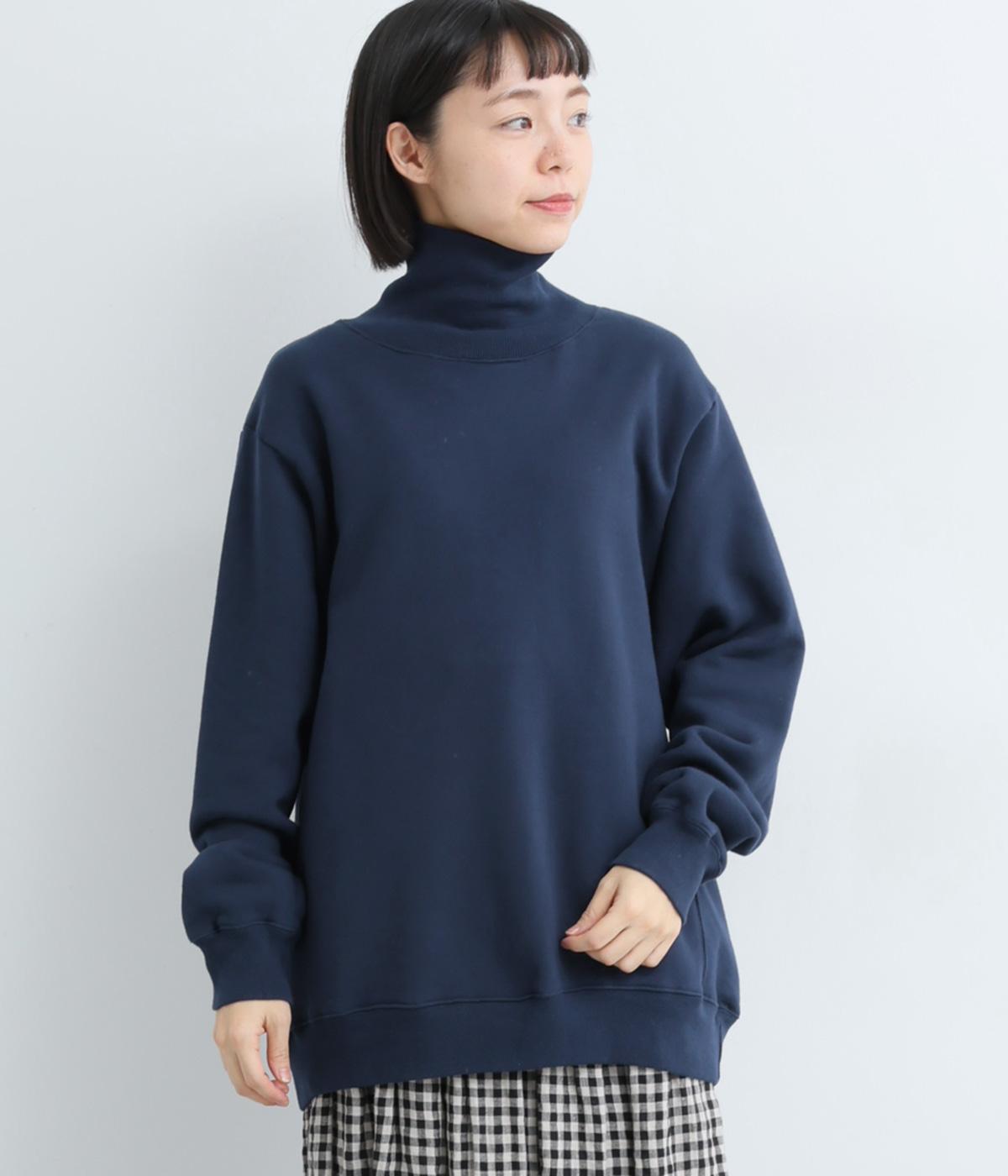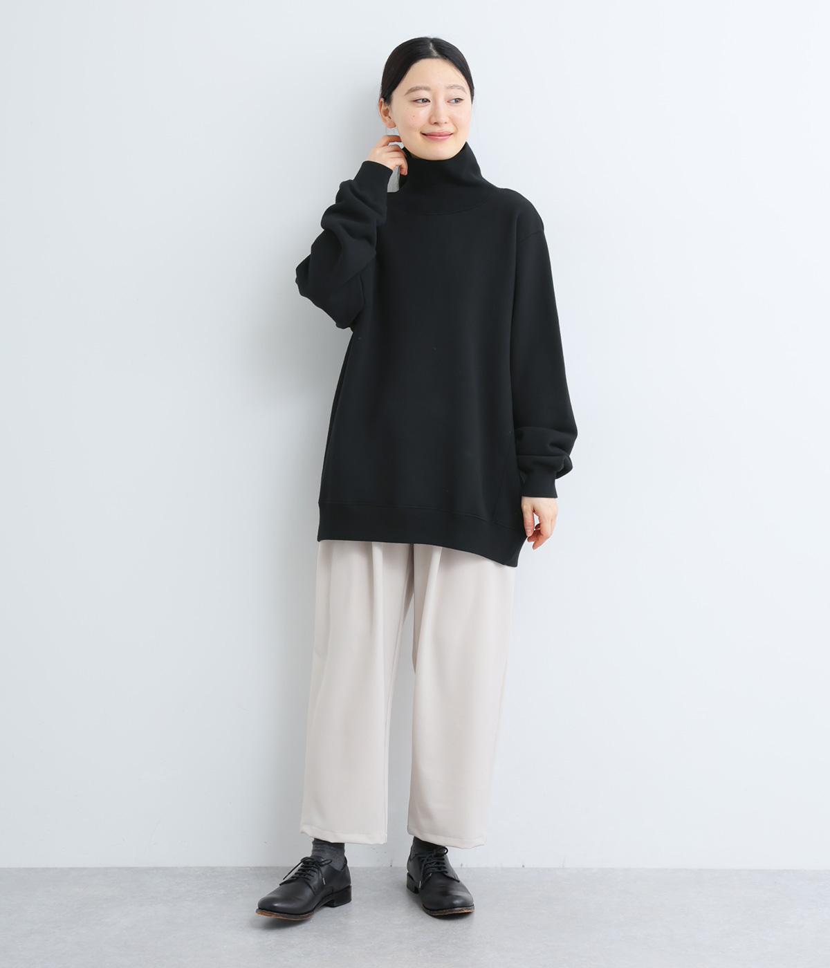 適度にボリュームを持たせながらも、タテラインを意識した脇切り替えのサイドパネルですっきりまとめました。タートルネックが首元までしっかりあたため、リブ仕様なので被りやすくなっています。ヒップにかかるロング丈もポイント。