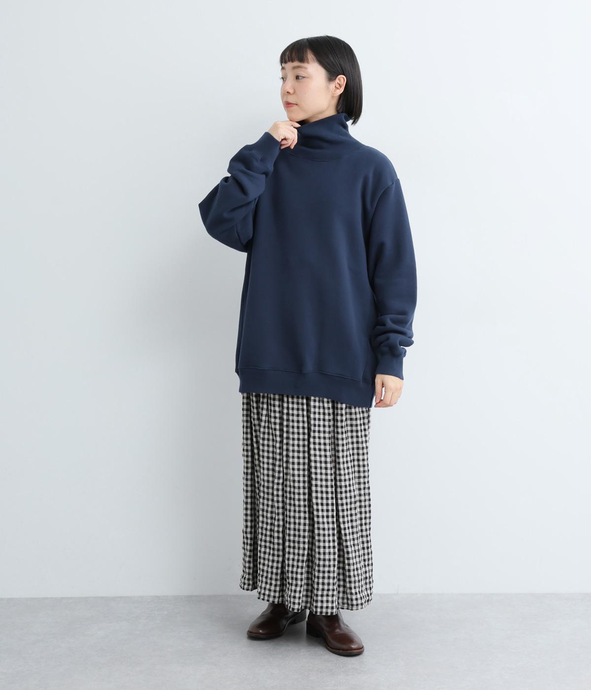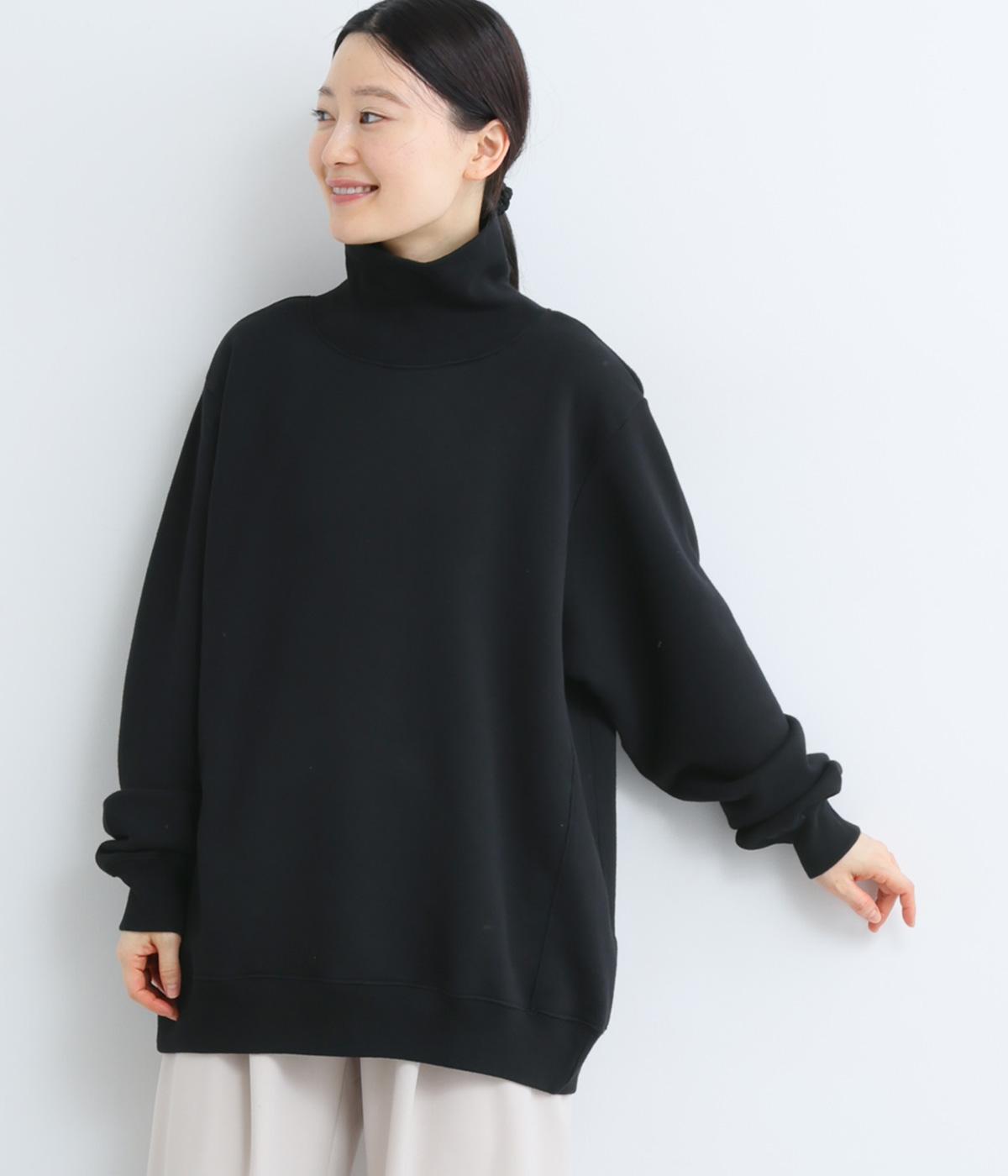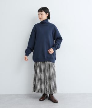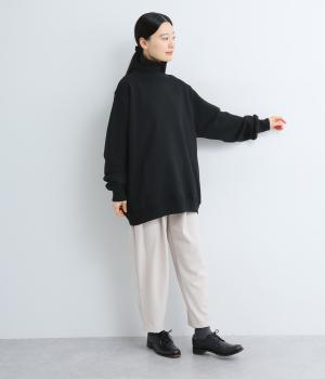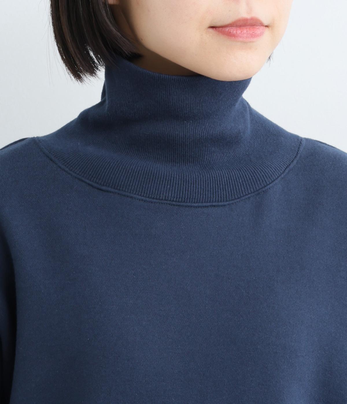 適度にボリュームを持たせながらも、タテラインを意識した脇切り替えのサイドパネルですっきりまとめました。タートルネックが首元までしっかりあたため、リブ仕様なので被りやすくなっています。ヒップにかかるロング丈もポイント。