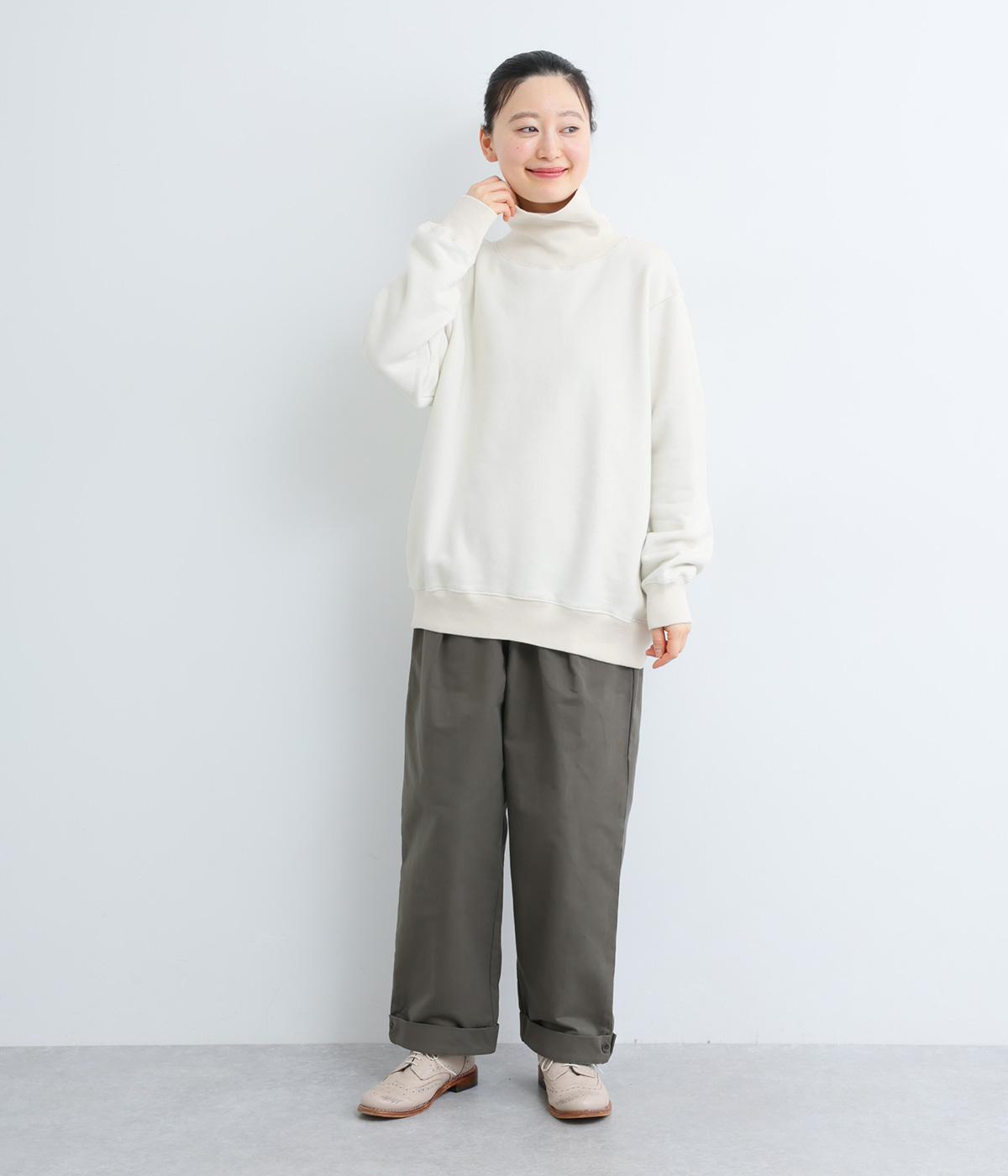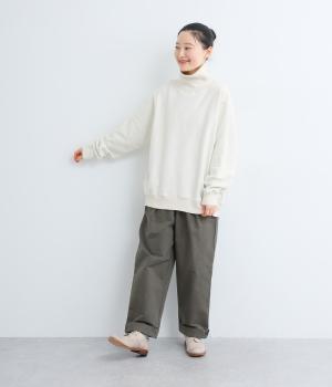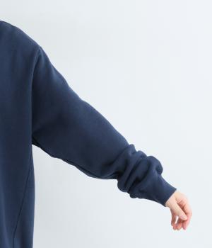 ふっくらとしたボリューム感とやわらかな肌触りが特徴のコットン裏毛を使用。厚みをおさえながらも保温性に優れているのであたたかく、吸水性もいいので快適に着用できます。