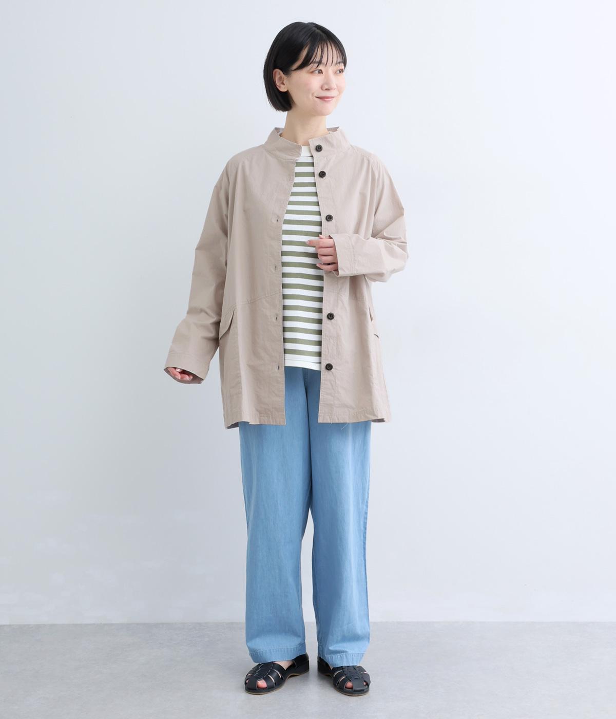 アメリカンドライ天竺 ヘムラウンドボーダープルオーバー(ホワイト×スモークグリーン)
