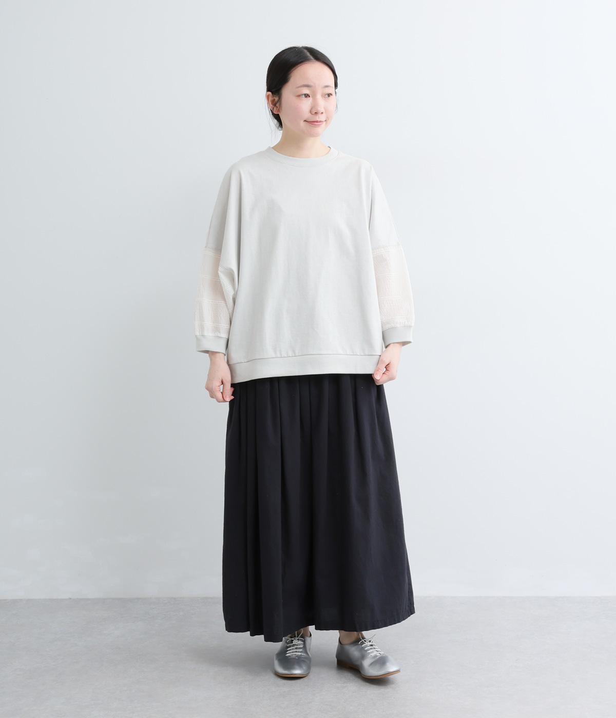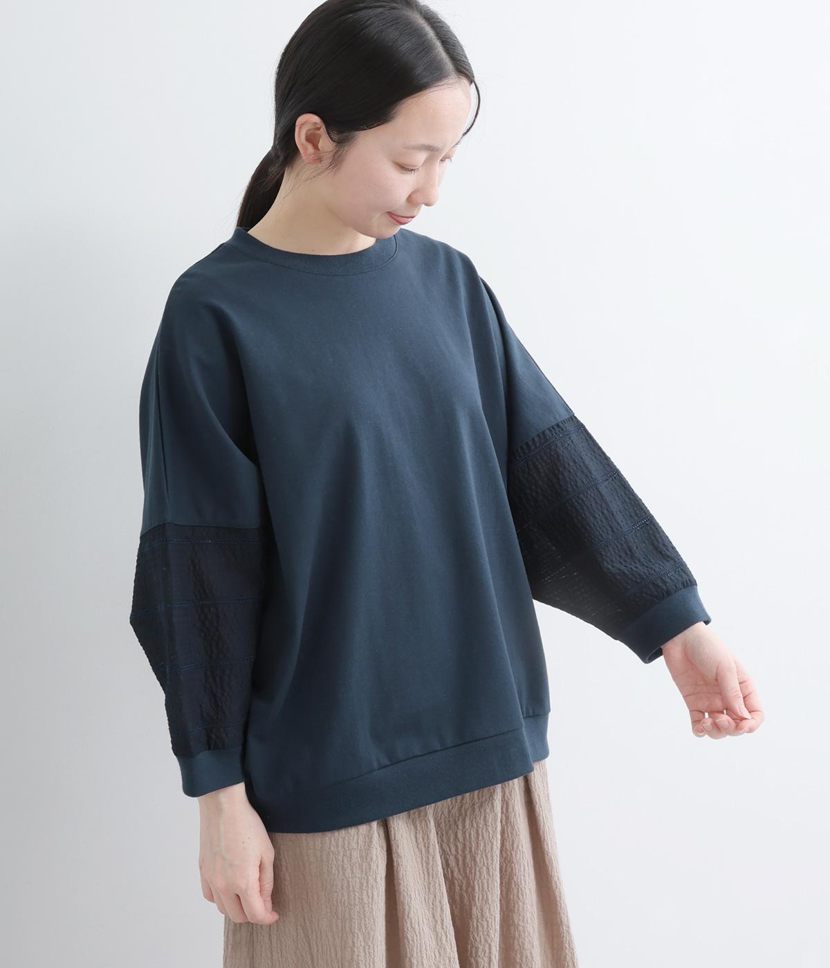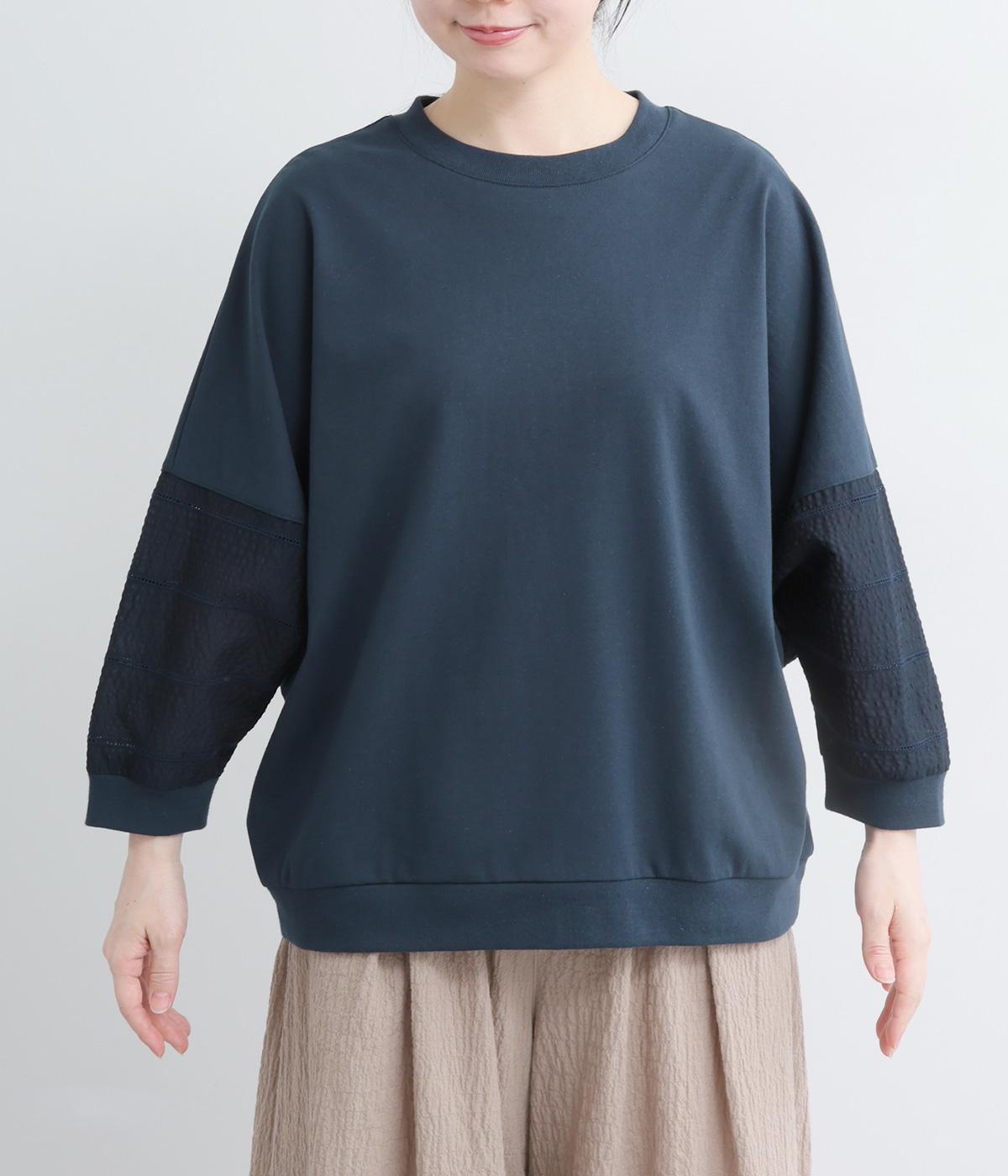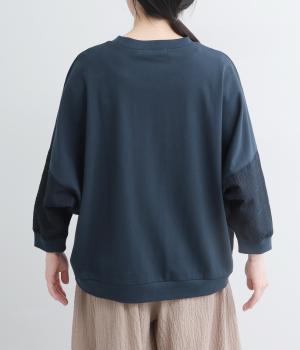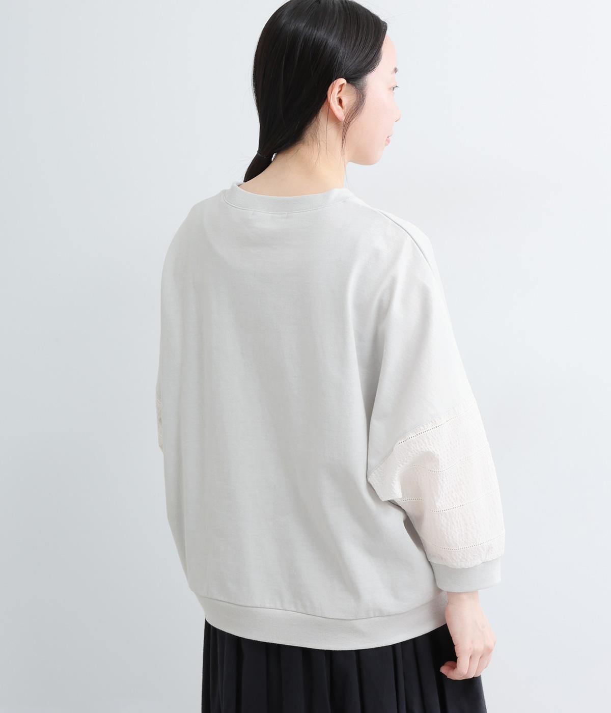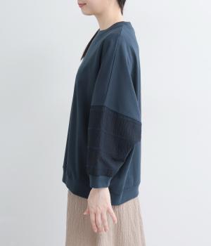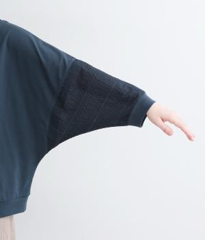 天竺シルケット袖口刺繍入りドルマンプルオーバー