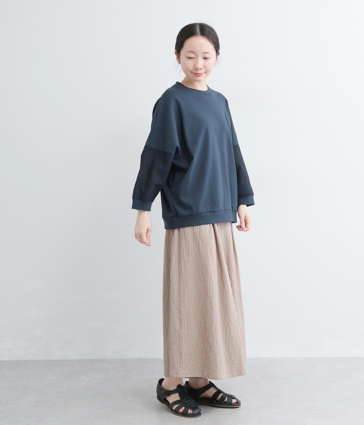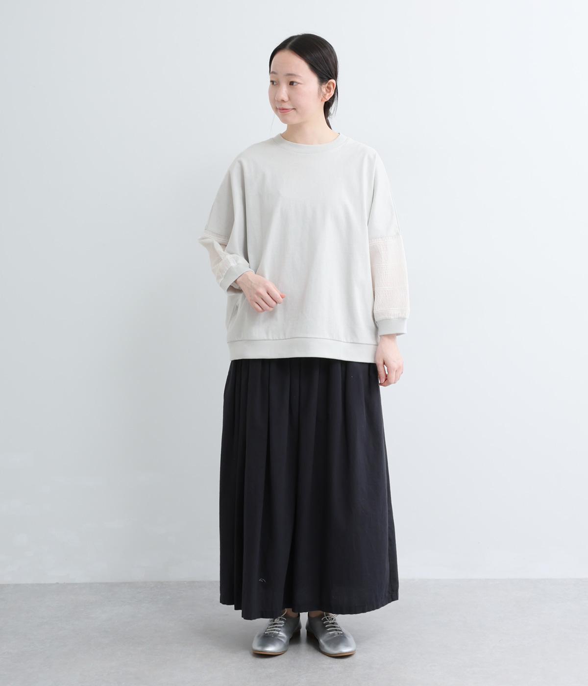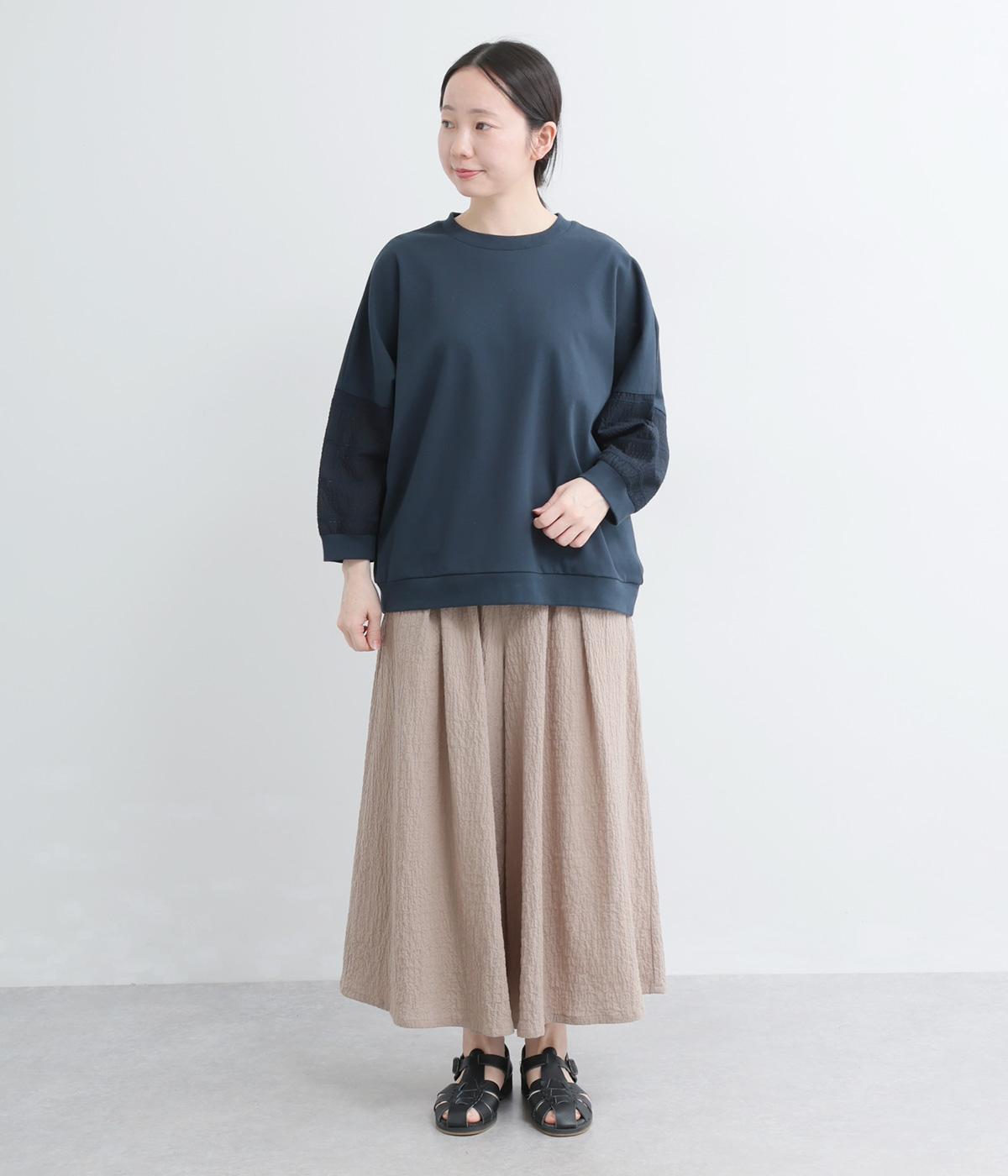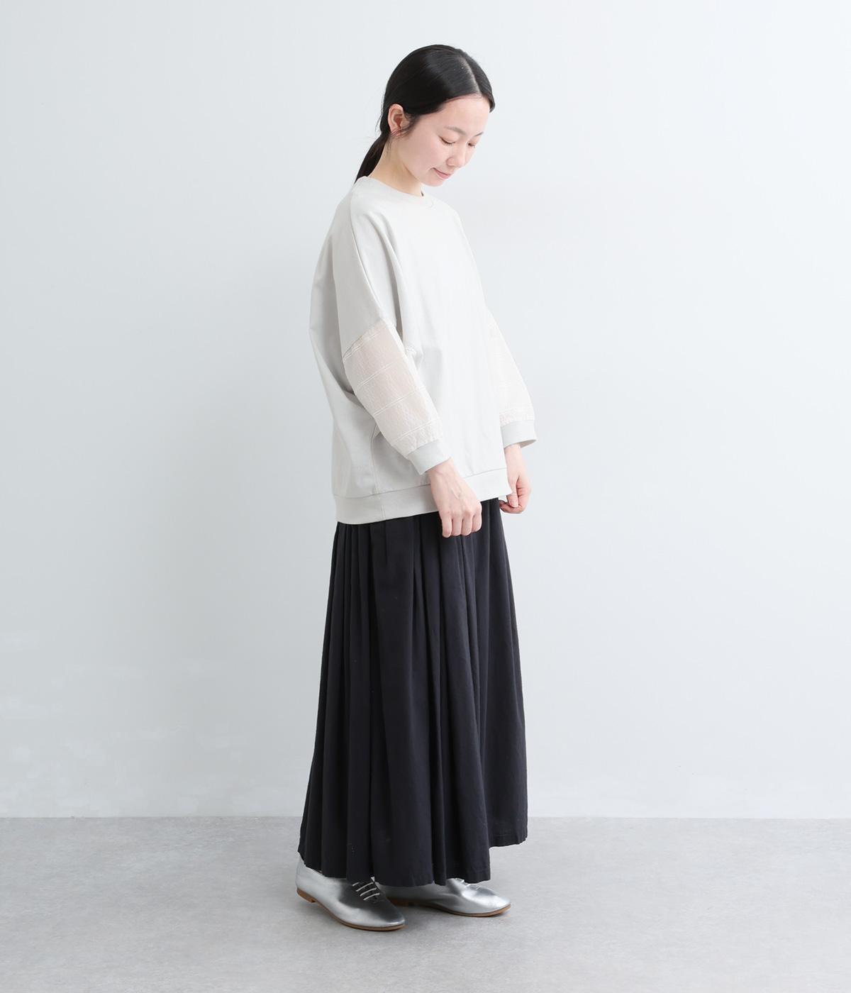 天竺シルケット袖口刺繍入りドルマンプルオーバー