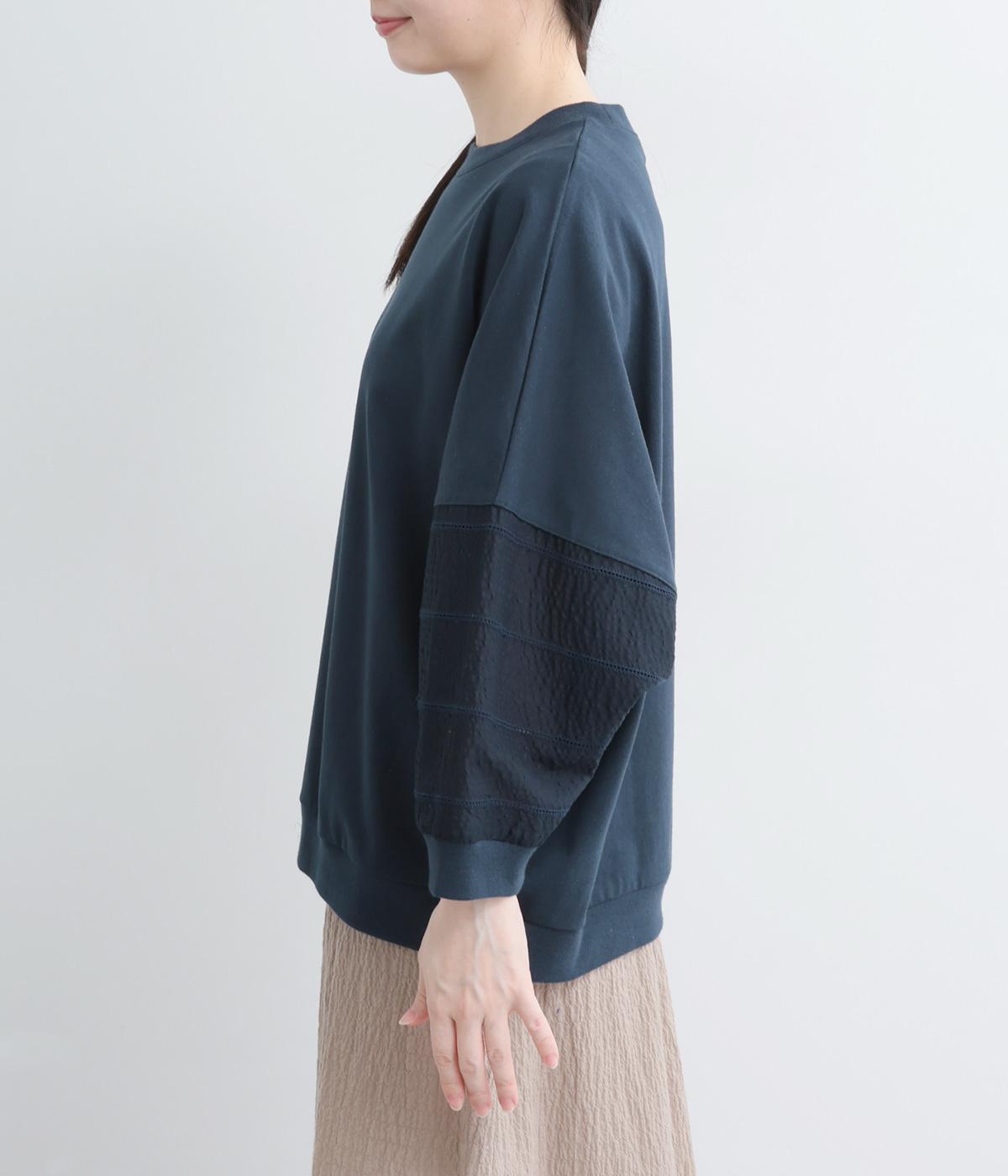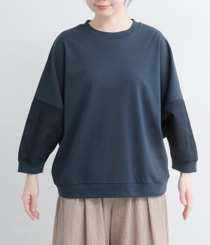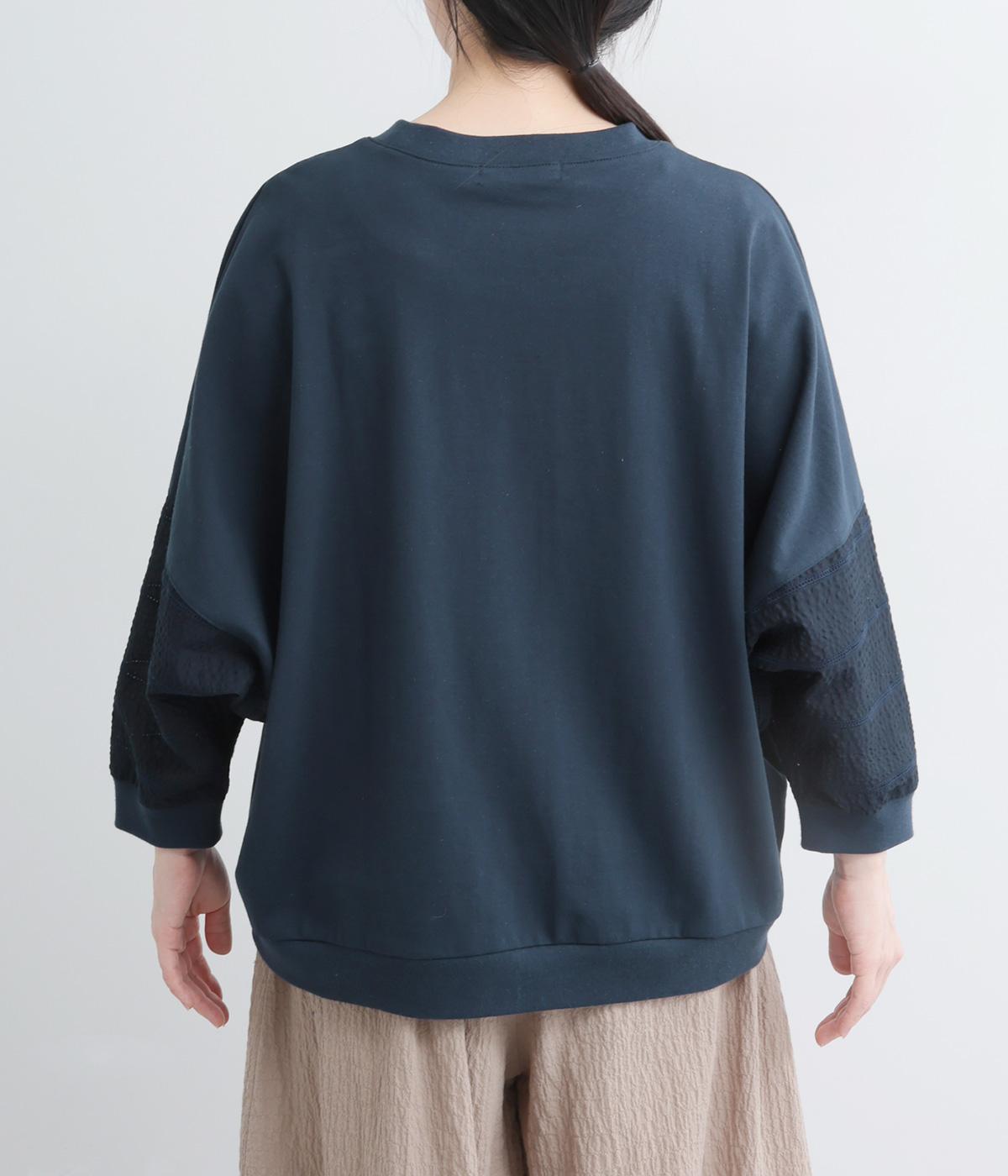 ドライタッチ天竺 異素材切替えドルマンプルオーバー8分袖