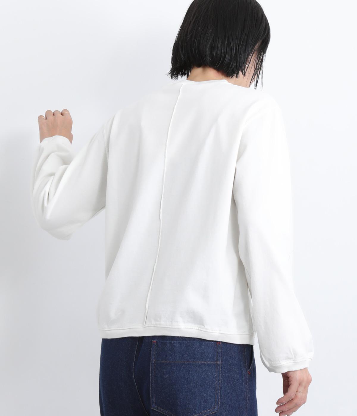 ソフトタッチで伸びのいいコットン天竺で着心地よく仕上げました。長時間の着用でもストレスを感じにくく、薄めの中厚手でロングシーズン着まわせます。